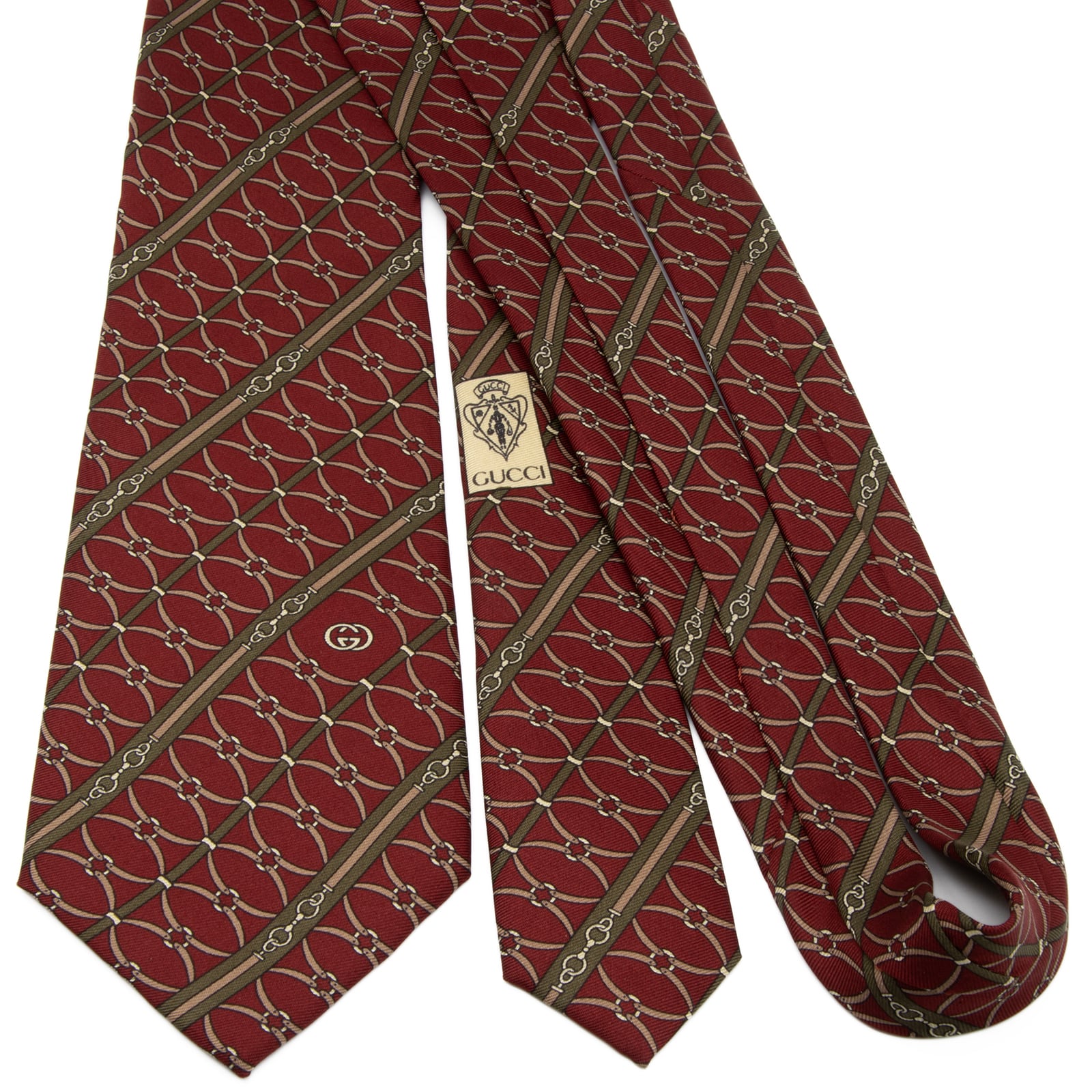 こちらは、落ち着いた色彩の調和が美しい、オールドグッチのネクタイでございます。