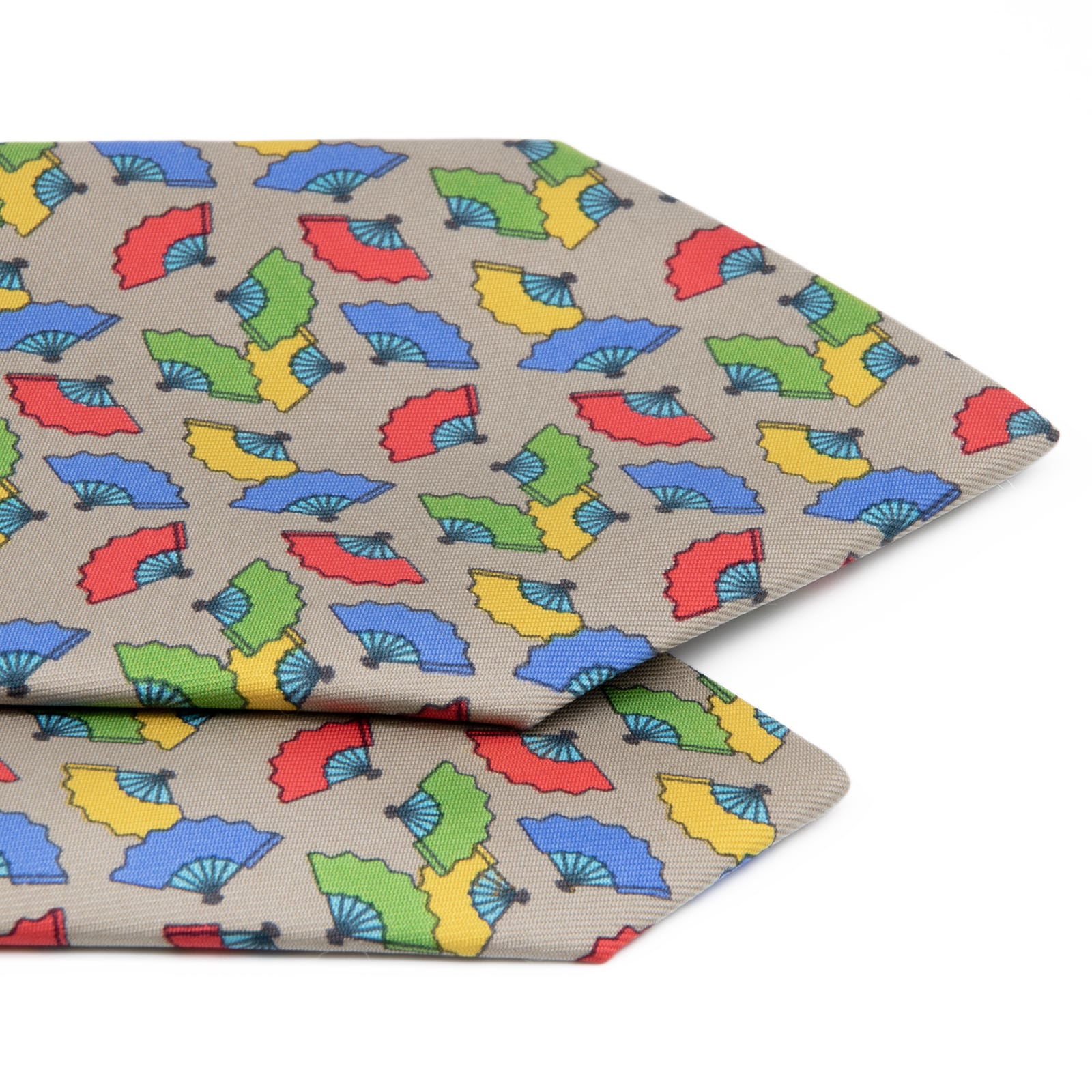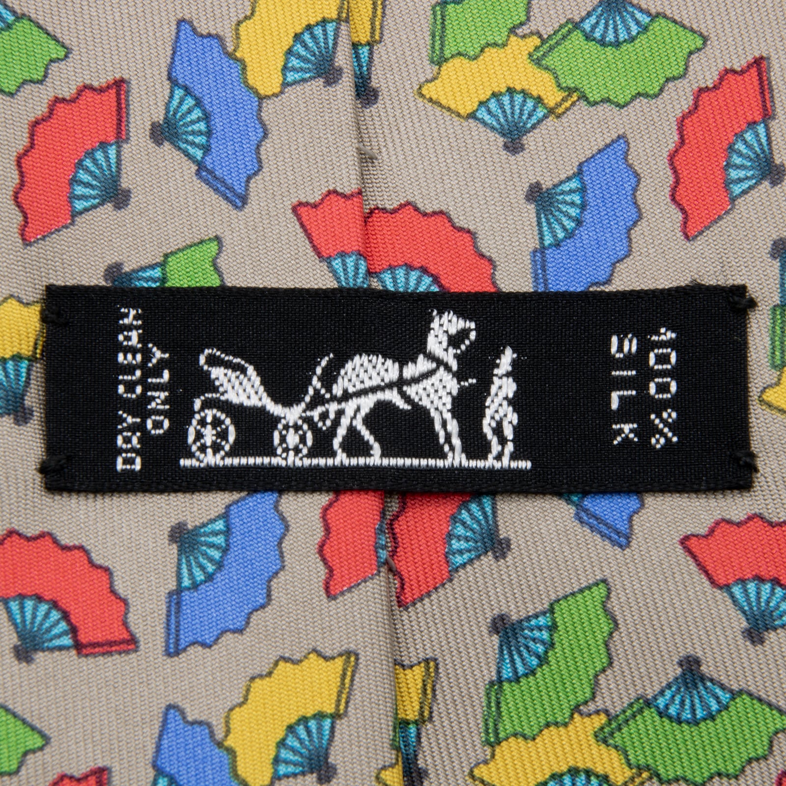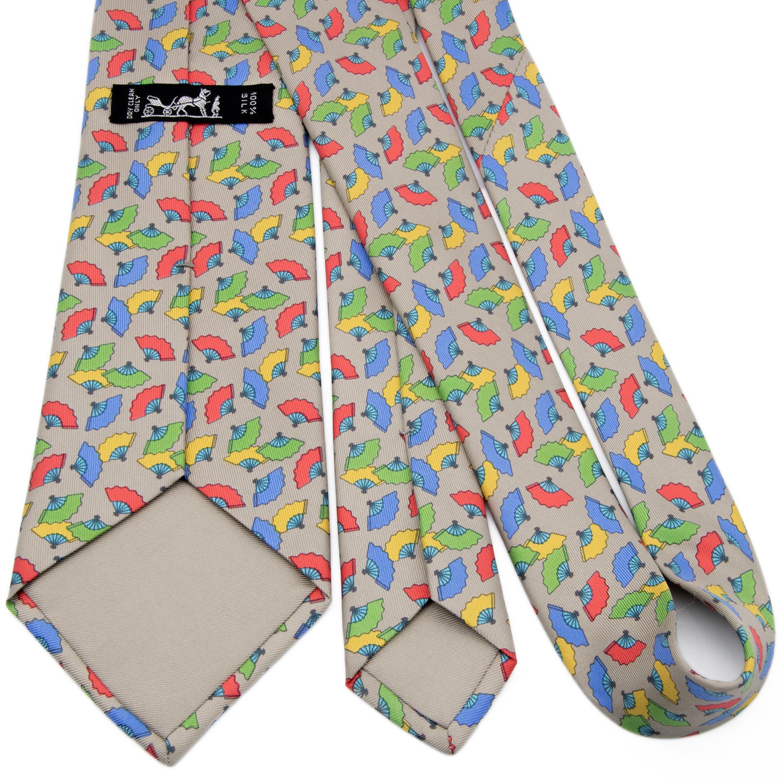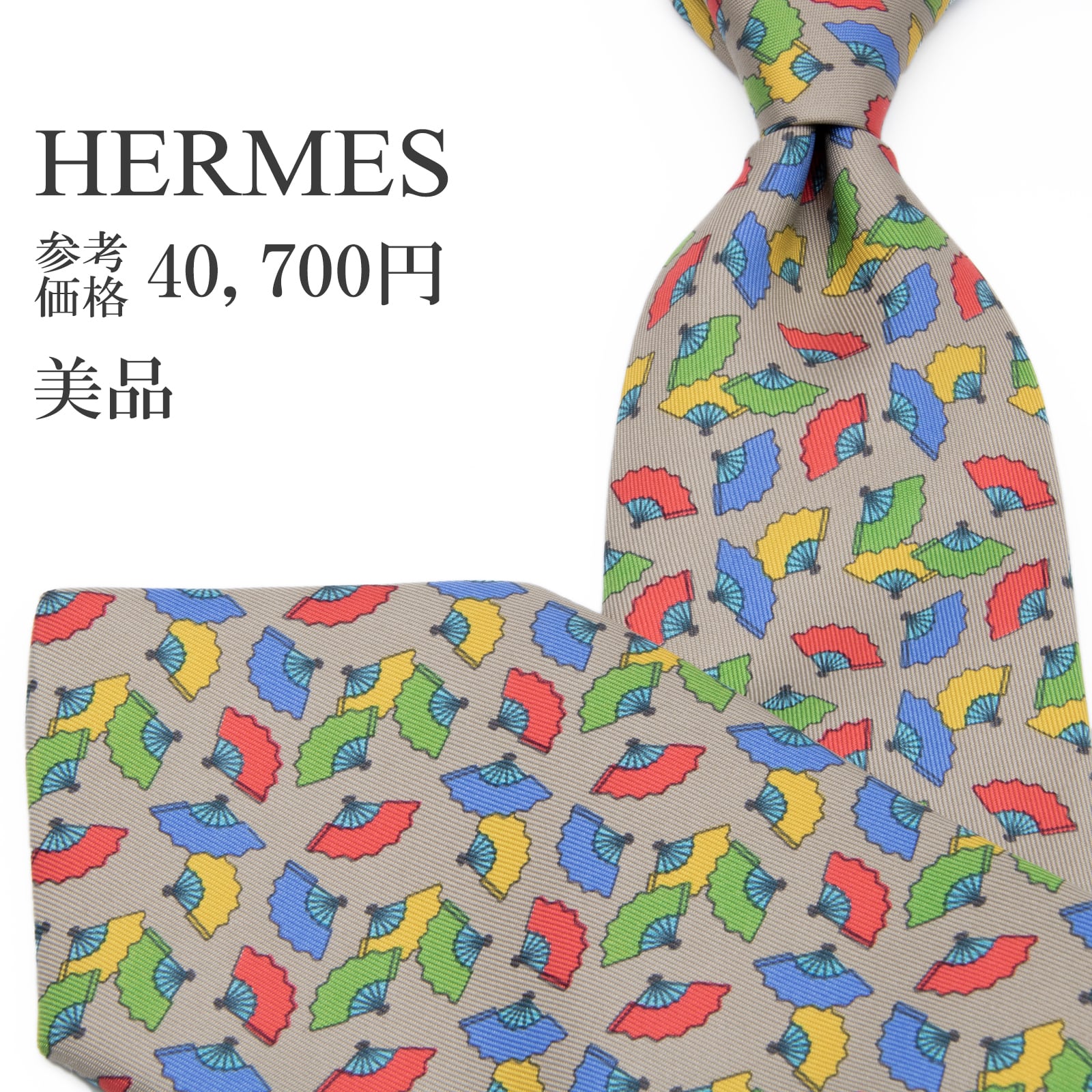 こちらは、和の心を感じさせる扇子が色鮮やかに舞う、エルメスのネクタイでございます。