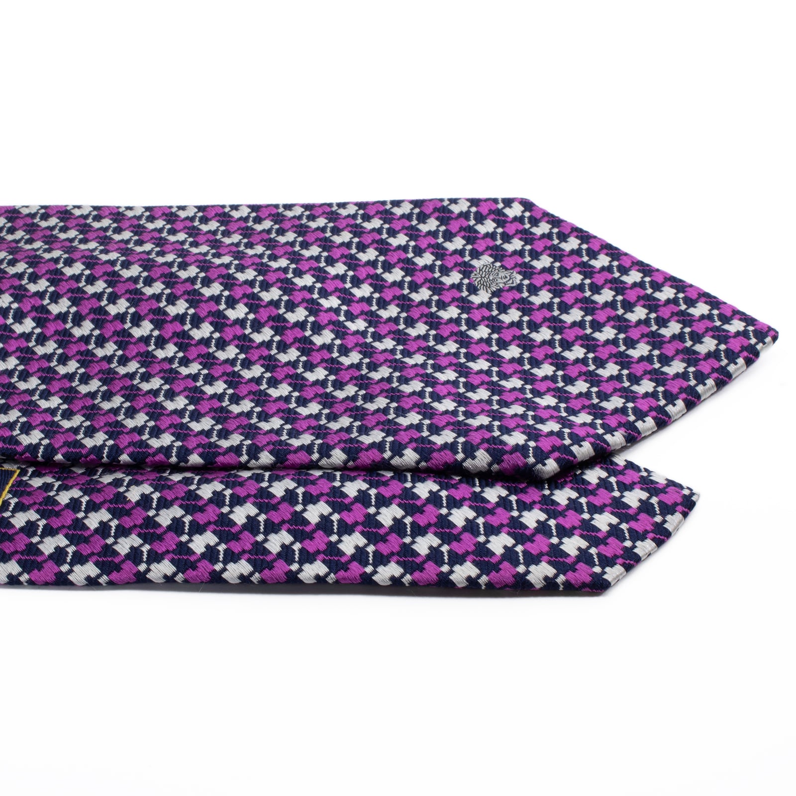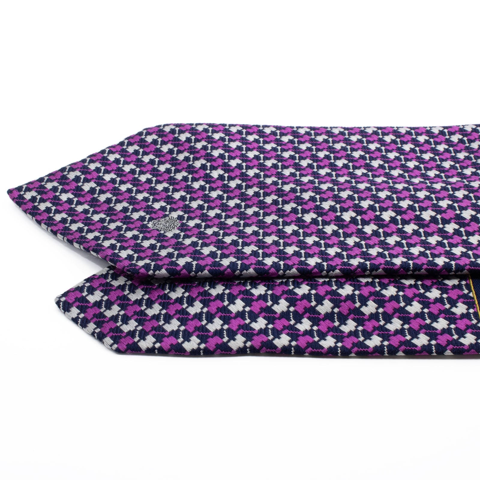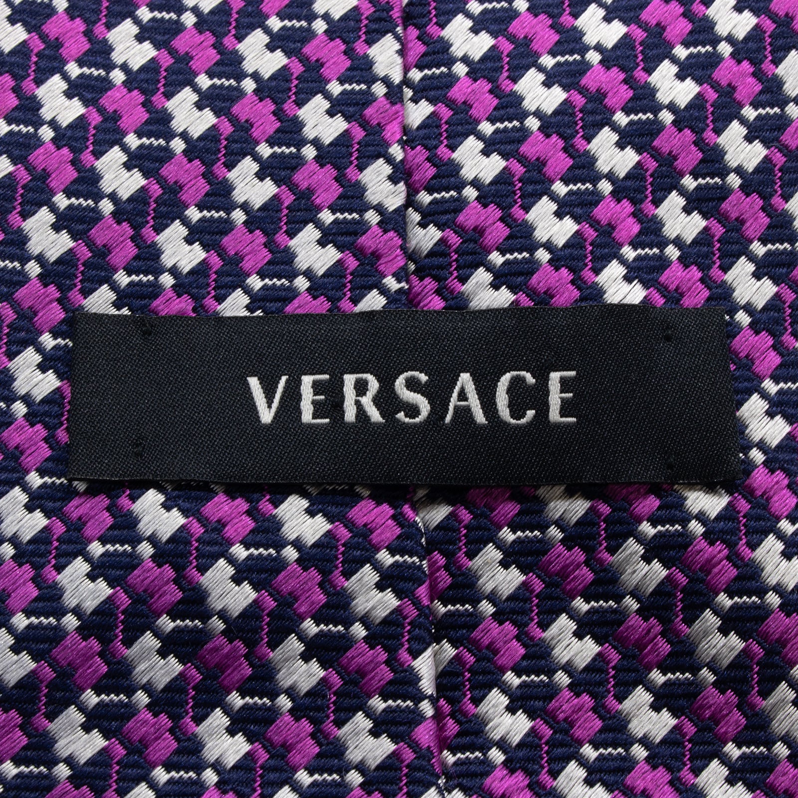 新品同様 送料無料 ヴェルサーチェ ネクタイ ジャガードタイ 紫 シルバー ネイビーブルー 千鳥格子 ハウンドトゥース メドゥーサロゴ S580