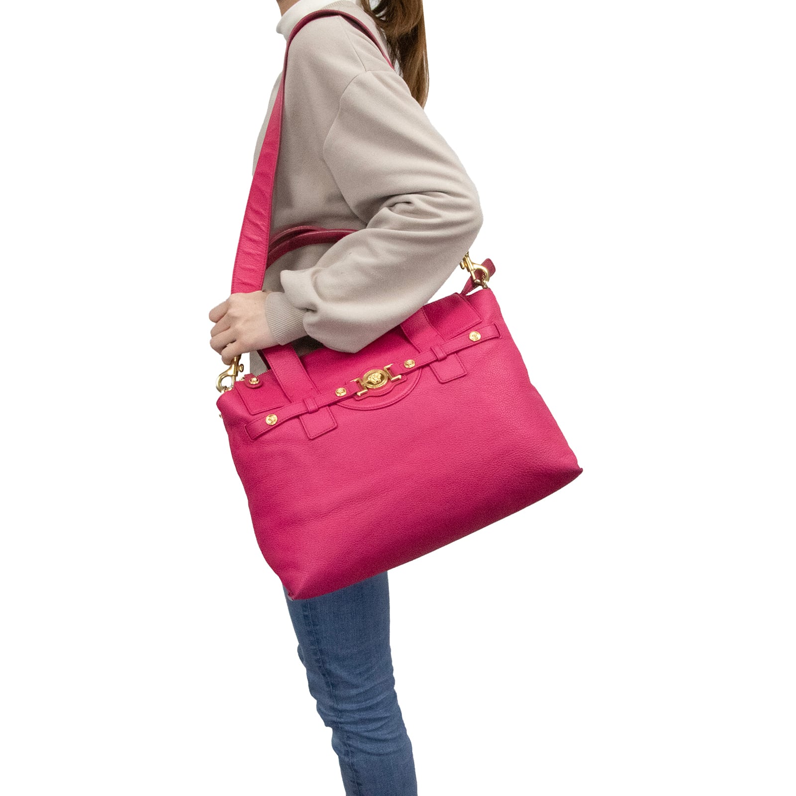 本物 送料無料 ヴェルサーチェ 2WAYショルダーバッグ ハンドバッグ レディース ピンク 肩掛け レア メドゥーサ ロゴ マーク 鞄 バック B321