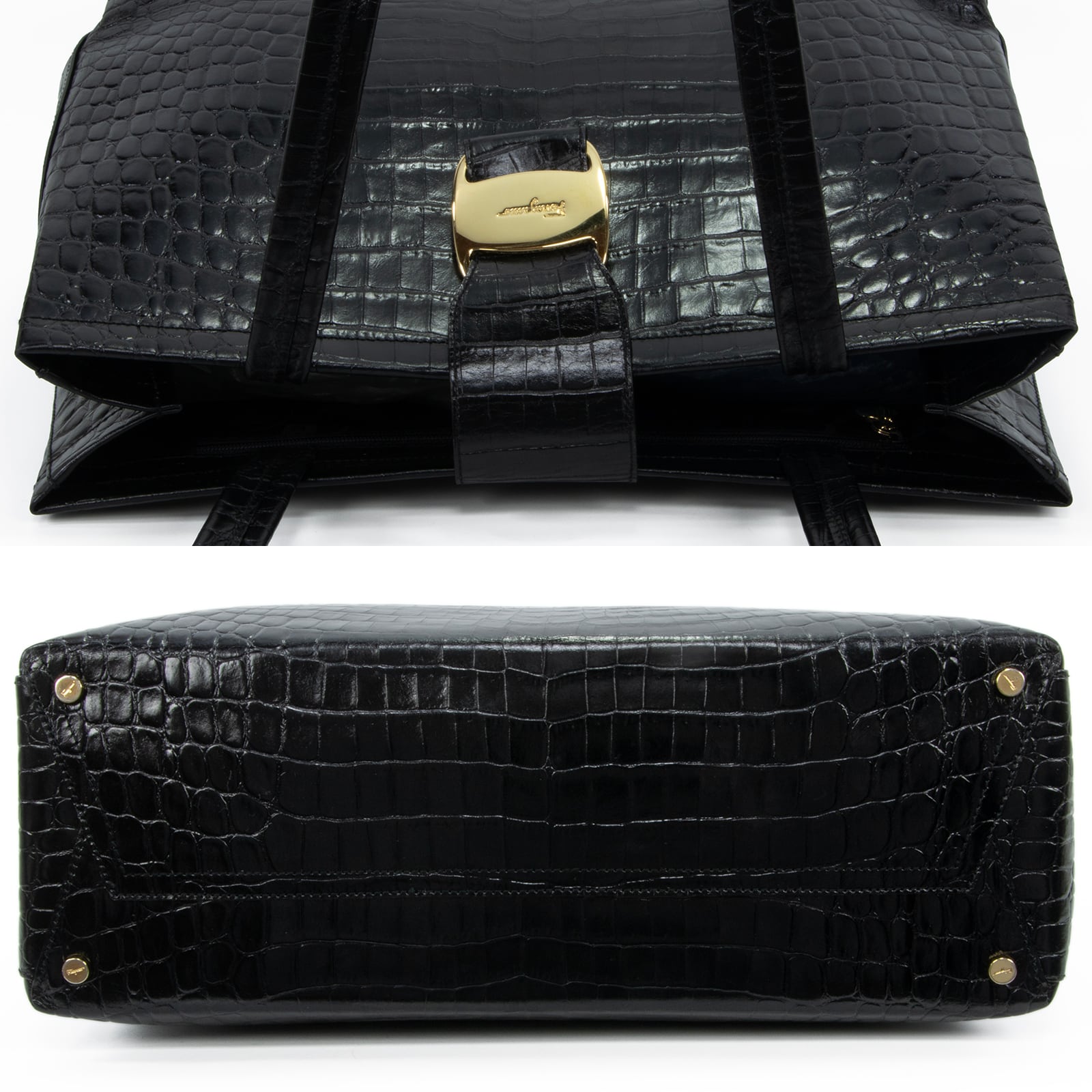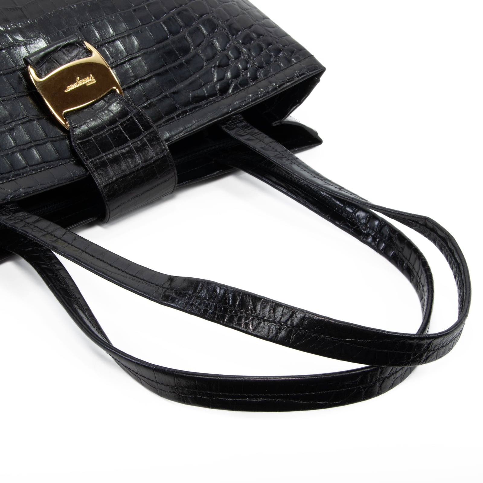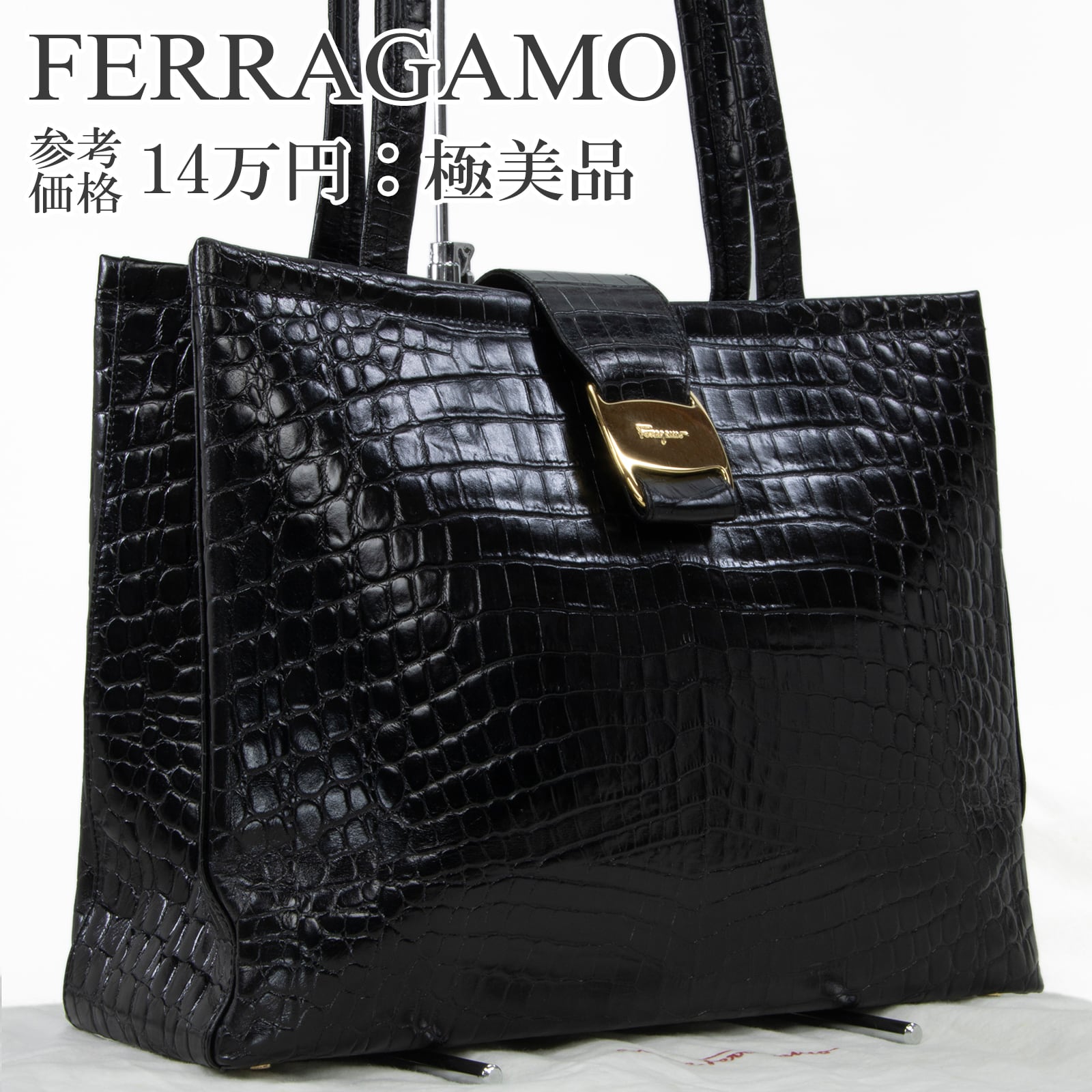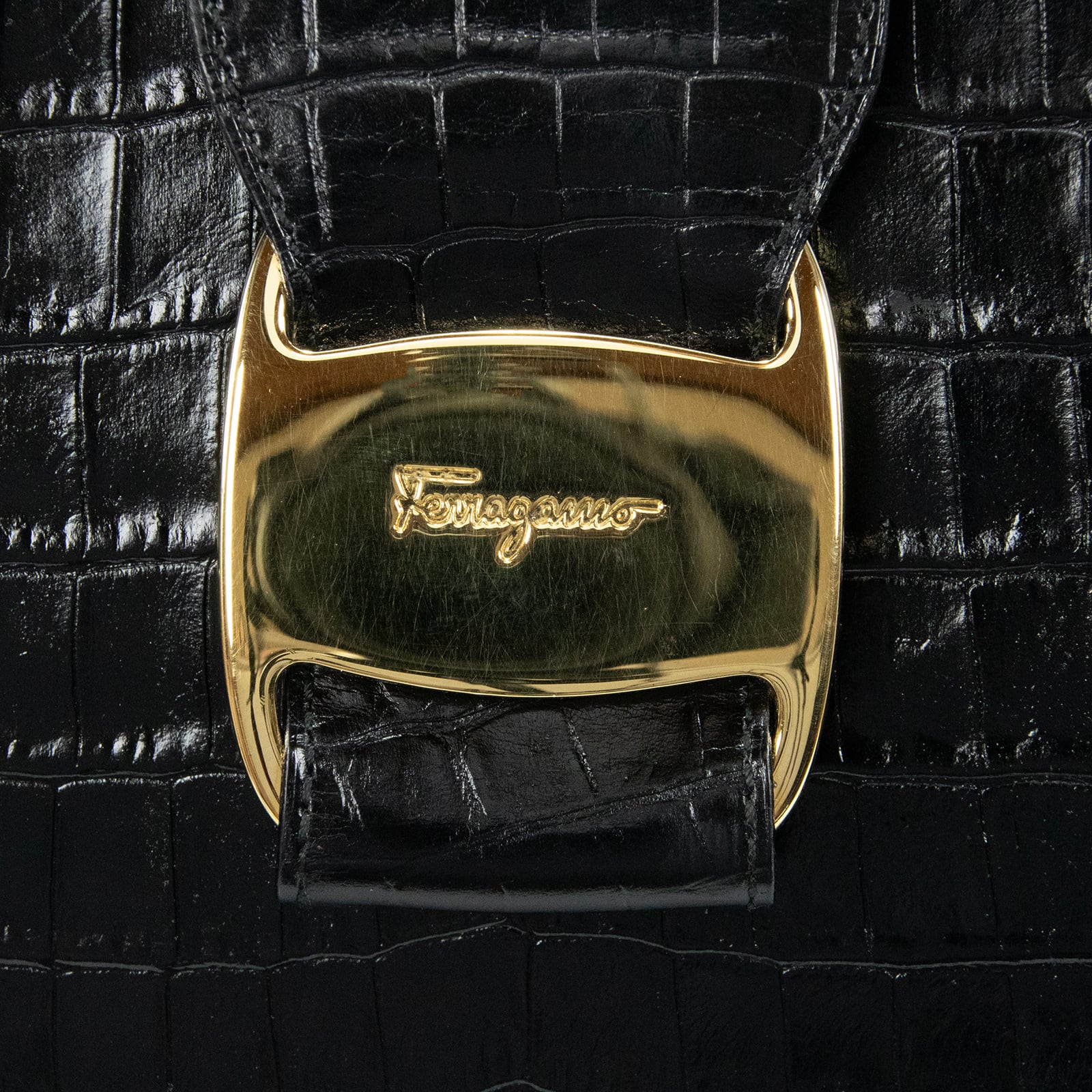 本物 送料無料 フェラガモ ハンドバッグ ショルダーバッグ メンズ レディース クロコ型押しレザー ヴァラ 黒 肩掛け ロゴ 鞄 バック I284