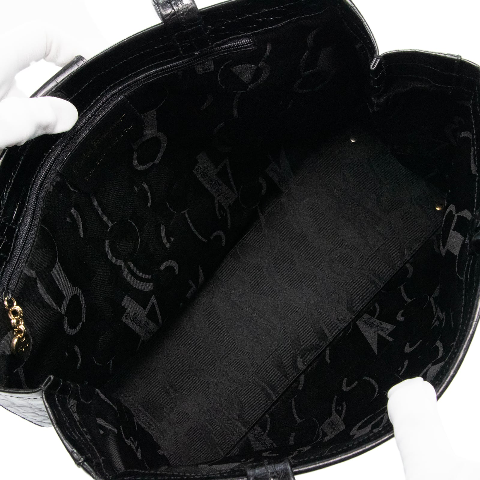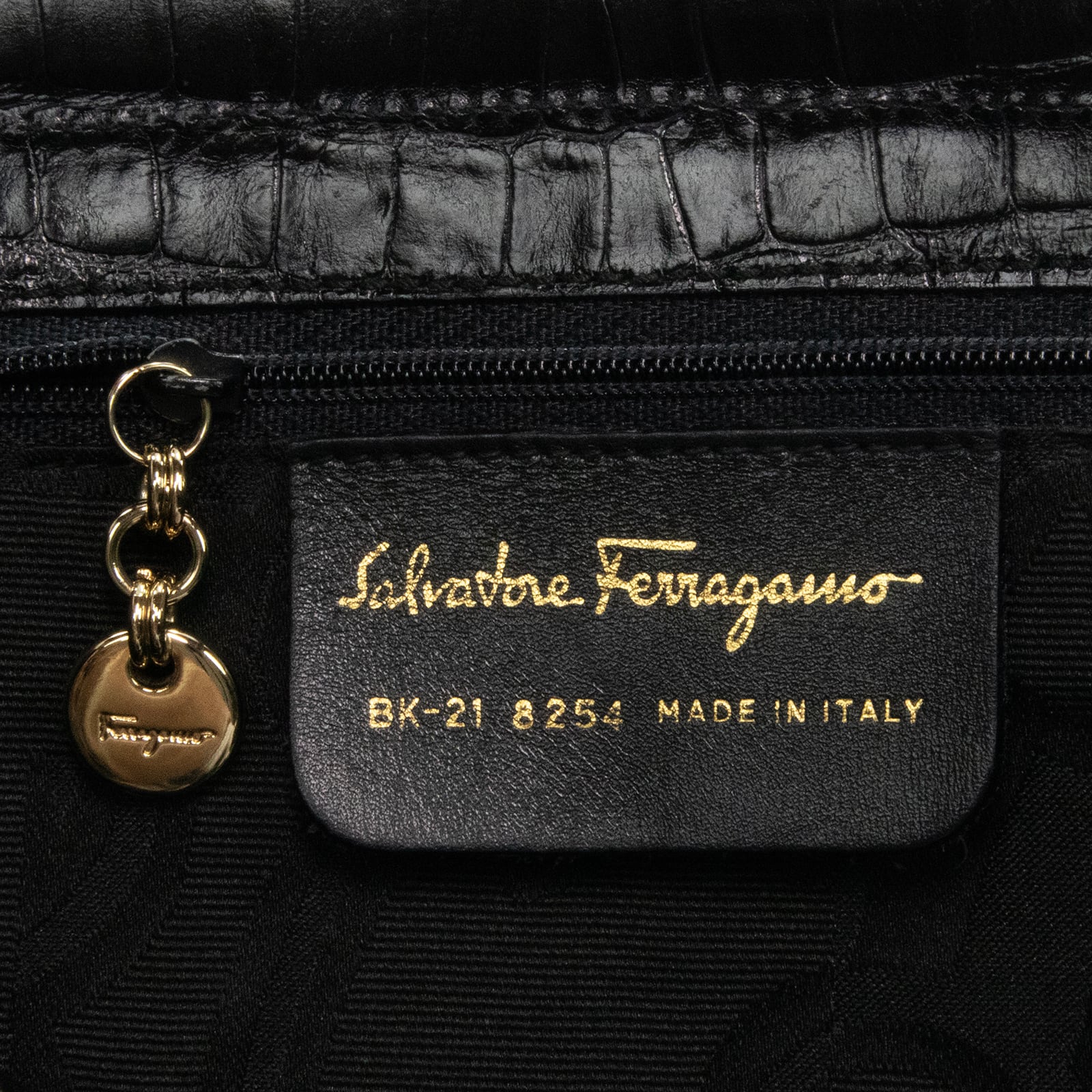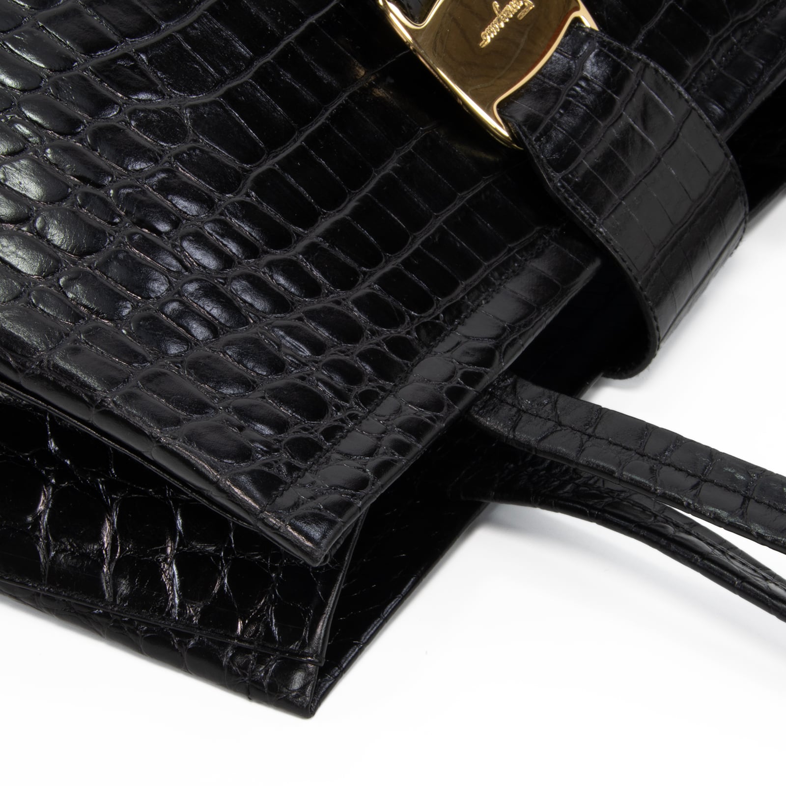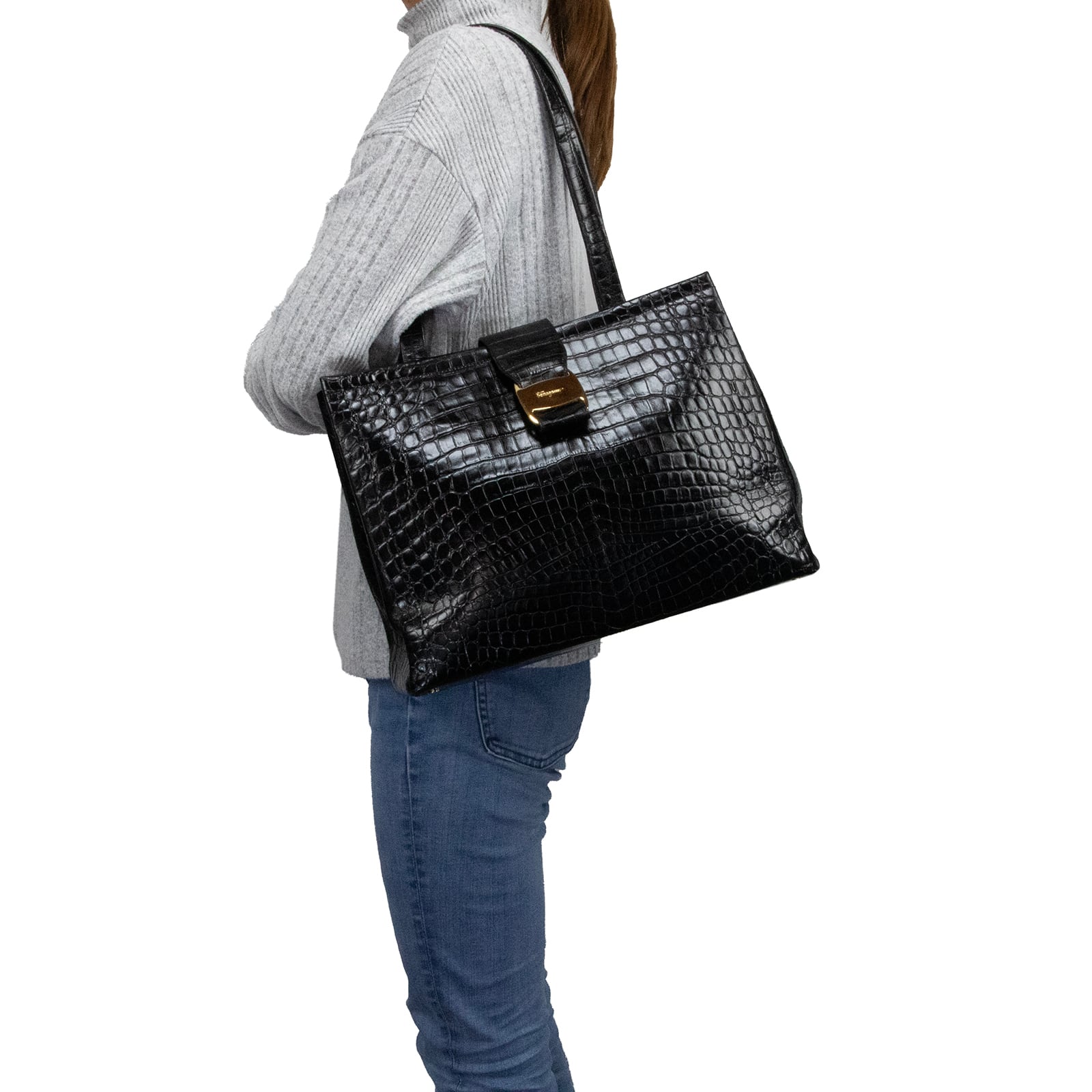 本物 送料無料 フェラガモ ハンドバッグ ショルダーバッグ メンズ レディース クロコ型押しレザー ヴァラ 黒 肩掛け ロゴ 鞄 バック I284