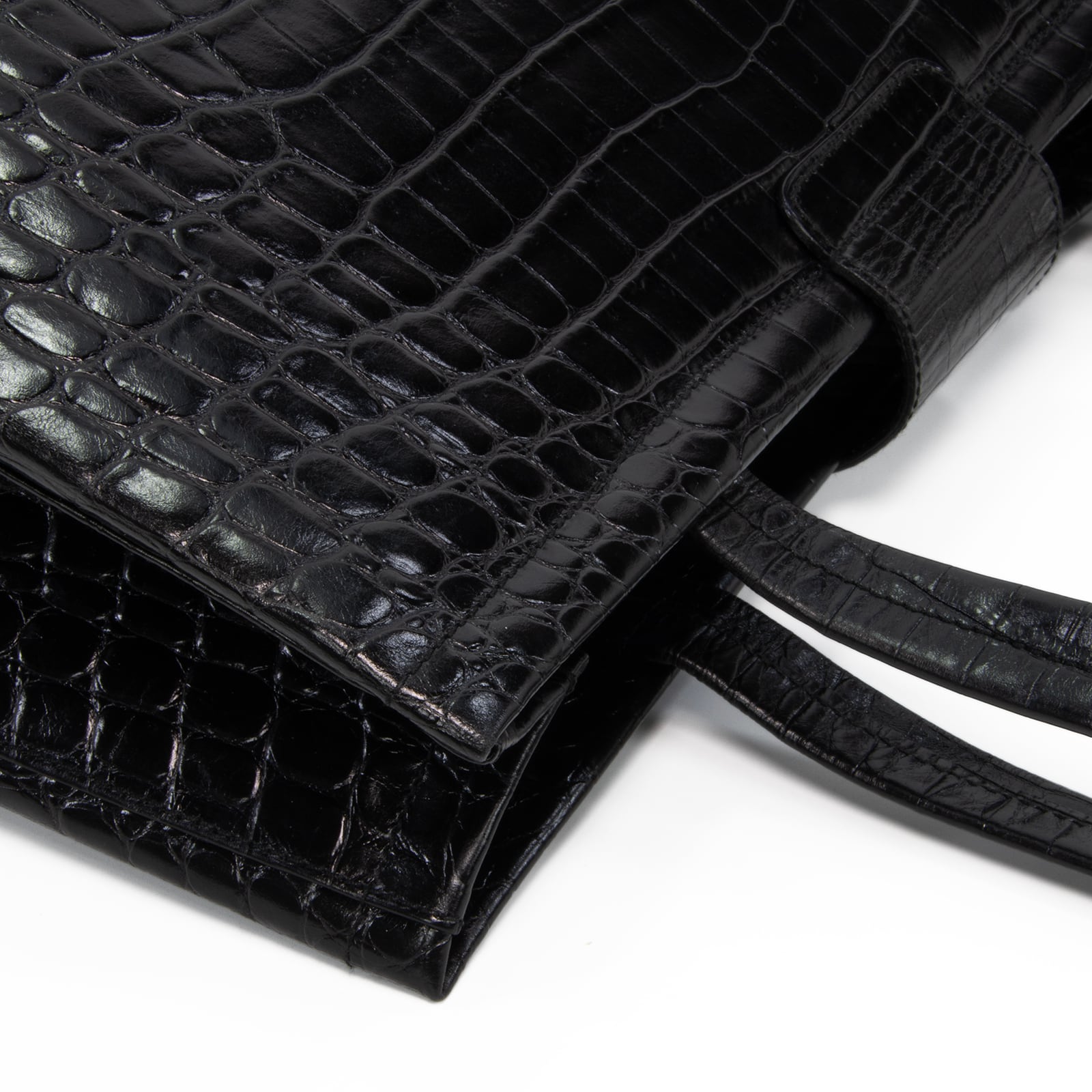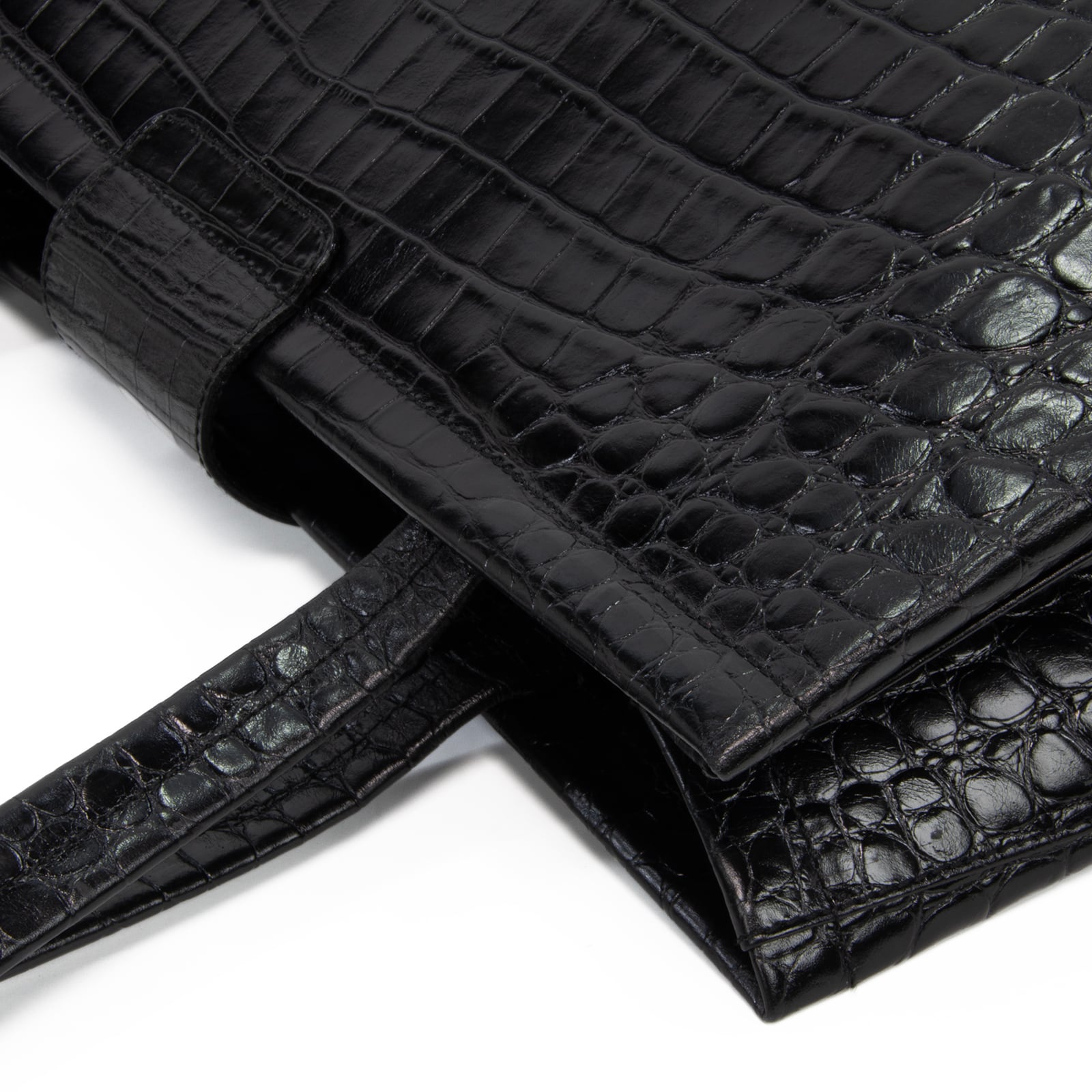 艶やかなクロコダイル型押しレザーが、いつものファッションに深みと洗練された大人の余裕を添えております。