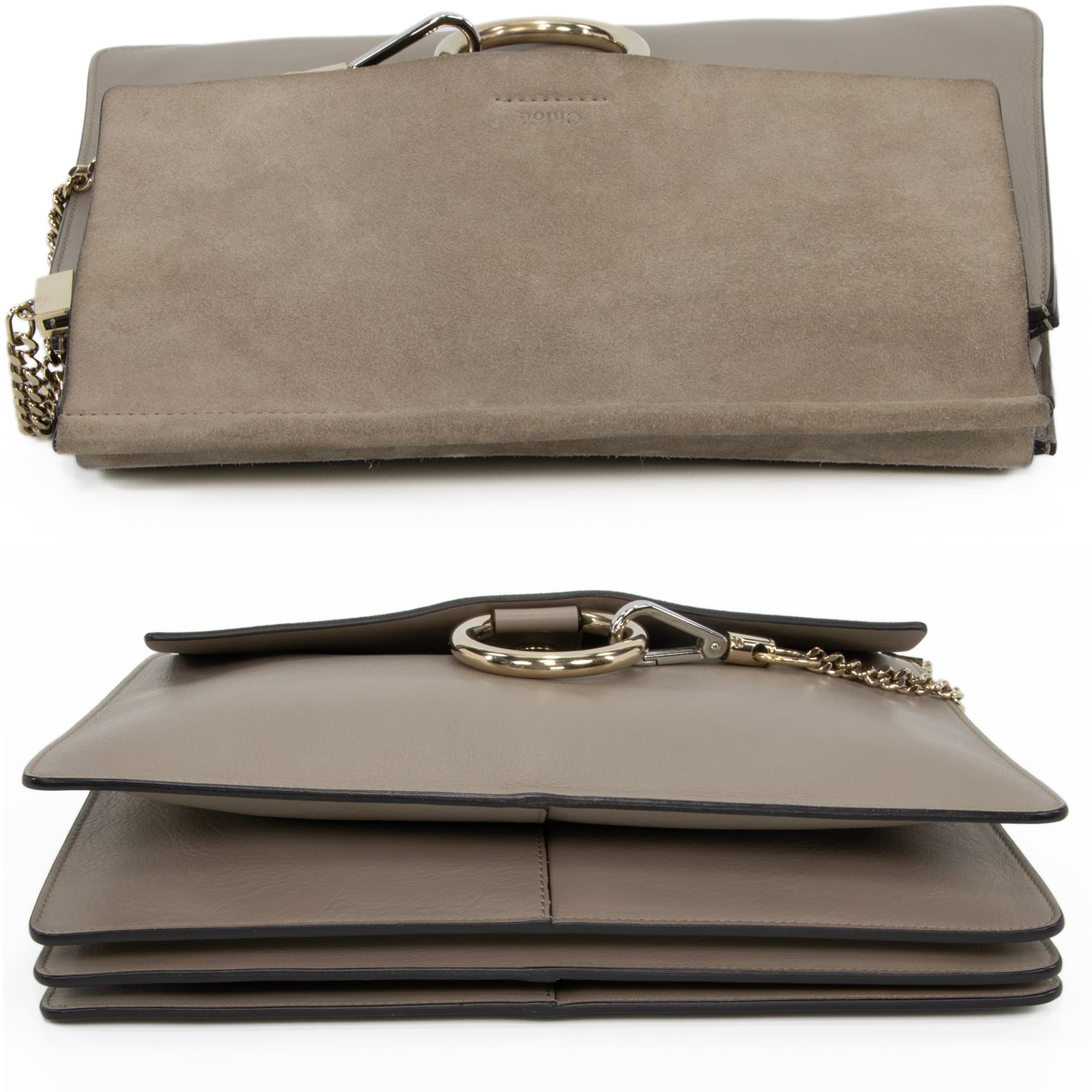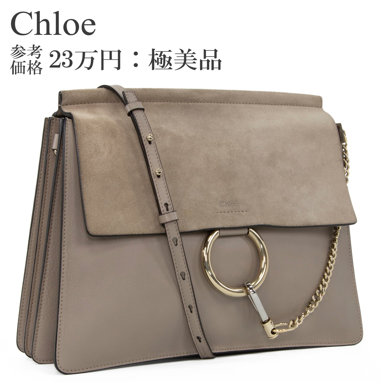 本物 送料無料 クロエ ショルダーバッグ レディース フェイ グレーベージュ 人気 肩掛け ゴールドチェーン リング 綺麗 革 鞄 バック I288