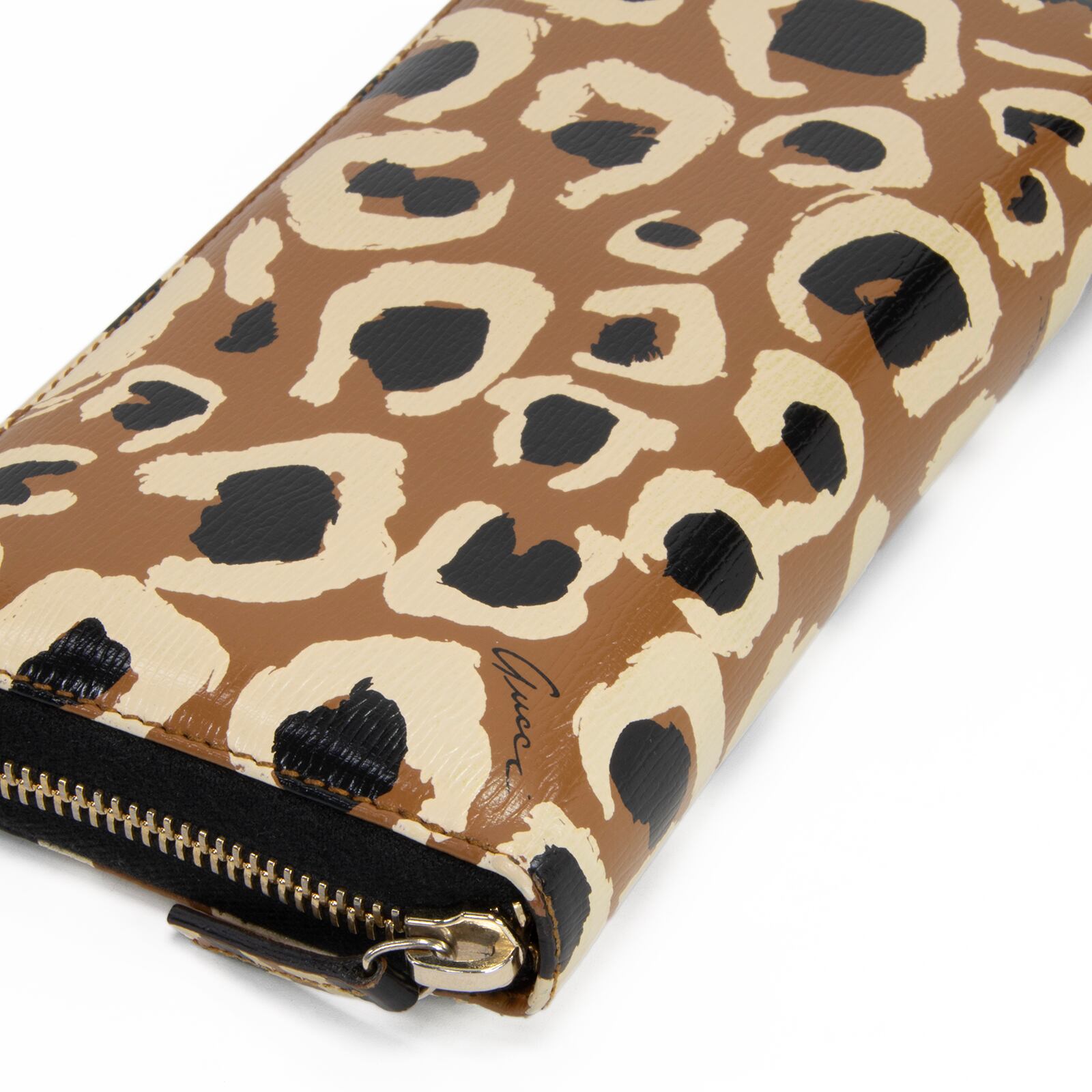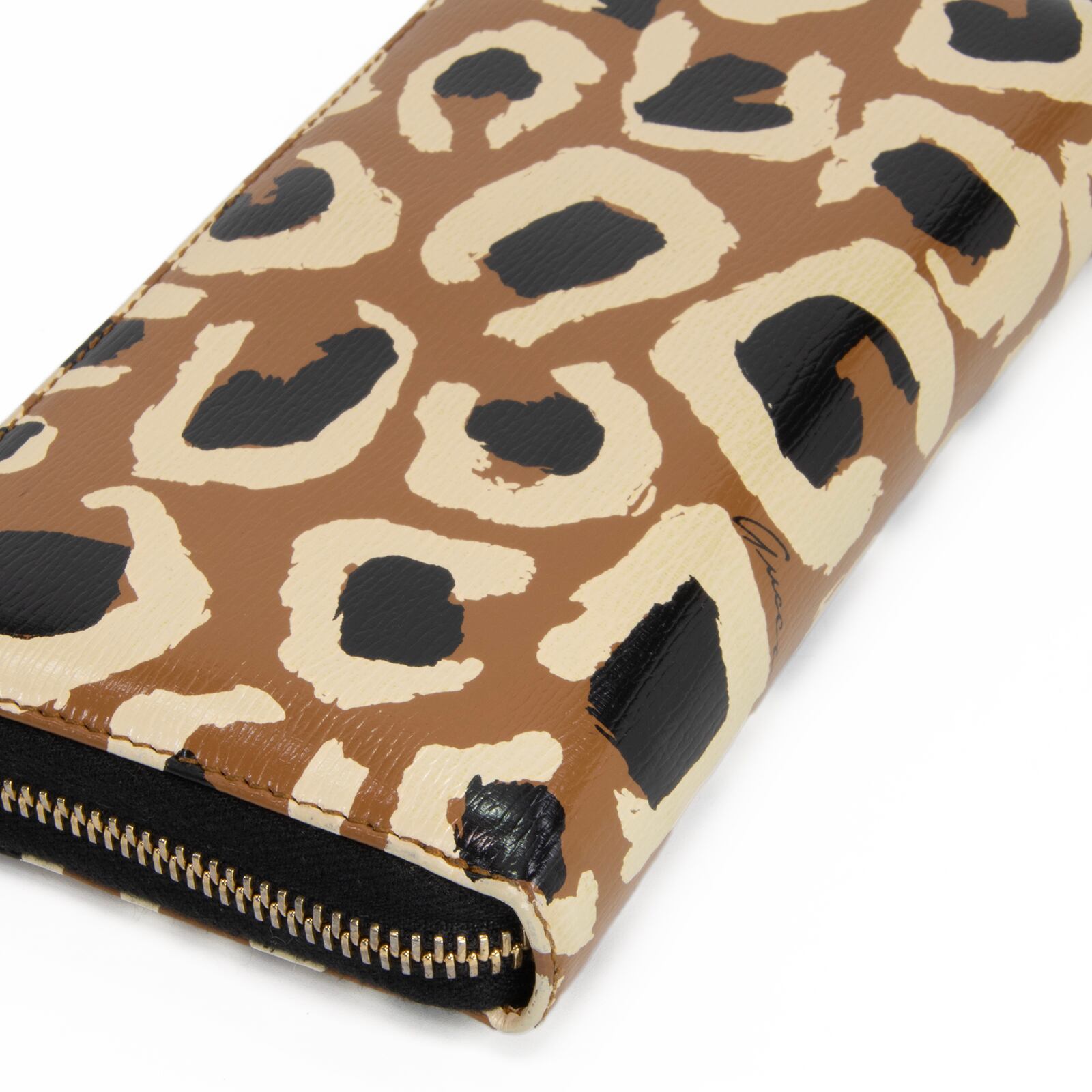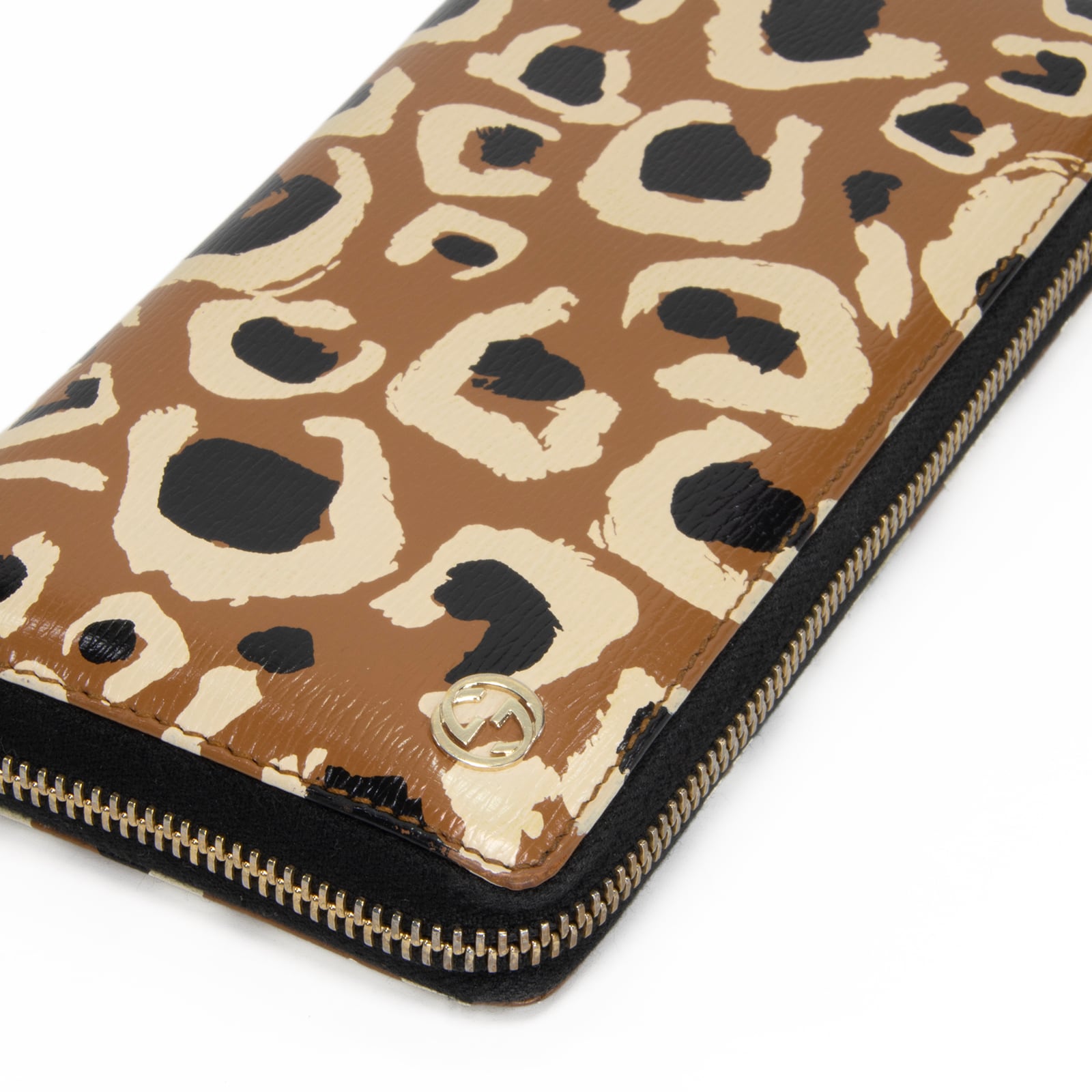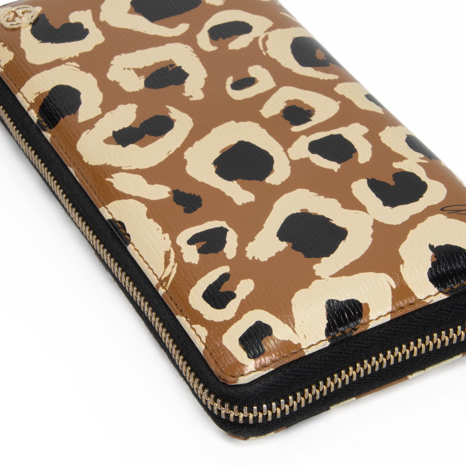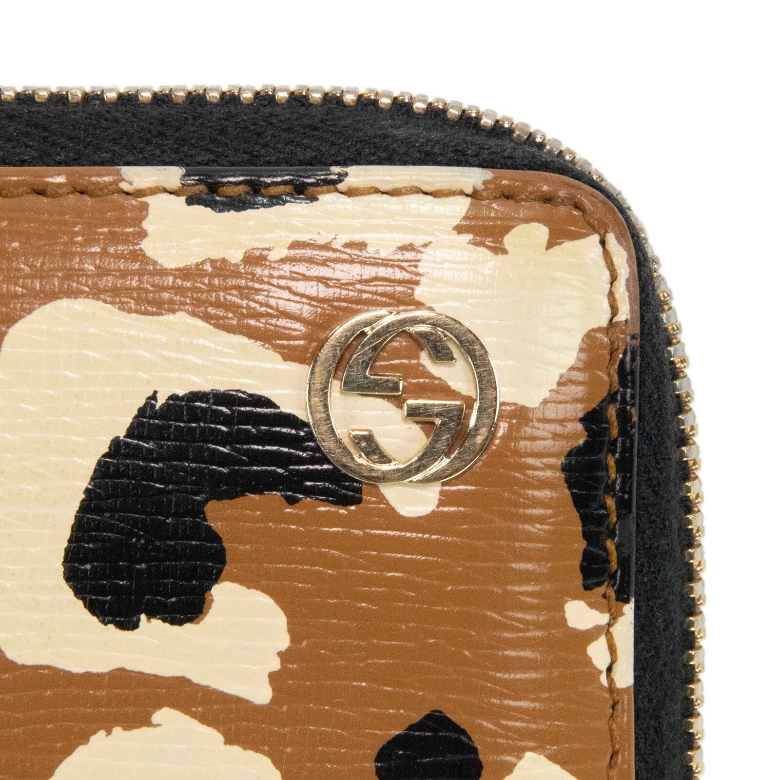 こちらは、大胆なヒョウ柄が装いへ鮮烈な個性を添えてくれる、グッチのベティ・ラウンドファスナーでございます。