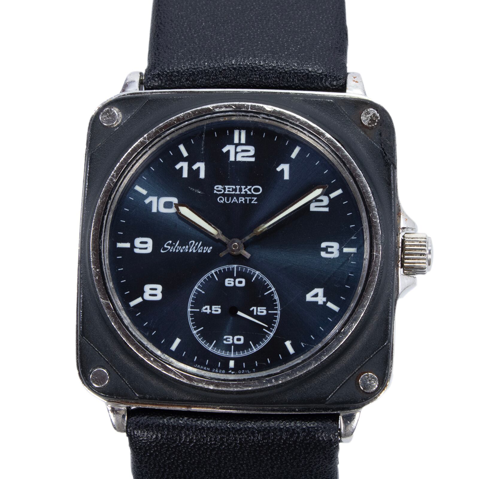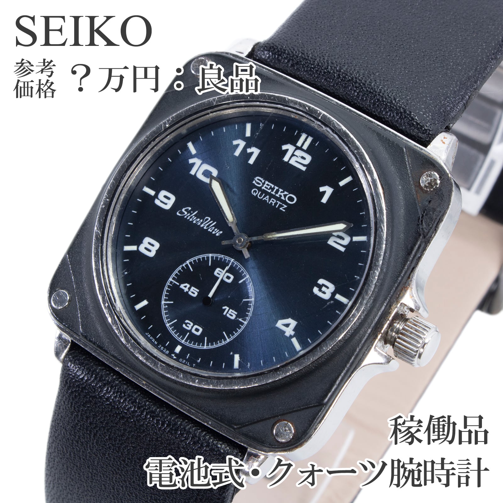 稼働品 送料無料 セイコー 腕時計 クォーツ 3針 メンズ シルバーウェーブ 2628-0040 ネイビーブルー 黒 ヴィンテージ スクエア型 ロゴ X466