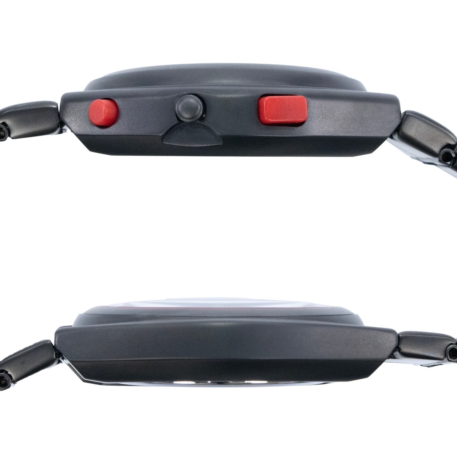 マットなブラックのボディに、鮮烈なレッドのラインとボタンが映え、計器類のようなメカニカルな美しさがございます。