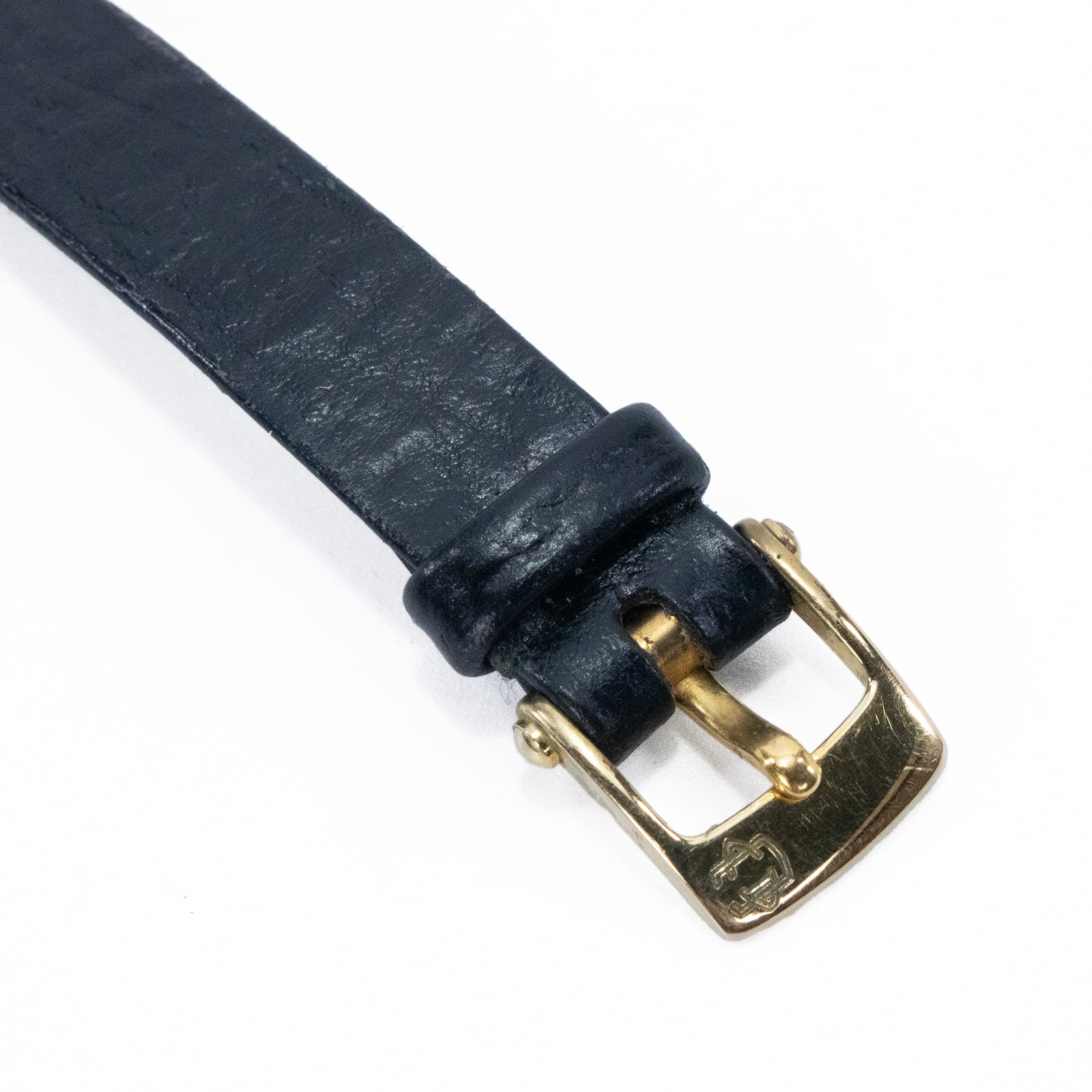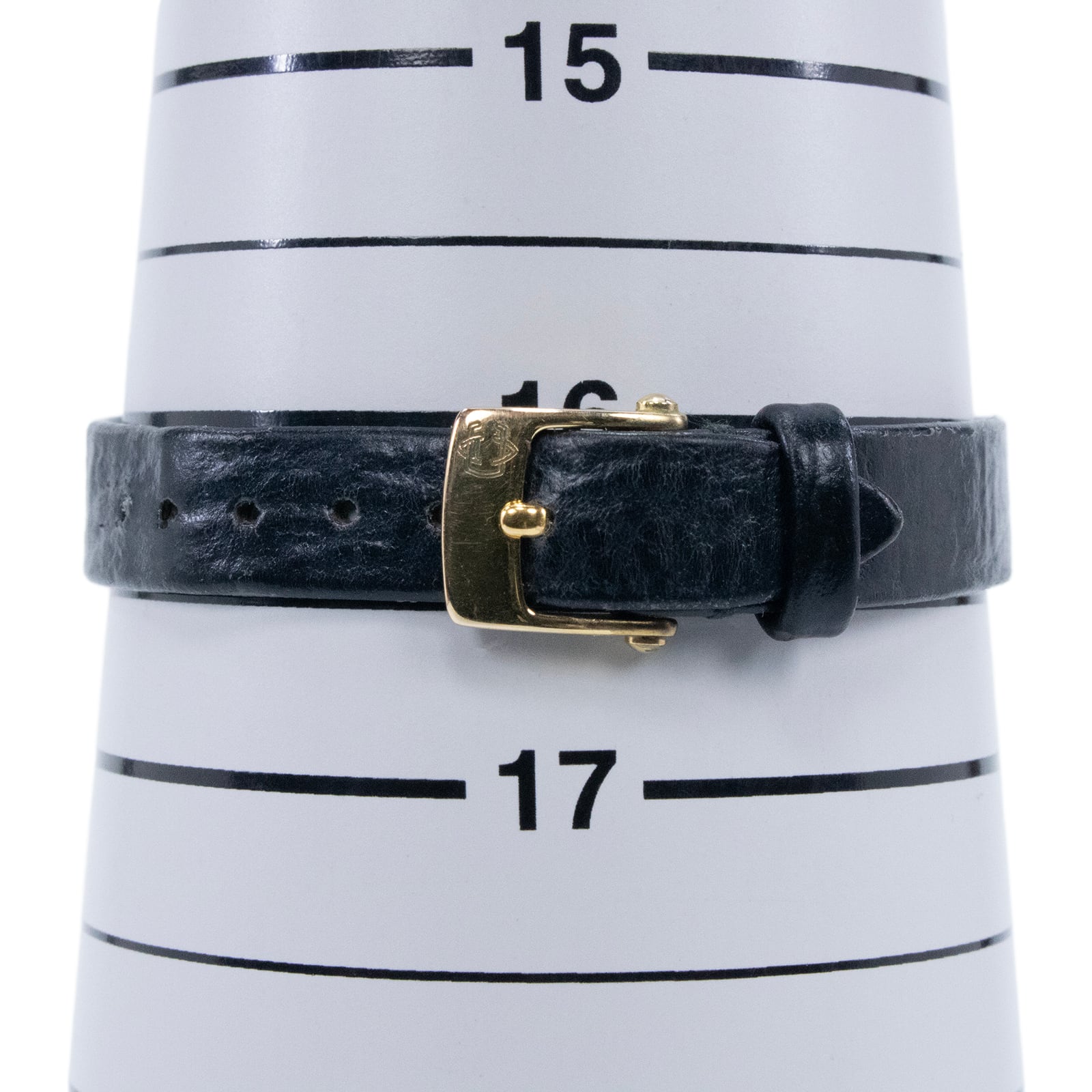 純正のブラックレザーベルトとロゴ入りの独特なラグデザインが、手元を芸術的かつエレガントに彩ります。