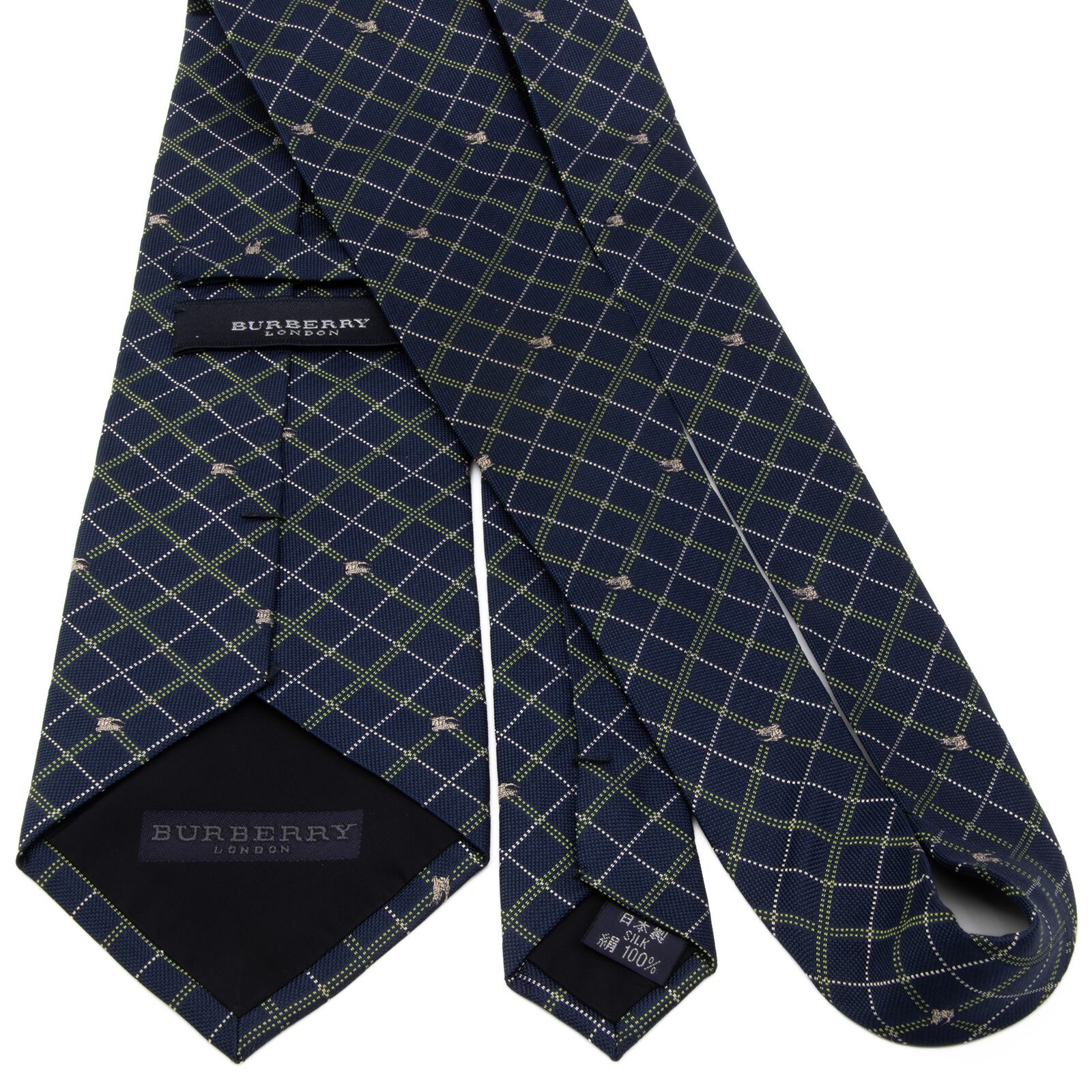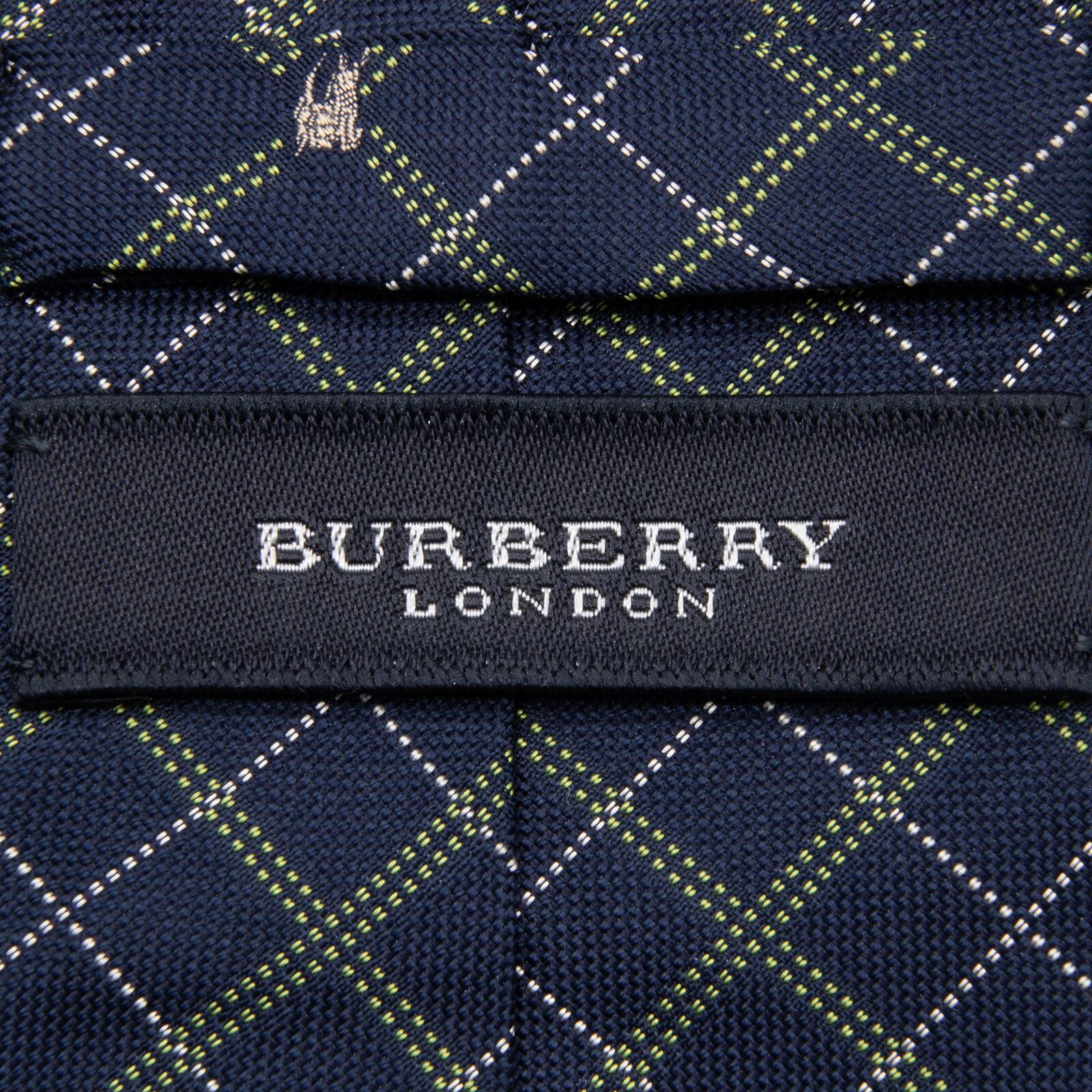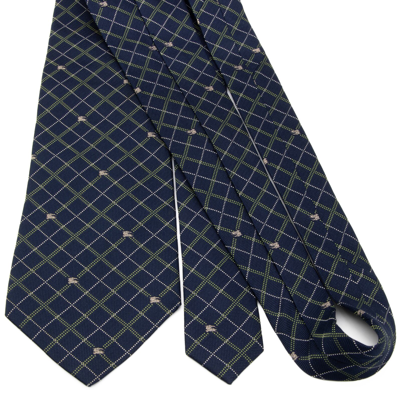 送料無料 バーバリー ネクタイ ジャガード シルク ネイビーブルー 緑 シルバー チェック Y2K 馬 ホースロゴ マーク ハイブランド 綺麗 P348