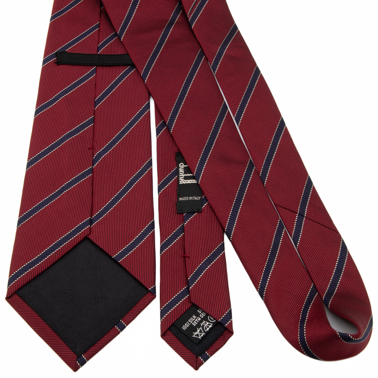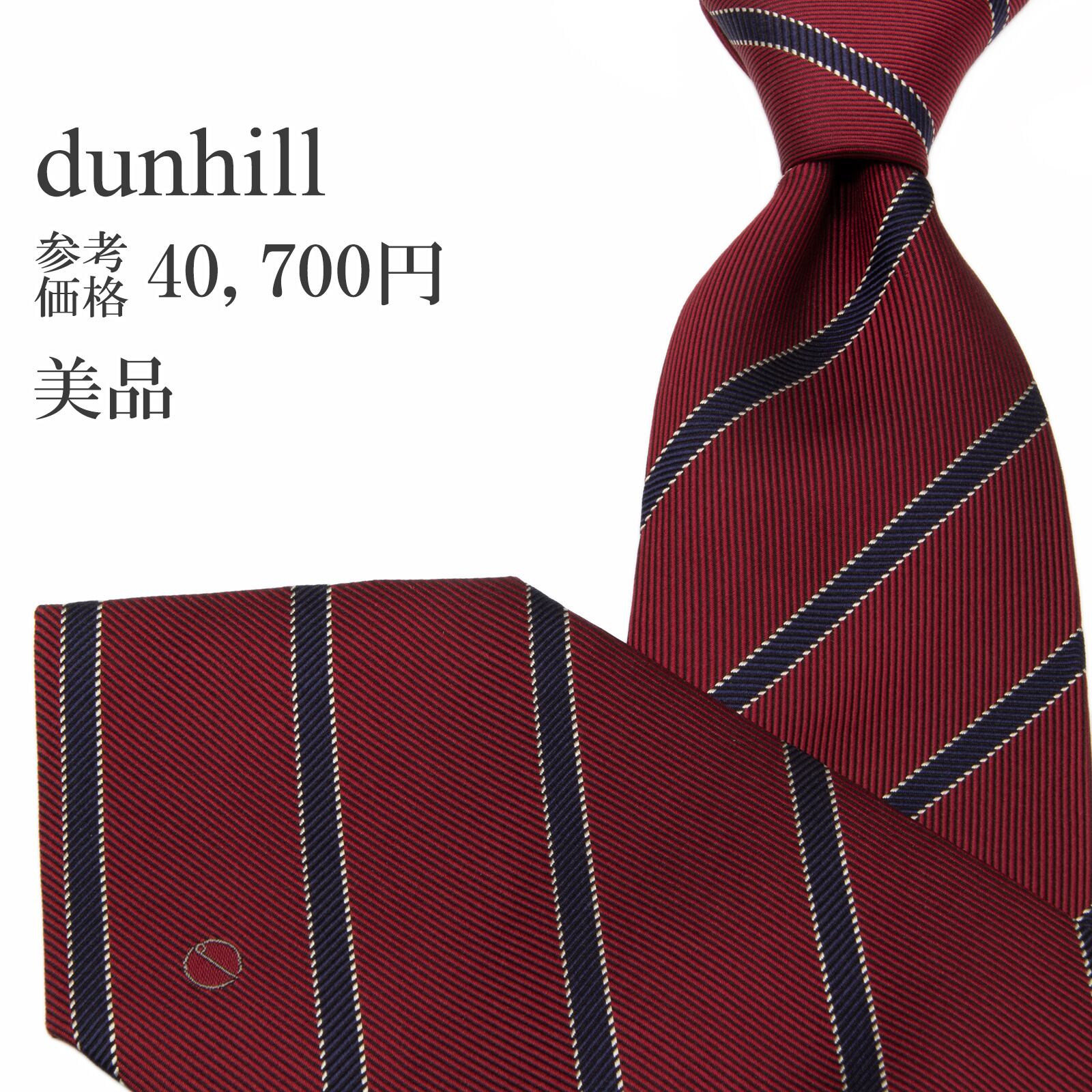 送料無料 ダンヒル ネクタイ レギュラータイ ジャガード 赤 ネイビーブルー シルバー ストライプ ロゴ マーク シンプル イタリア 綺麗 P473