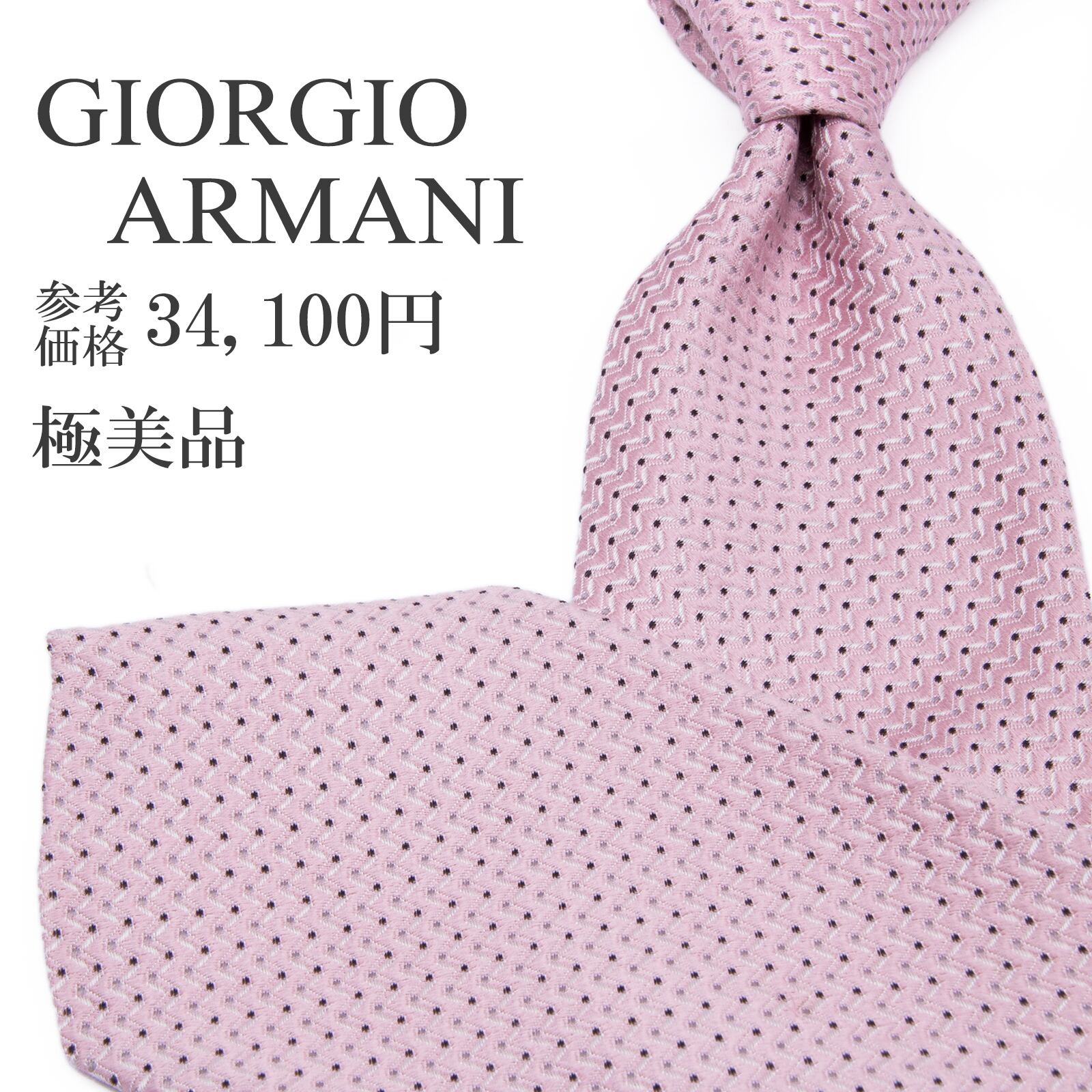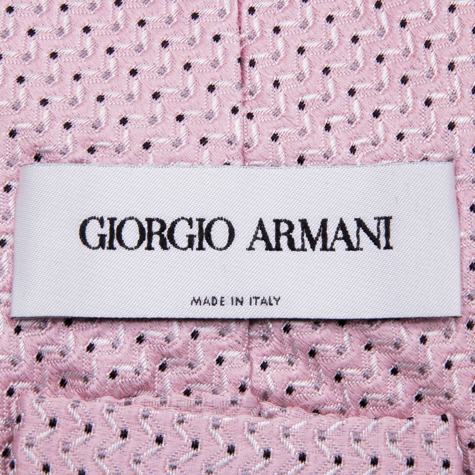 送料無料 ジョルジオアルマーニ ネクタイ レギュラータイ ジャガード ピンク 黒 白 ドット 総柄 ギザギザ ハイブランド イタリア 綺麗 P520