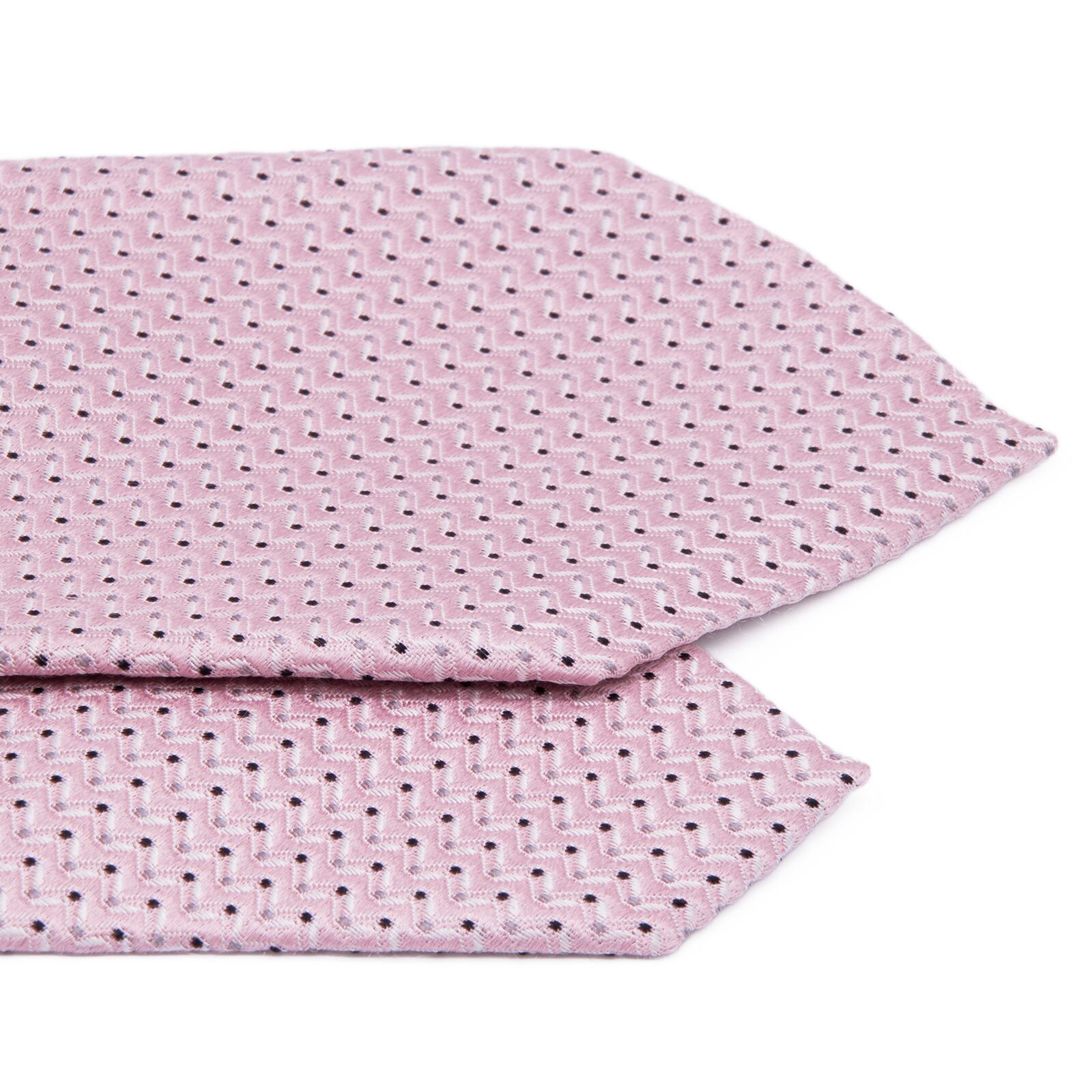 規則正しく並んだドットとジグザグの織り柄は、イタリア製シルクならではの滑らかな手触りと相まって、極上の締め心地を約束いたします。