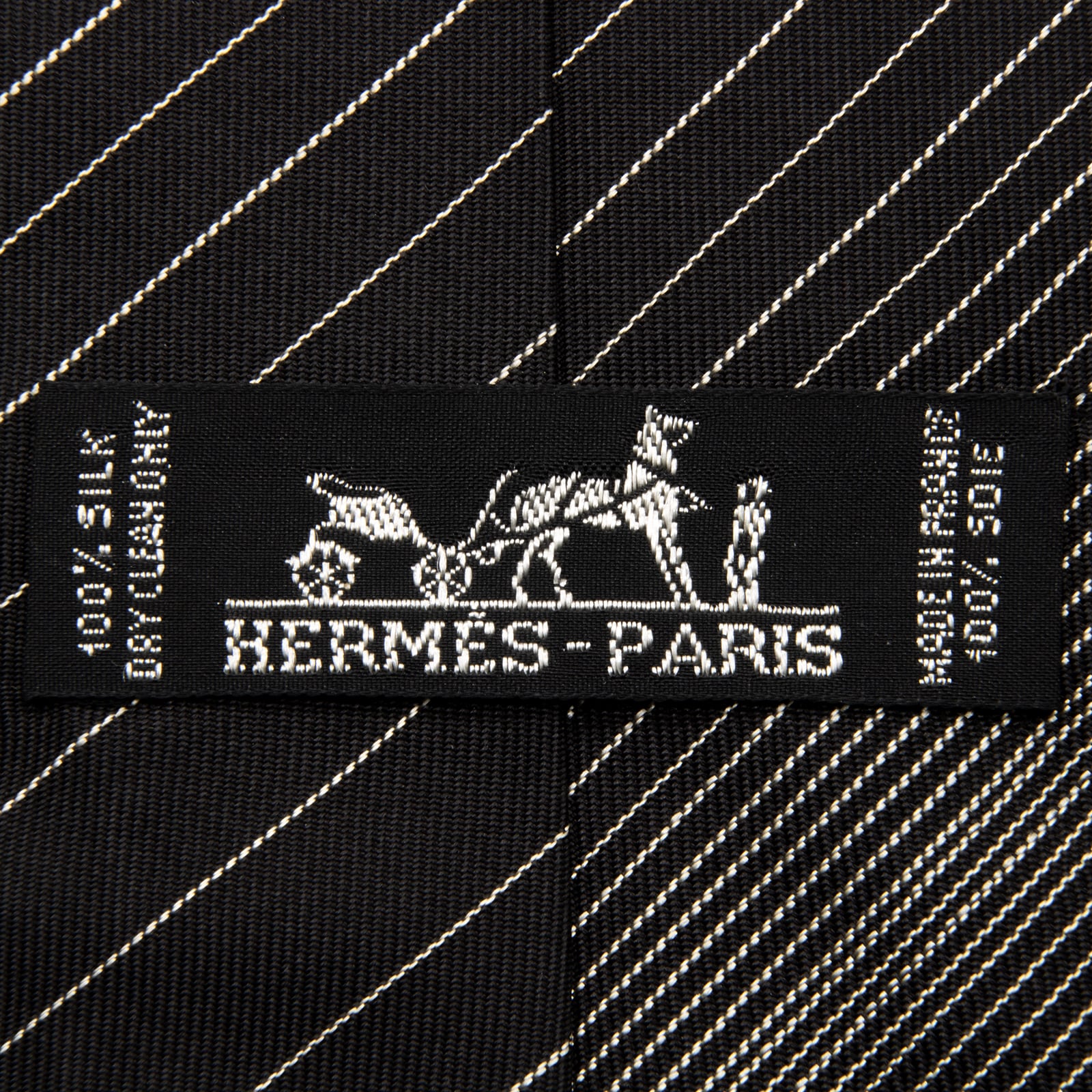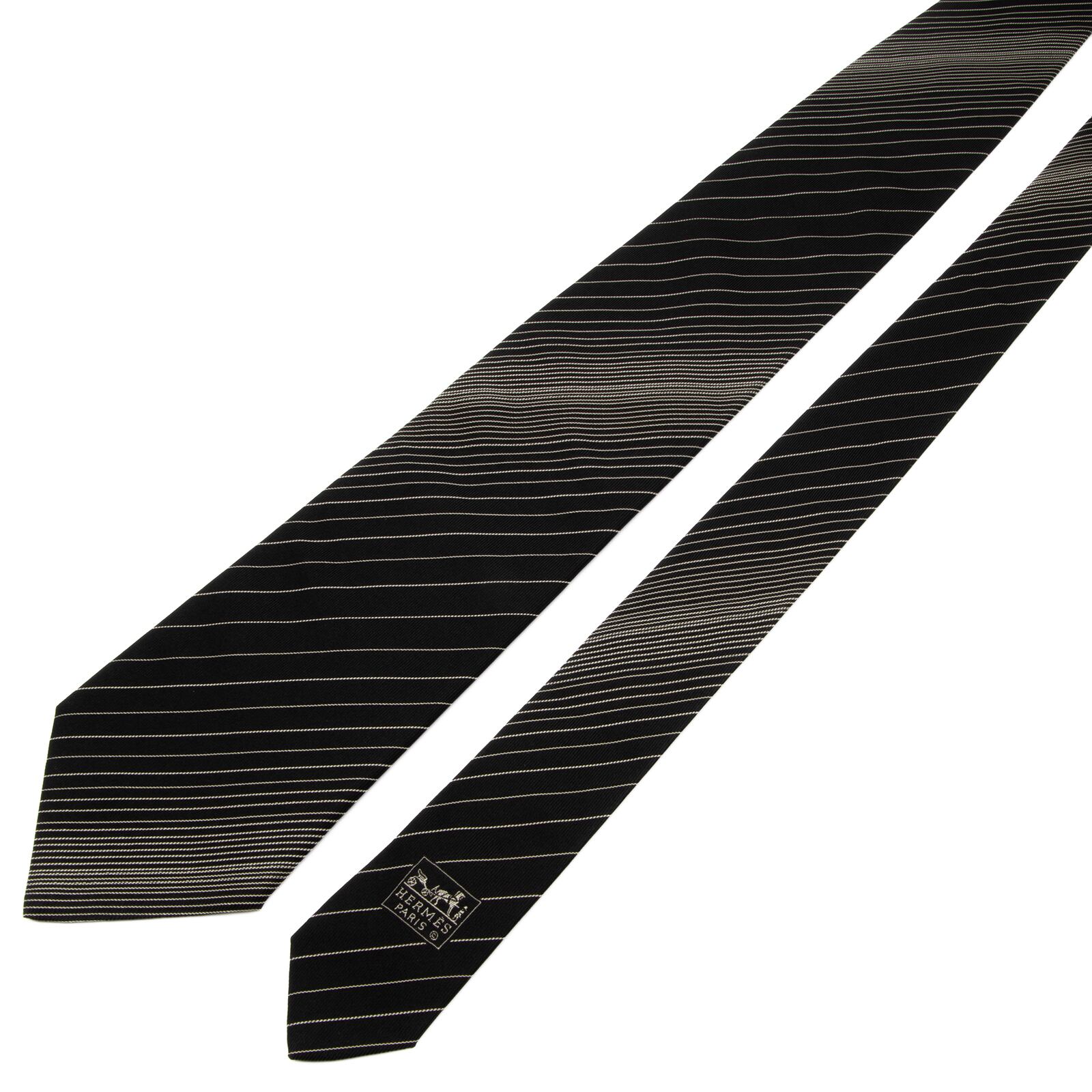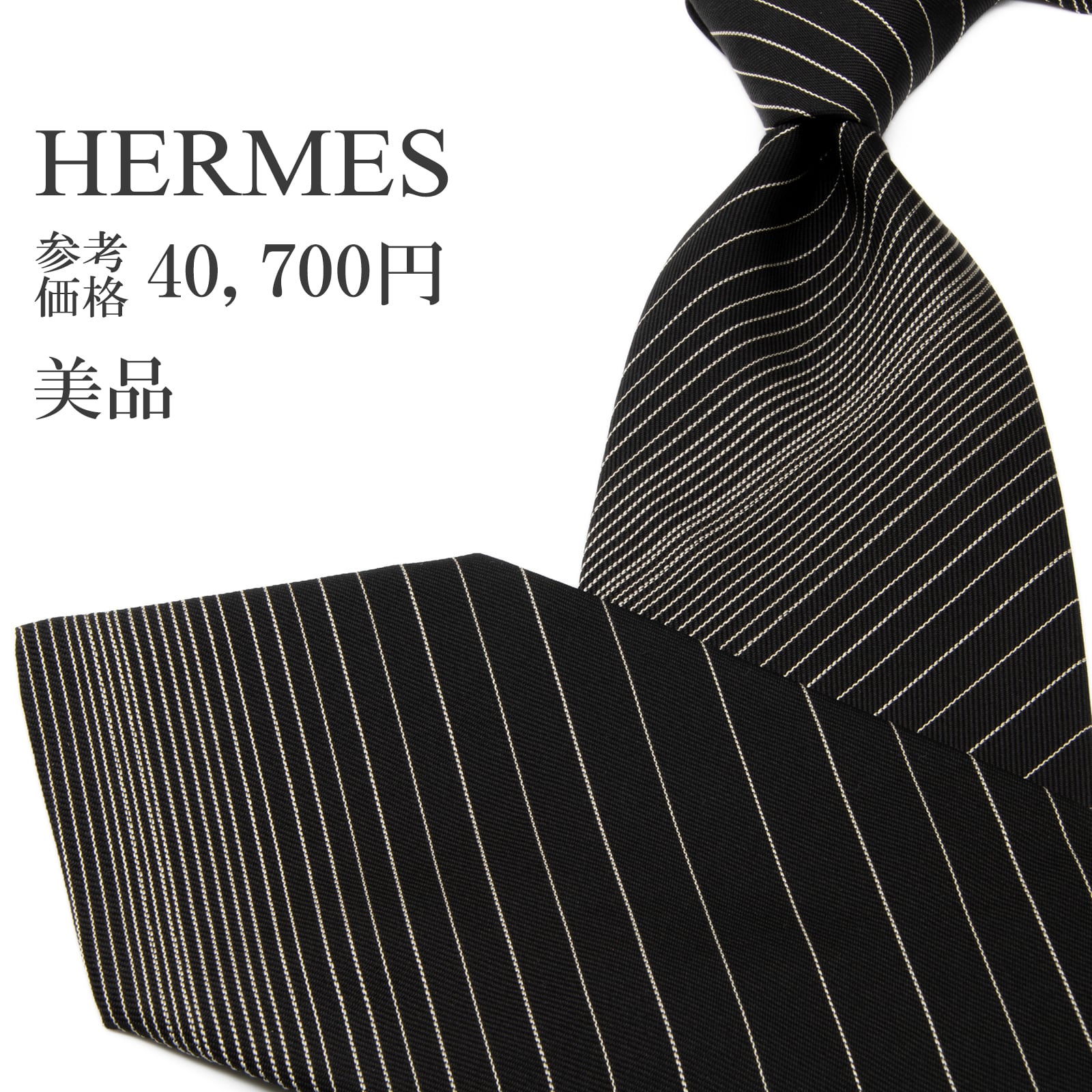 送料無料 エルメス ネクタイ レギュラータイ ジャガード 黒 ブラック シルバー ストライプ シンプル ハイブランド フランス製 綺麗 P571