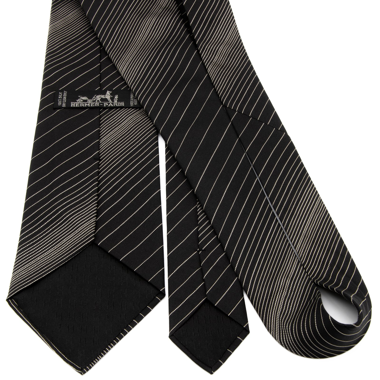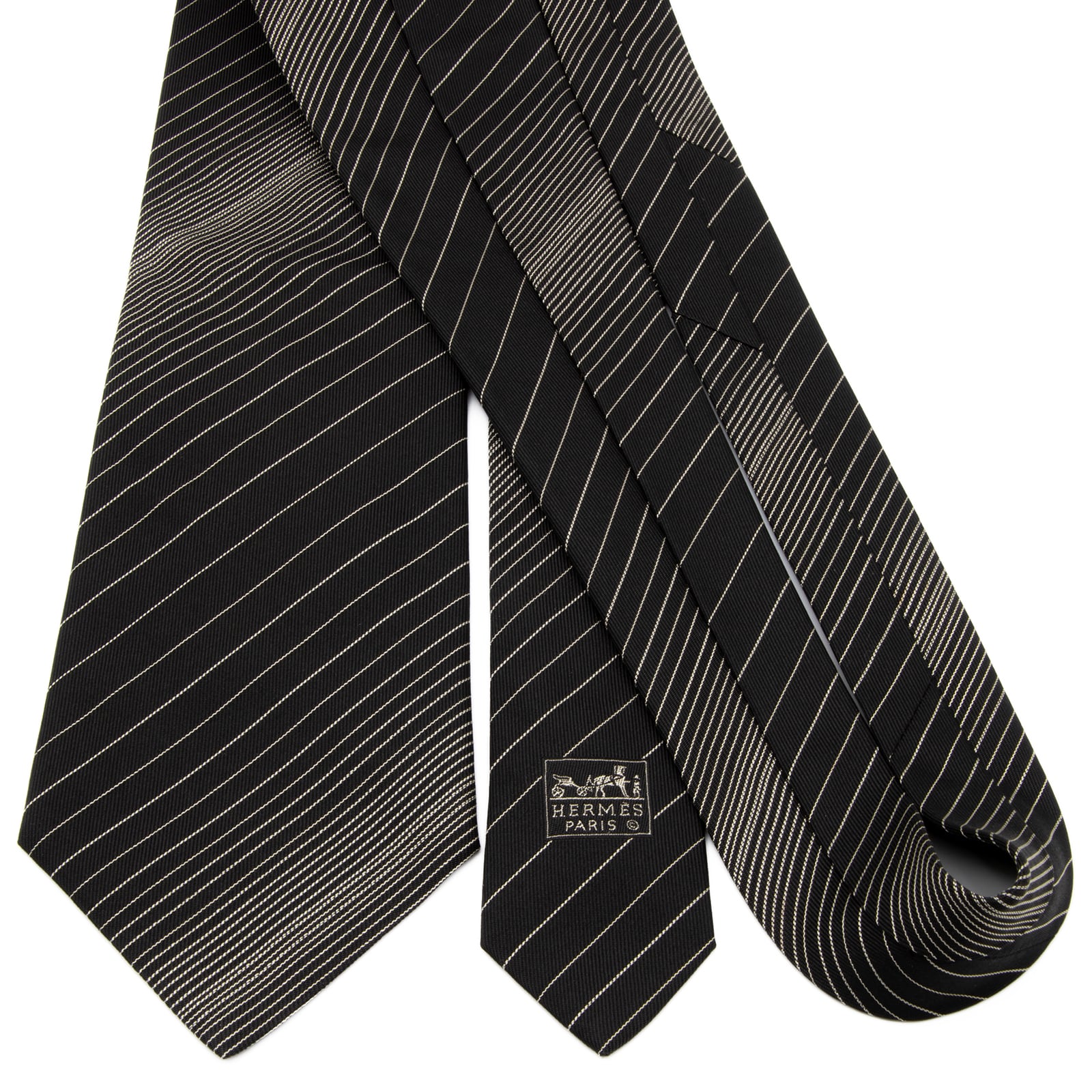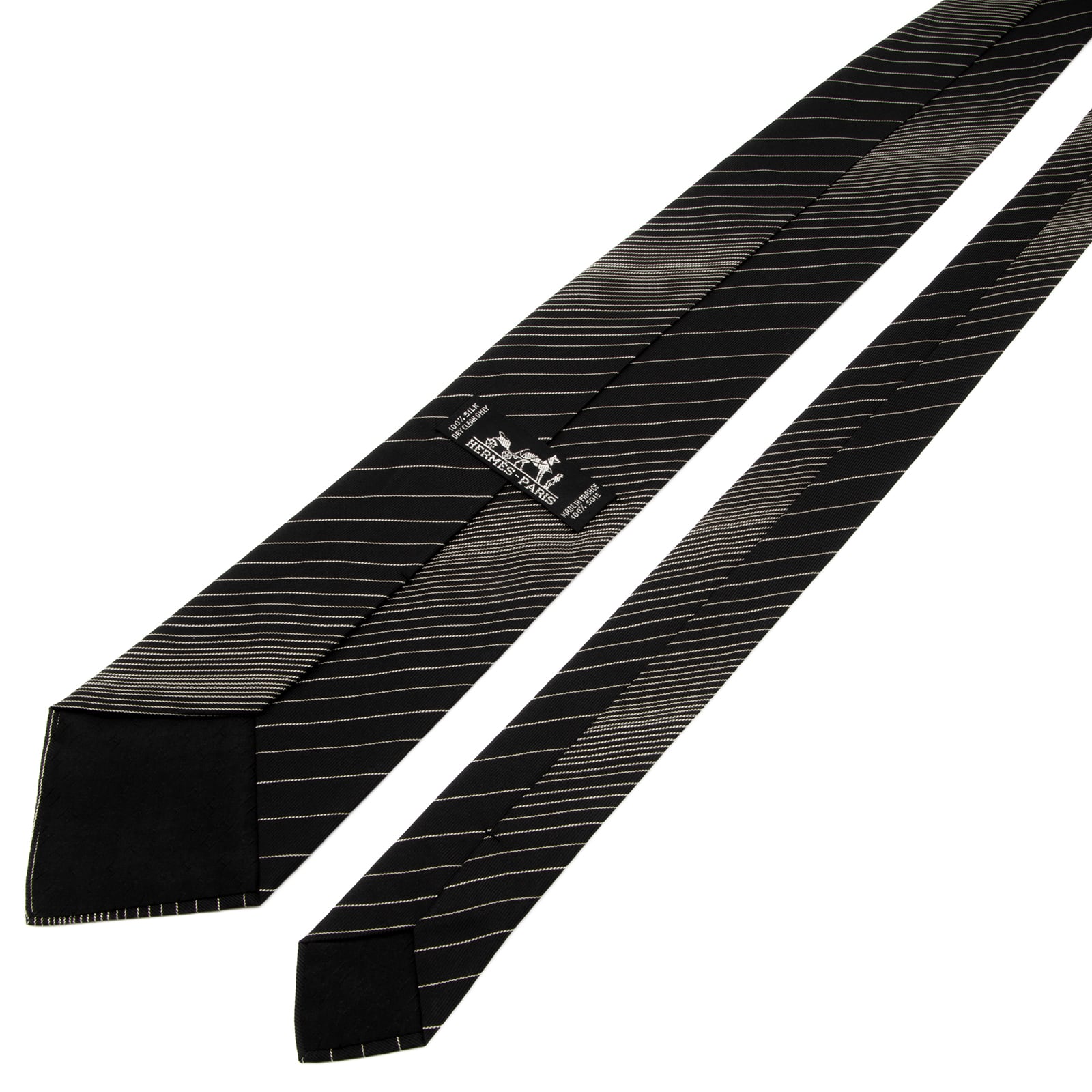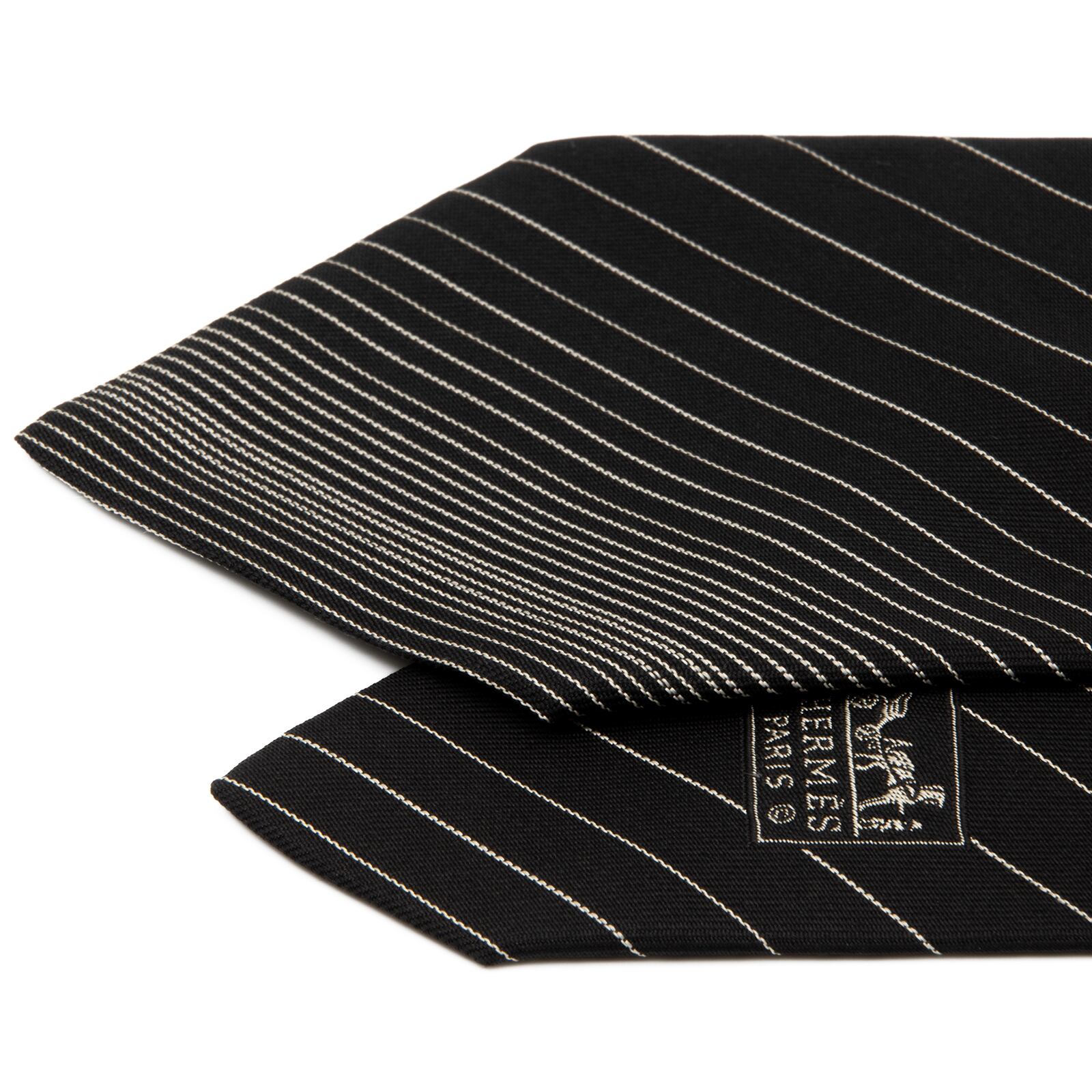 送料無料 エルメス ネクタイ レギュラータイ ジャガード 黒 ブラック シルバー ストライプ シンプル ハイブランド フランス製 綺麗 P571