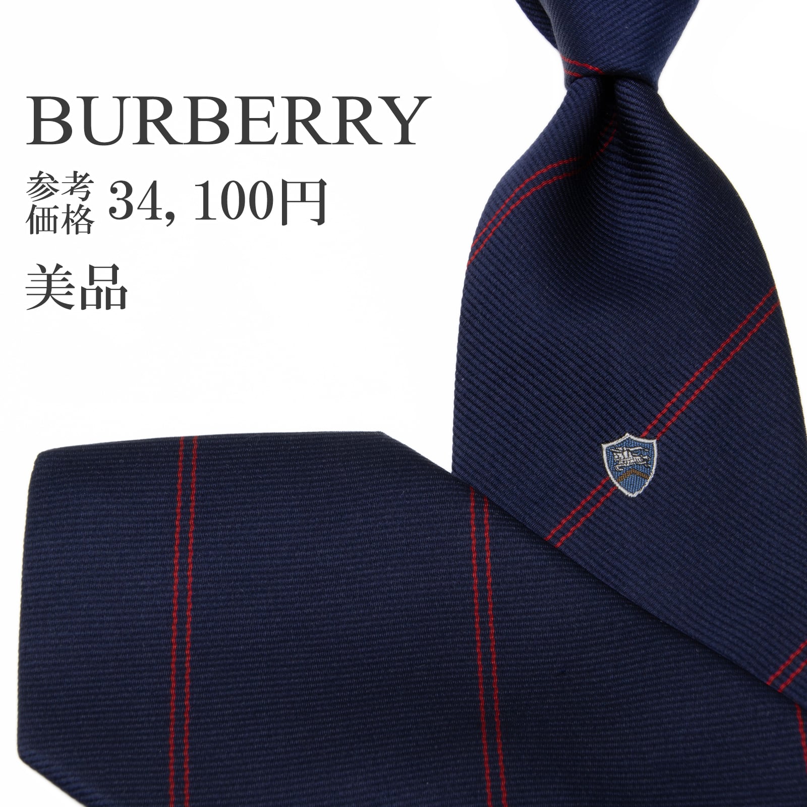 送料無料 バーバリー ネクタイ レギュラータイ ジャガード ネイビーブルー 赤 ストライプ 馬 ホースロゴ シンプル ハイブランド 綺麗 P573