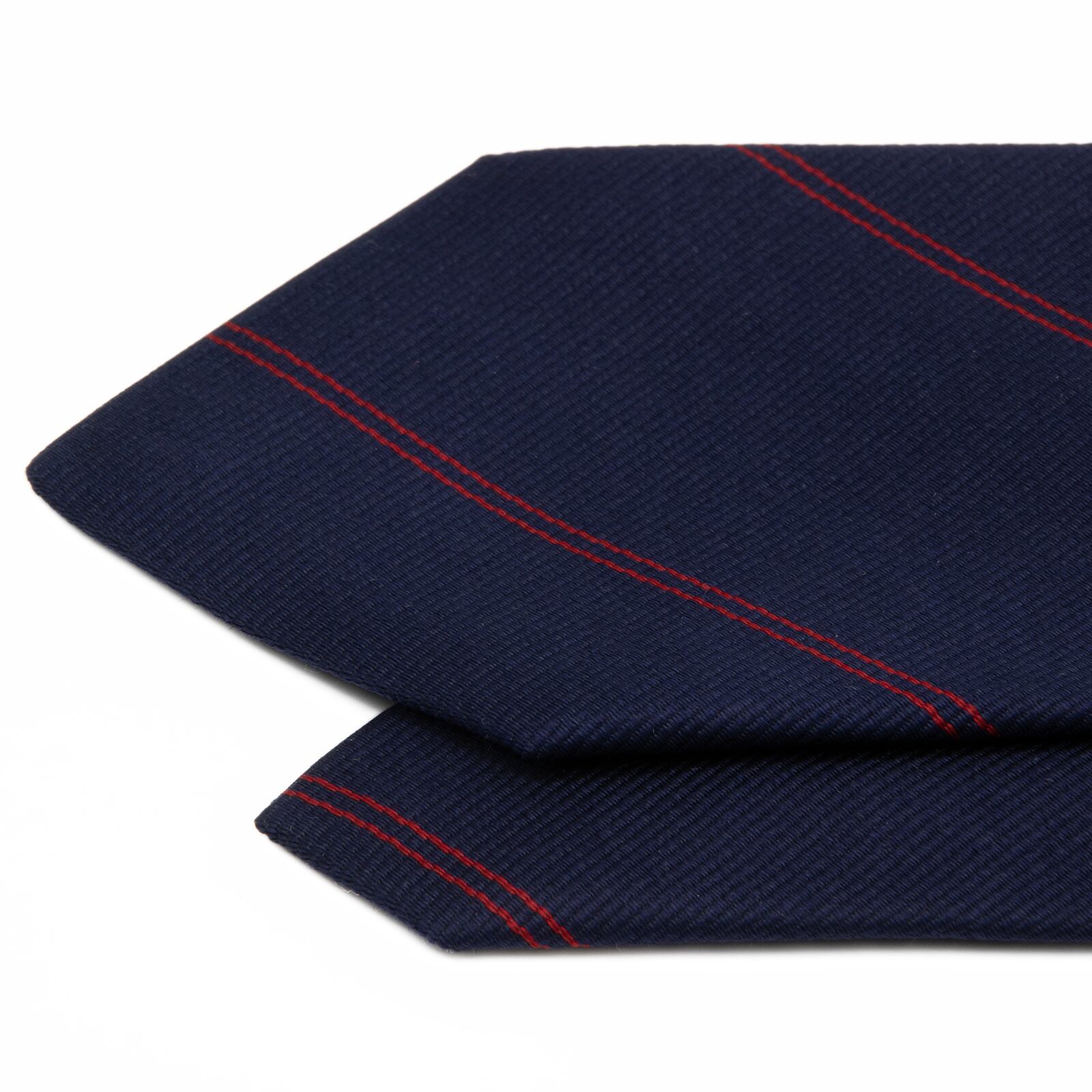 深みのあるネイビーブルーを基調に、レッドとシルバーのラインが走るデザインは、Vゾーンを凛々しく引き締めます。