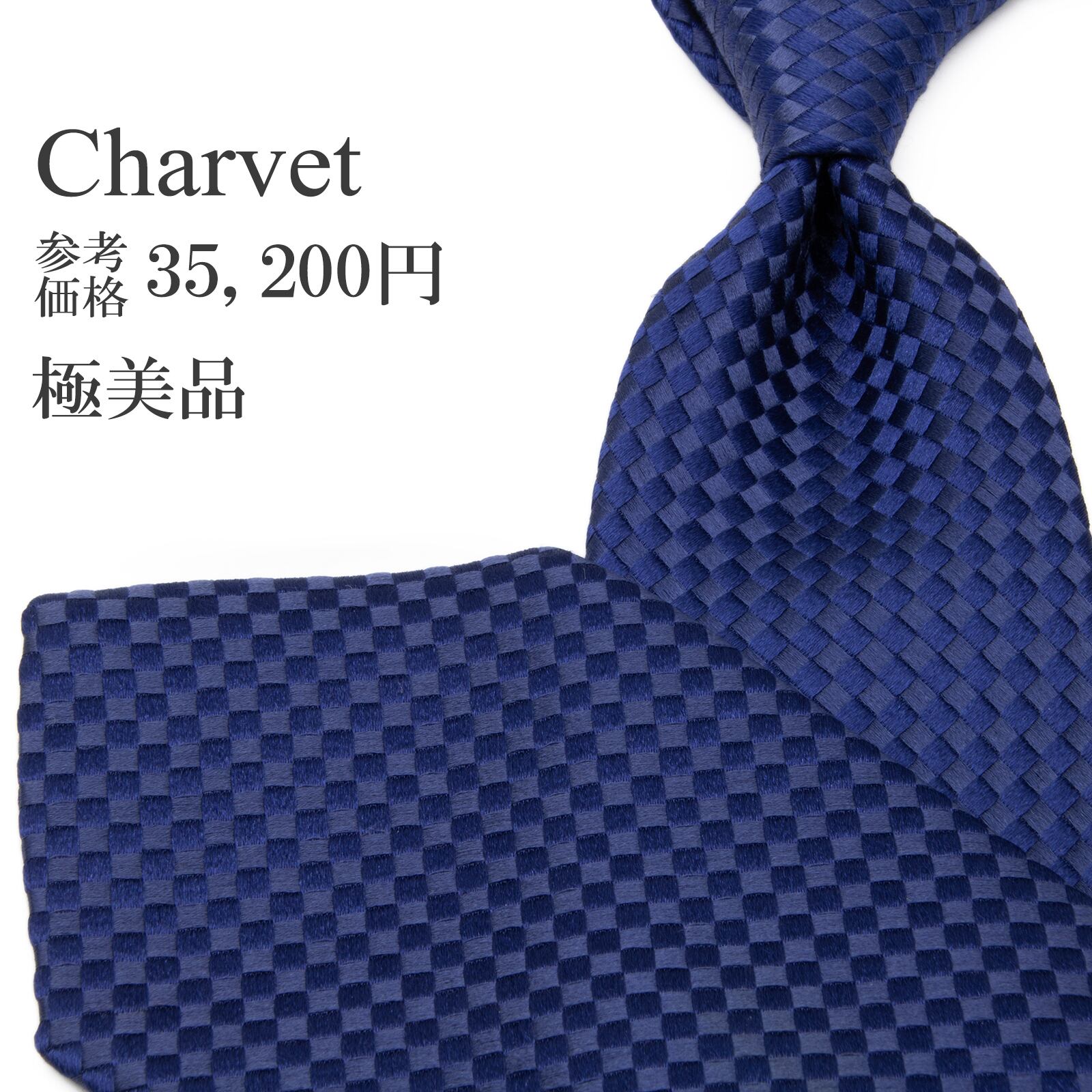 送料無料 シャルベ ネクタイ レギュラータイ ジャガード シルク 青 ブルー 光沢 四角 スクエア シンプル ハイブランド フランス 綺麗 P658