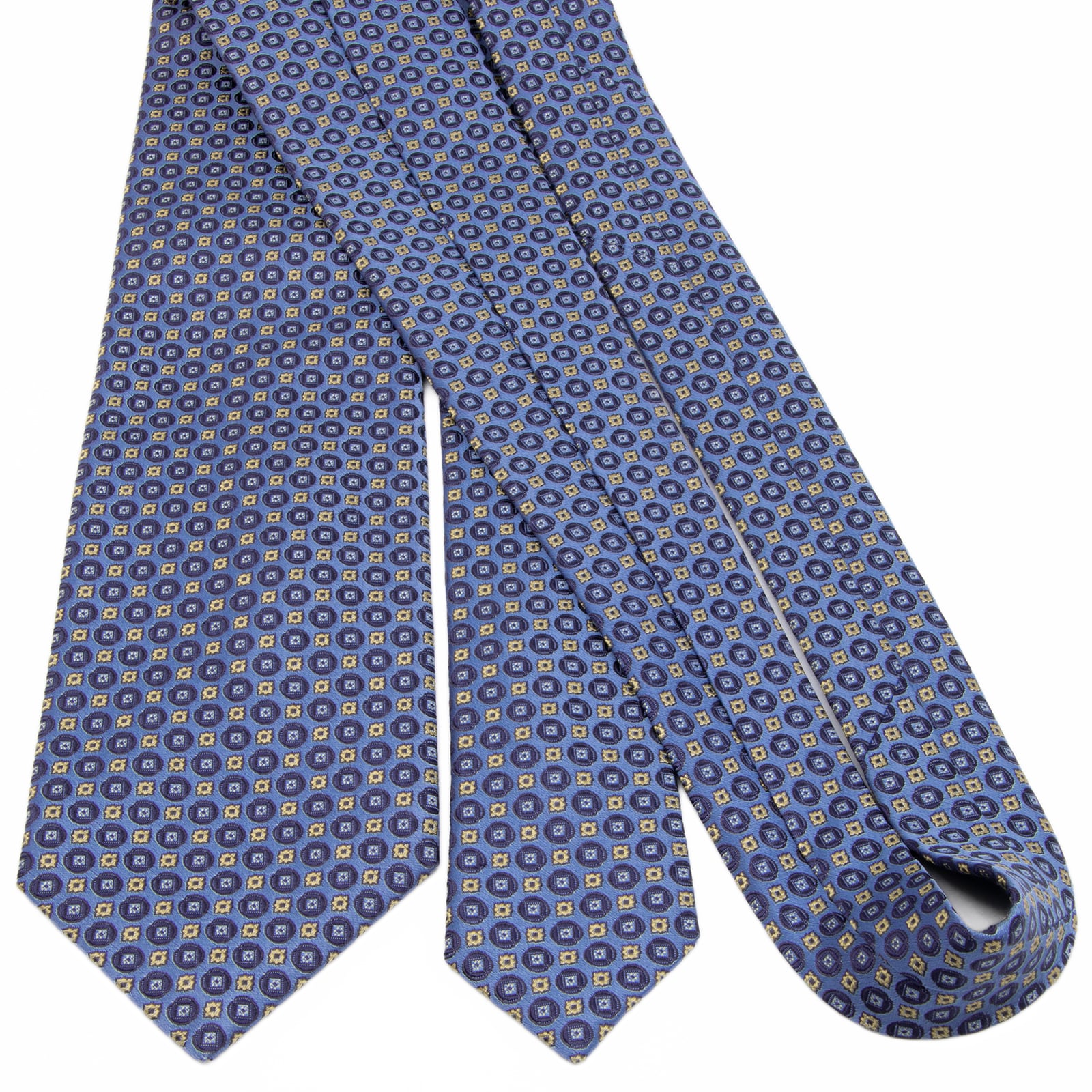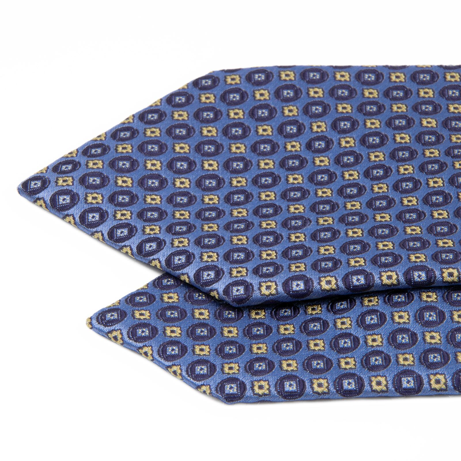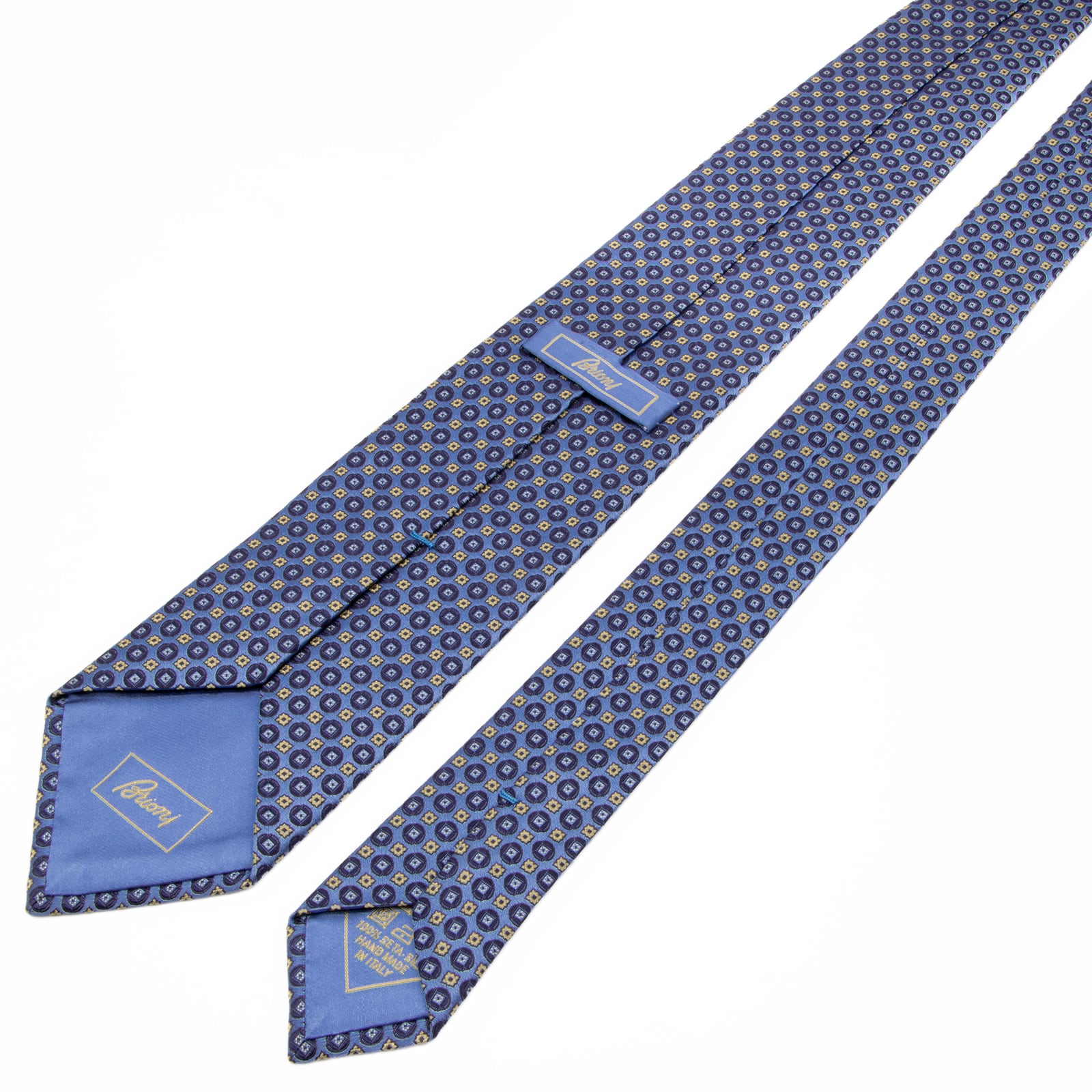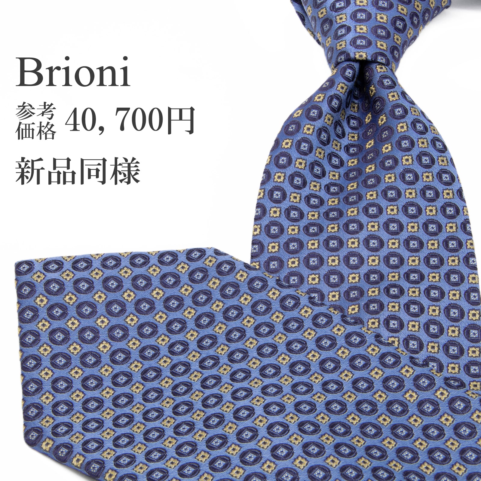 新品同様 送料無料 ブリオーニ ネクタイ レギュラータイ ジャガード 水色 ネイビーブルー ゴールド 光沢 肉厚 円 四角 ハイブランド P714