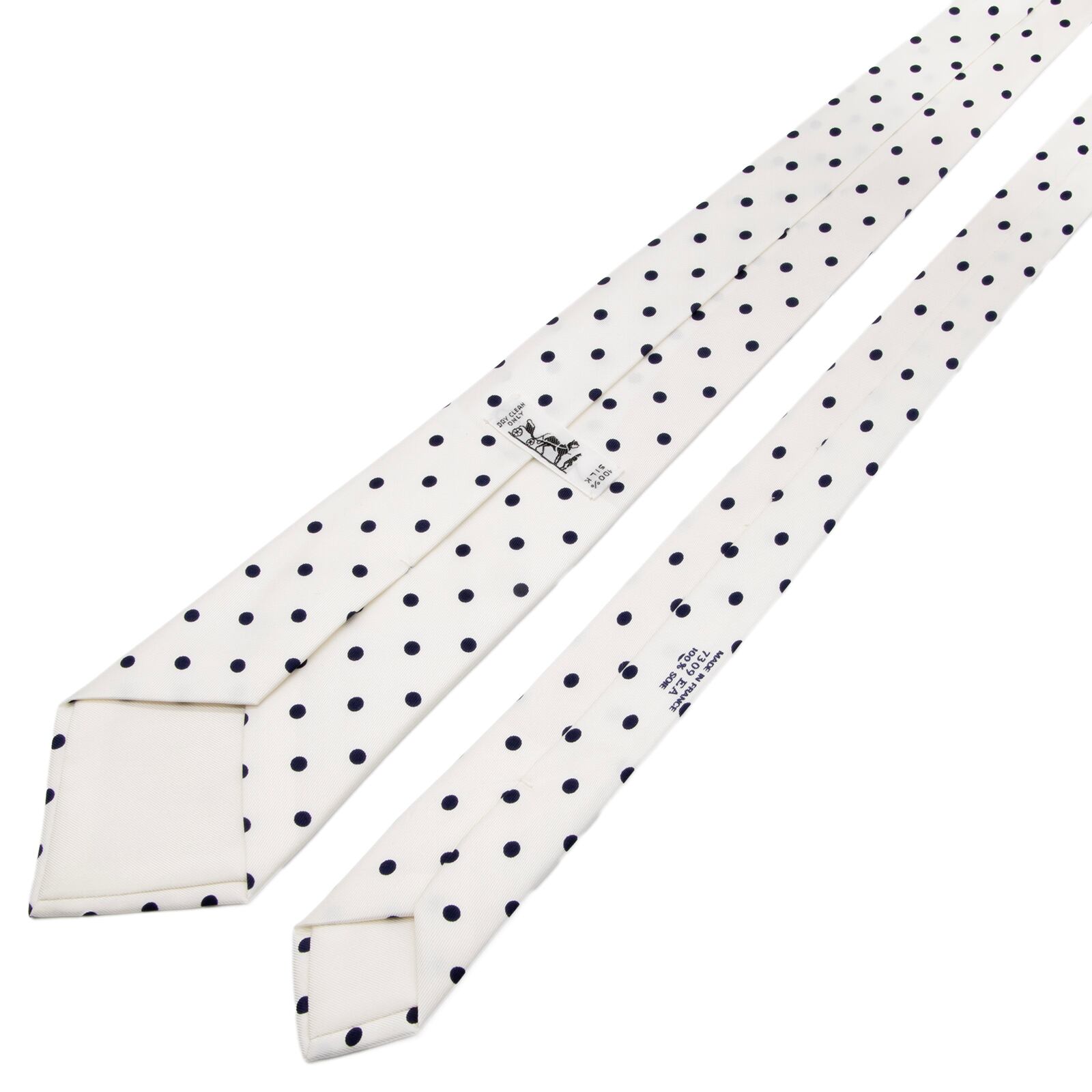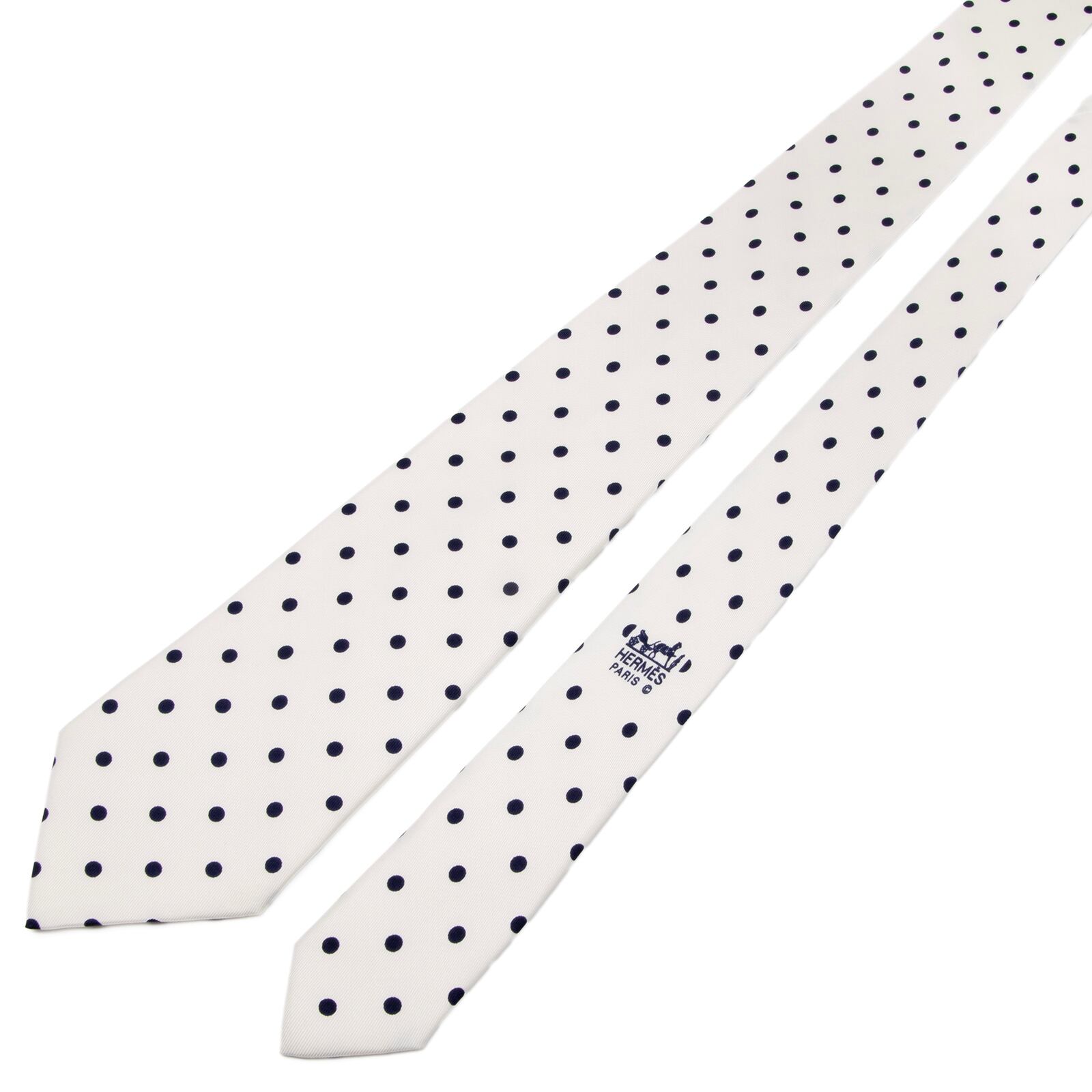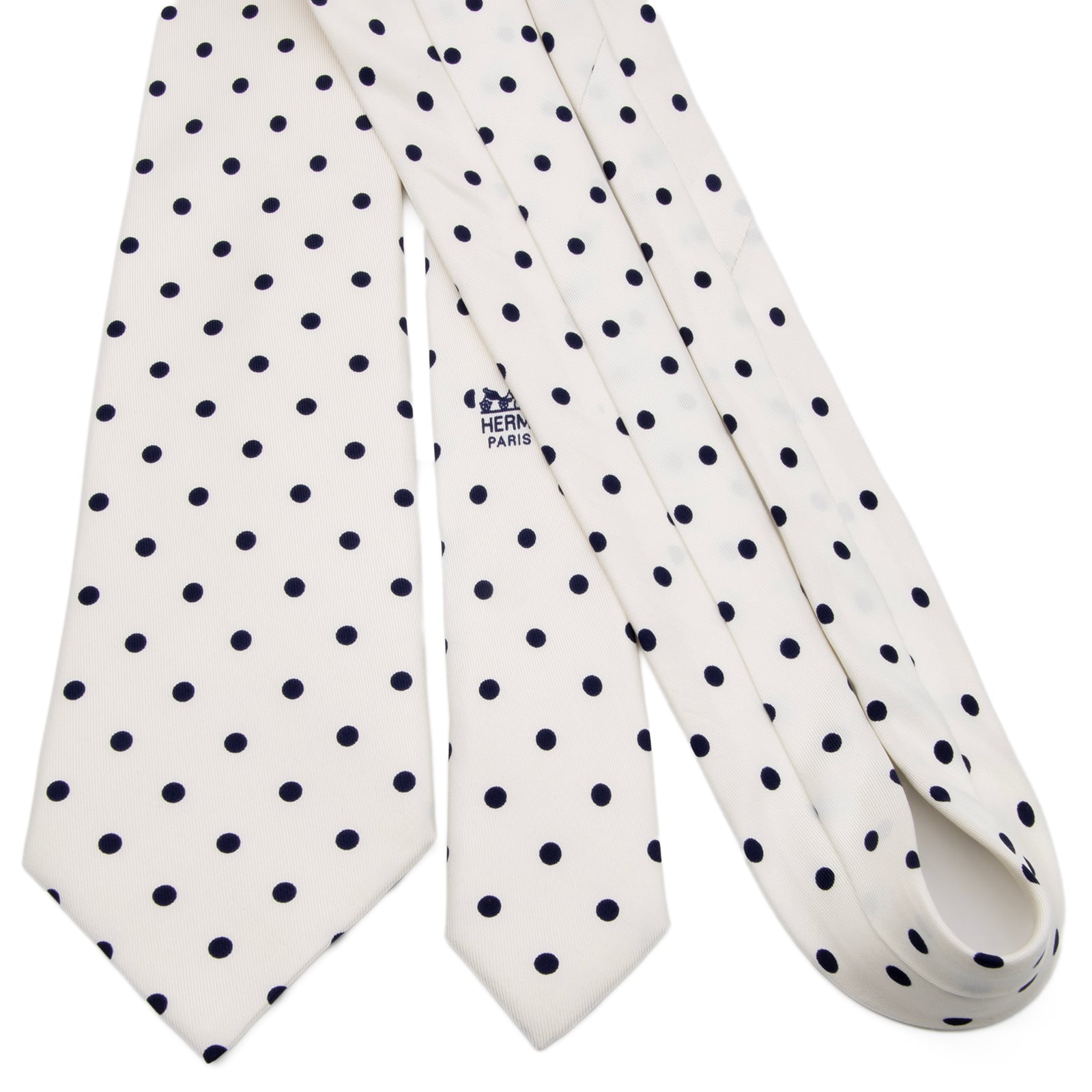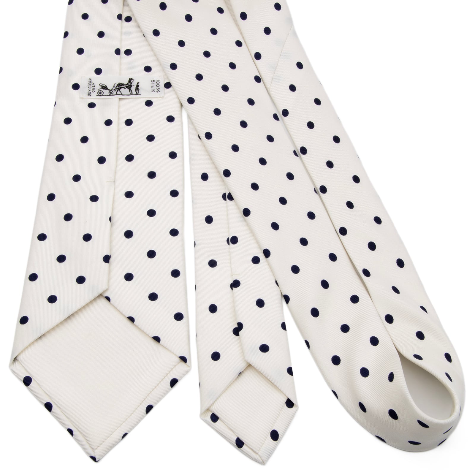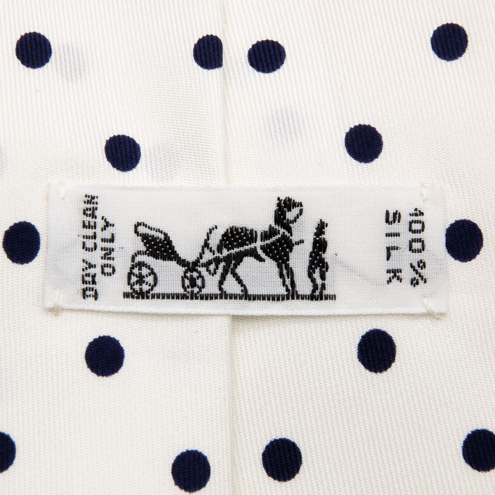 送料無料 エルメス ネクタイ レギュラータイ シルク 白 ホワイト ネイビーブルー ドット シンプル ハイブランド 珍しい フランス 綺麗 P791