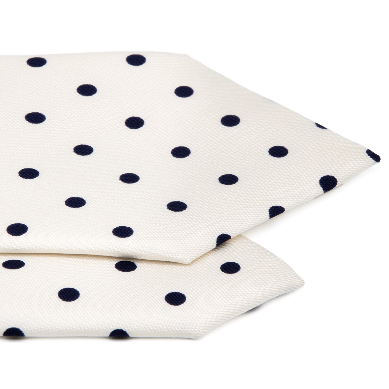 ホワイト系のベースに、ネイビーブルーのドットが規則正しく並ぶデザインは、シンプルながらも洗練された印象を与えます。