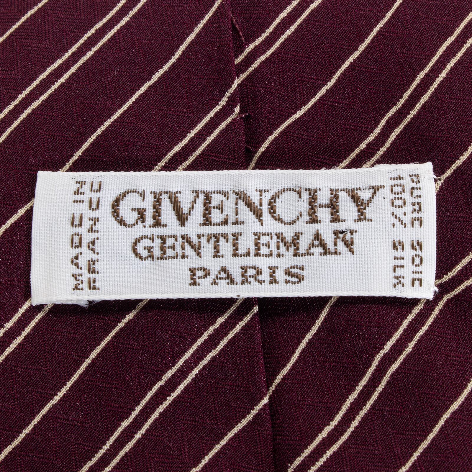 新品同様 送料無料 ジバンシー ネクタイ レギュラータイ シルク 赤紫色 バーガンディー ベージュ ストライプ ロゴ ハイブランド 綺麗 S583