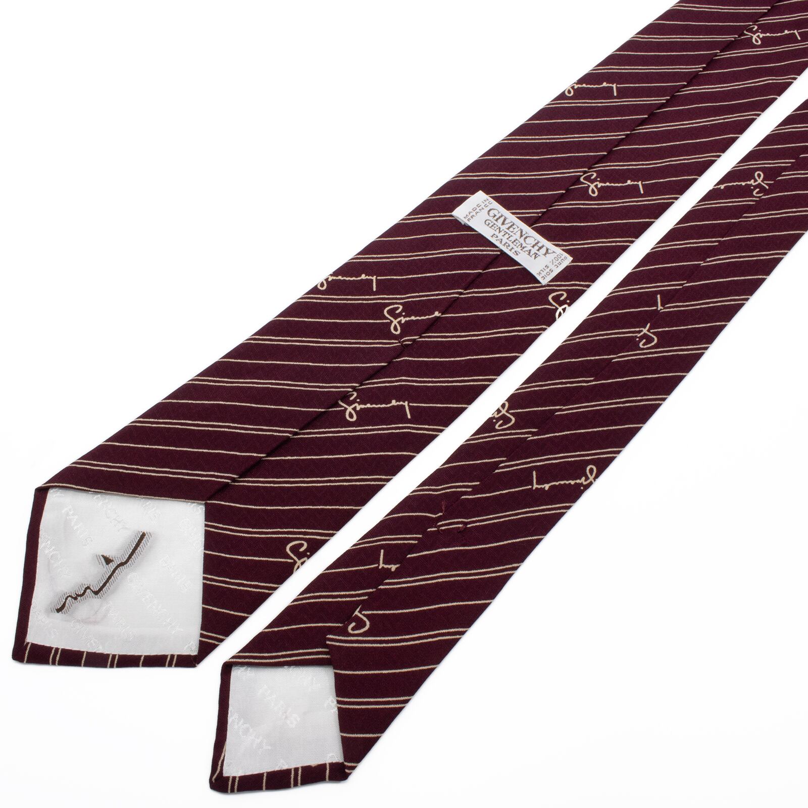 ライン上に流れるように描かれた「Givenchy Gentleman」の筆記体ロゴが、ブランドのステータスを優雅に主張いたします。