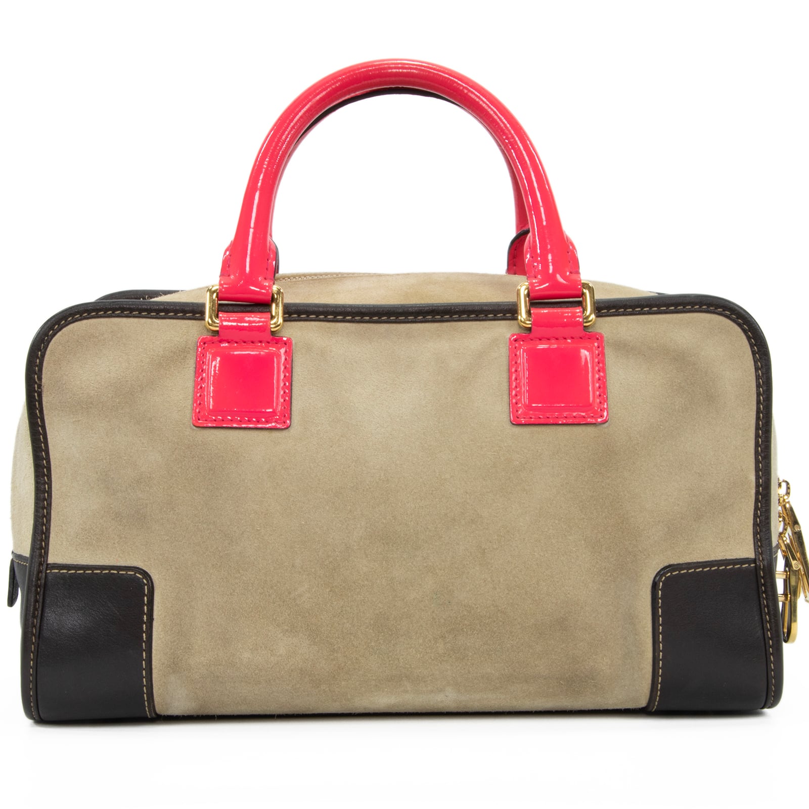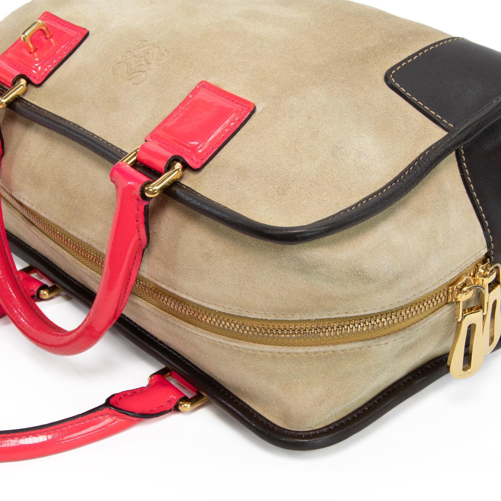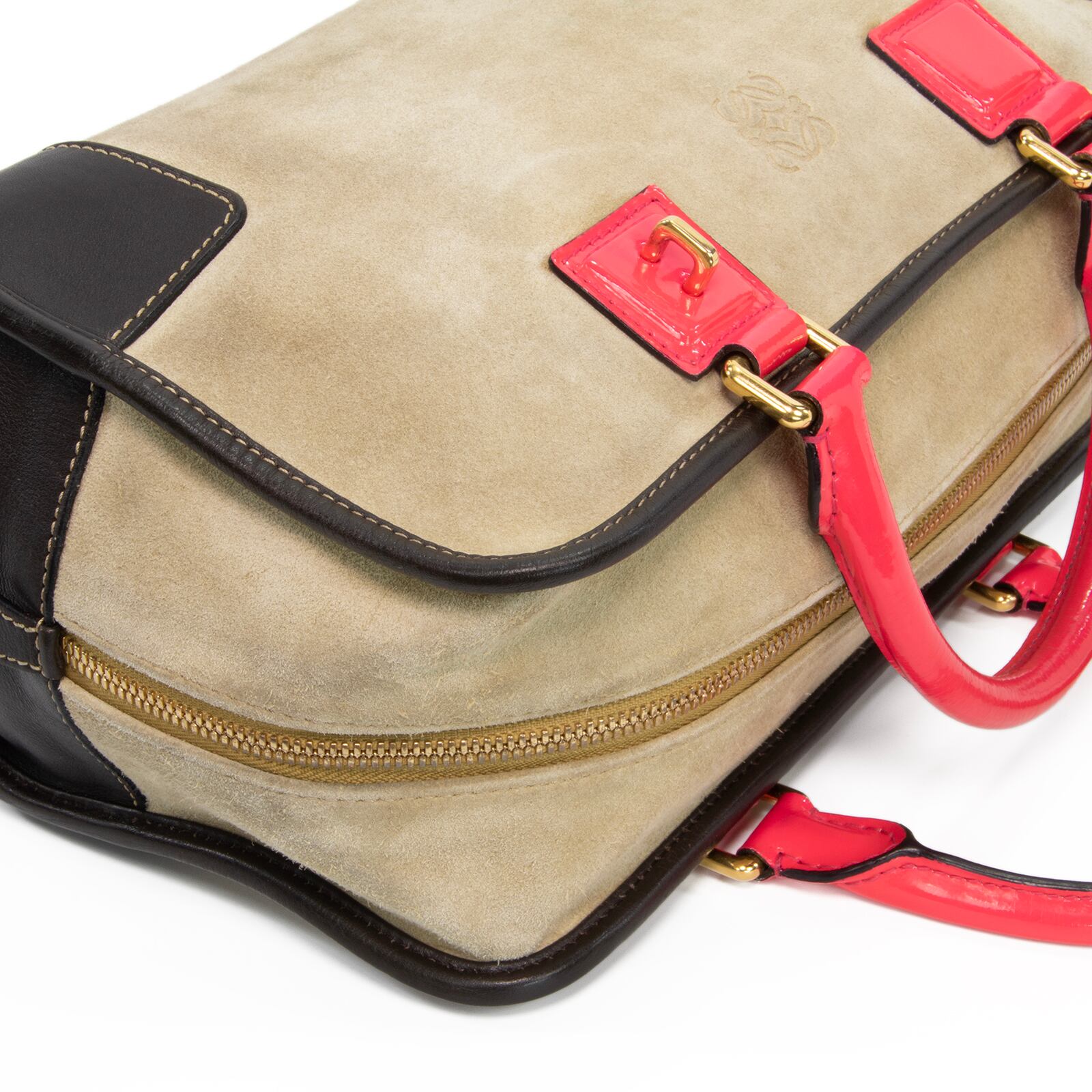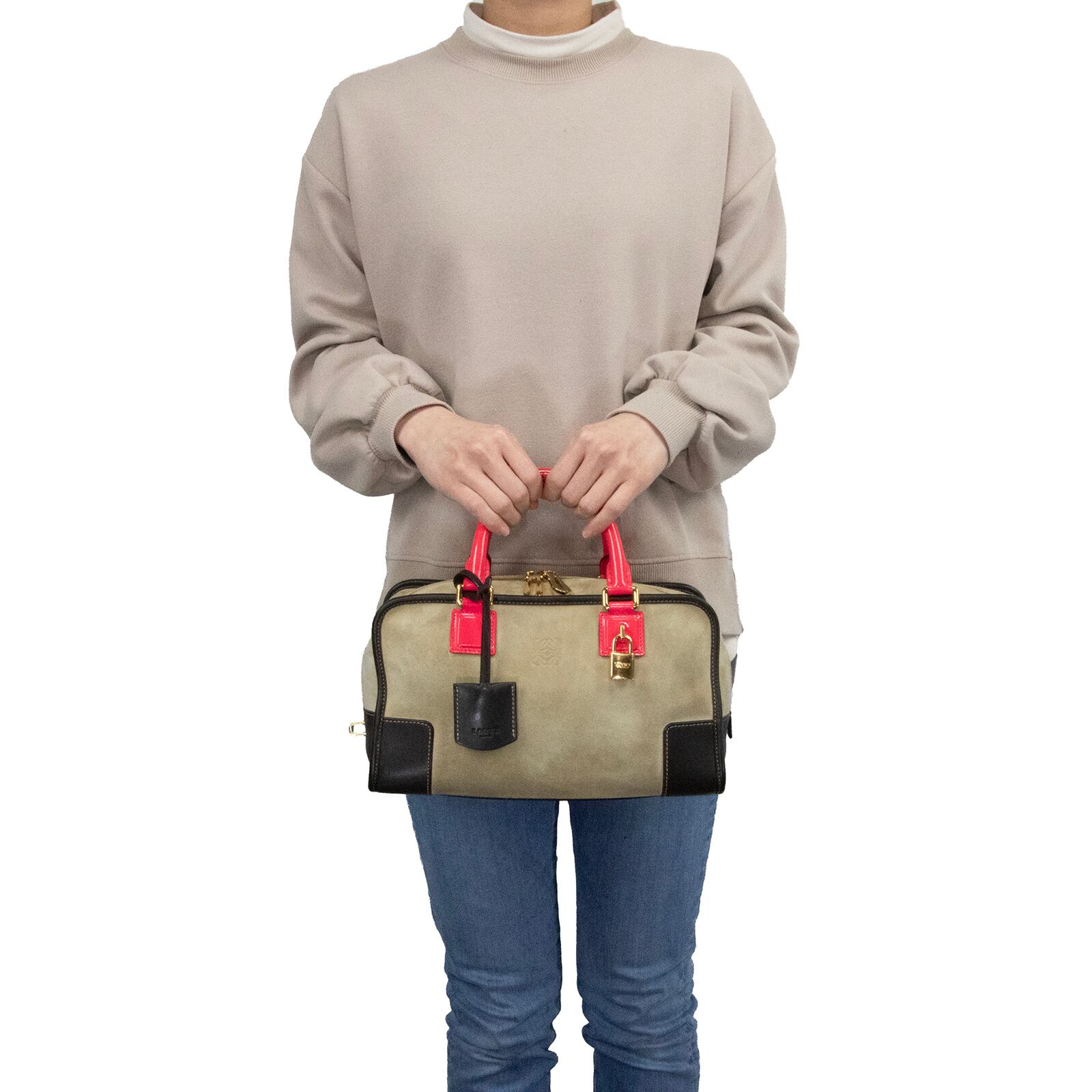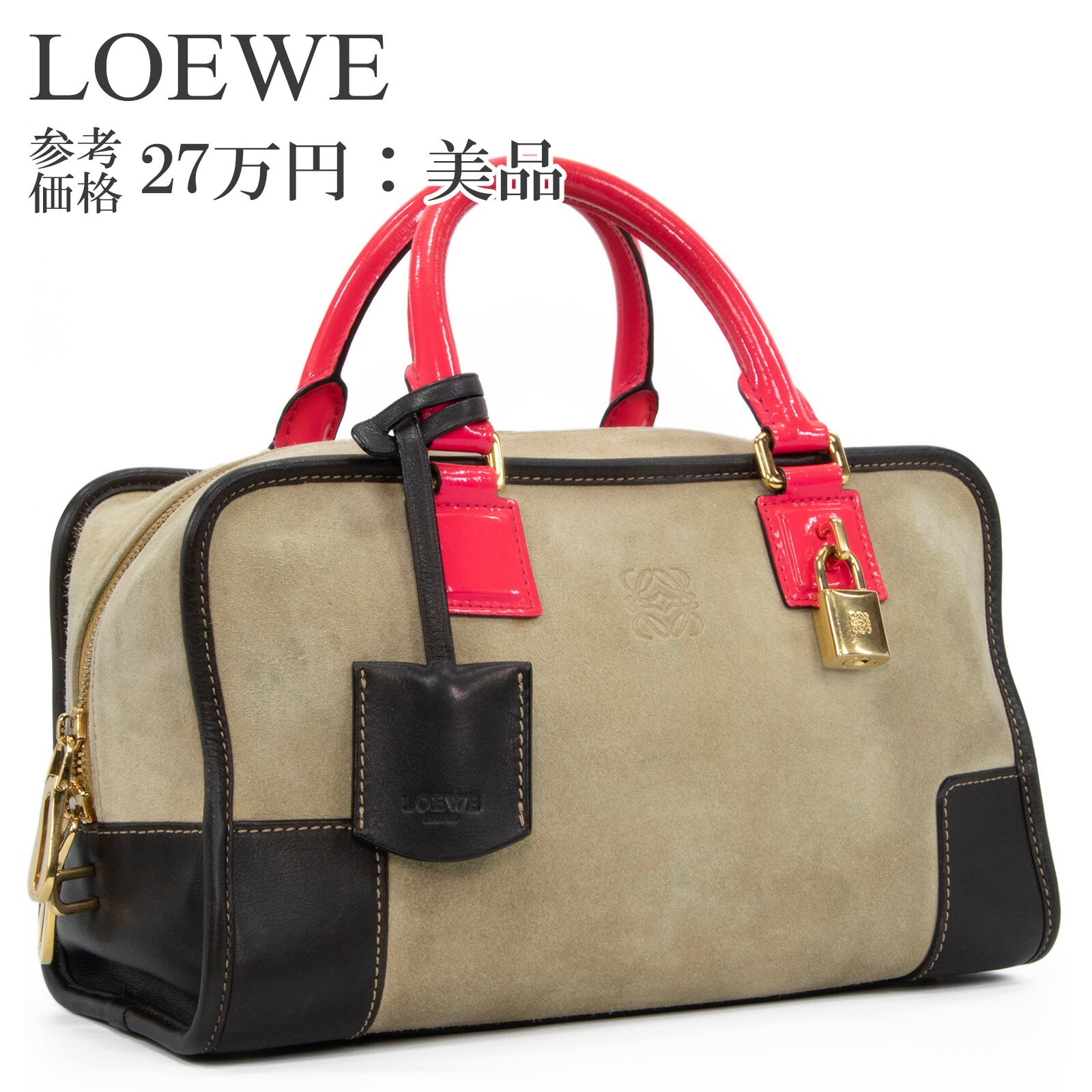 本物 送料無料 ロエベ ハンドバッグ レディース 2012年限定モデル アマソナ28 オロ ベージュ 蛍光ピンク 珍しい マーク 革 鞄 バック L222