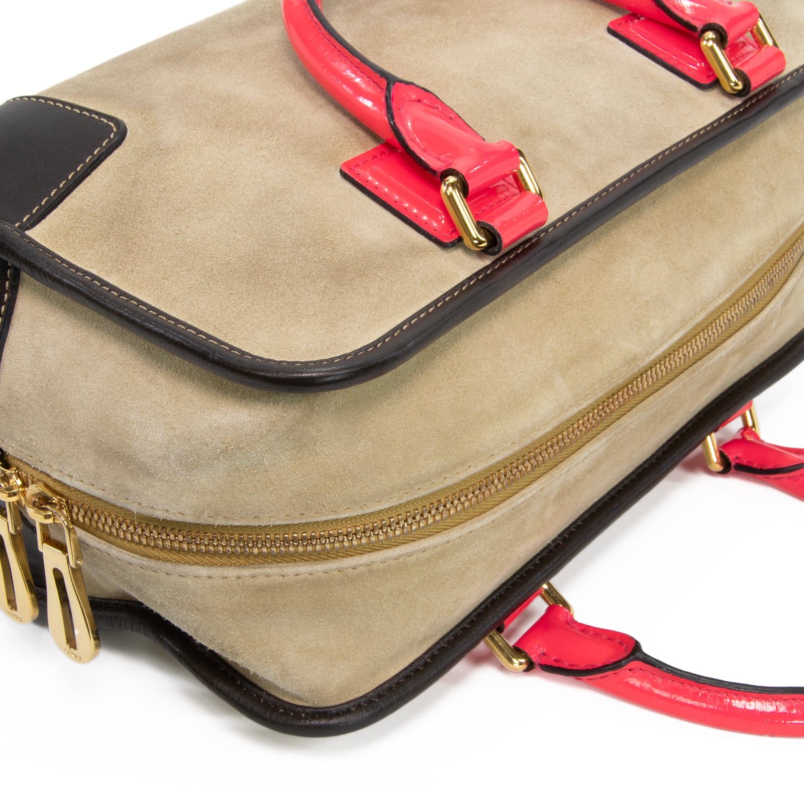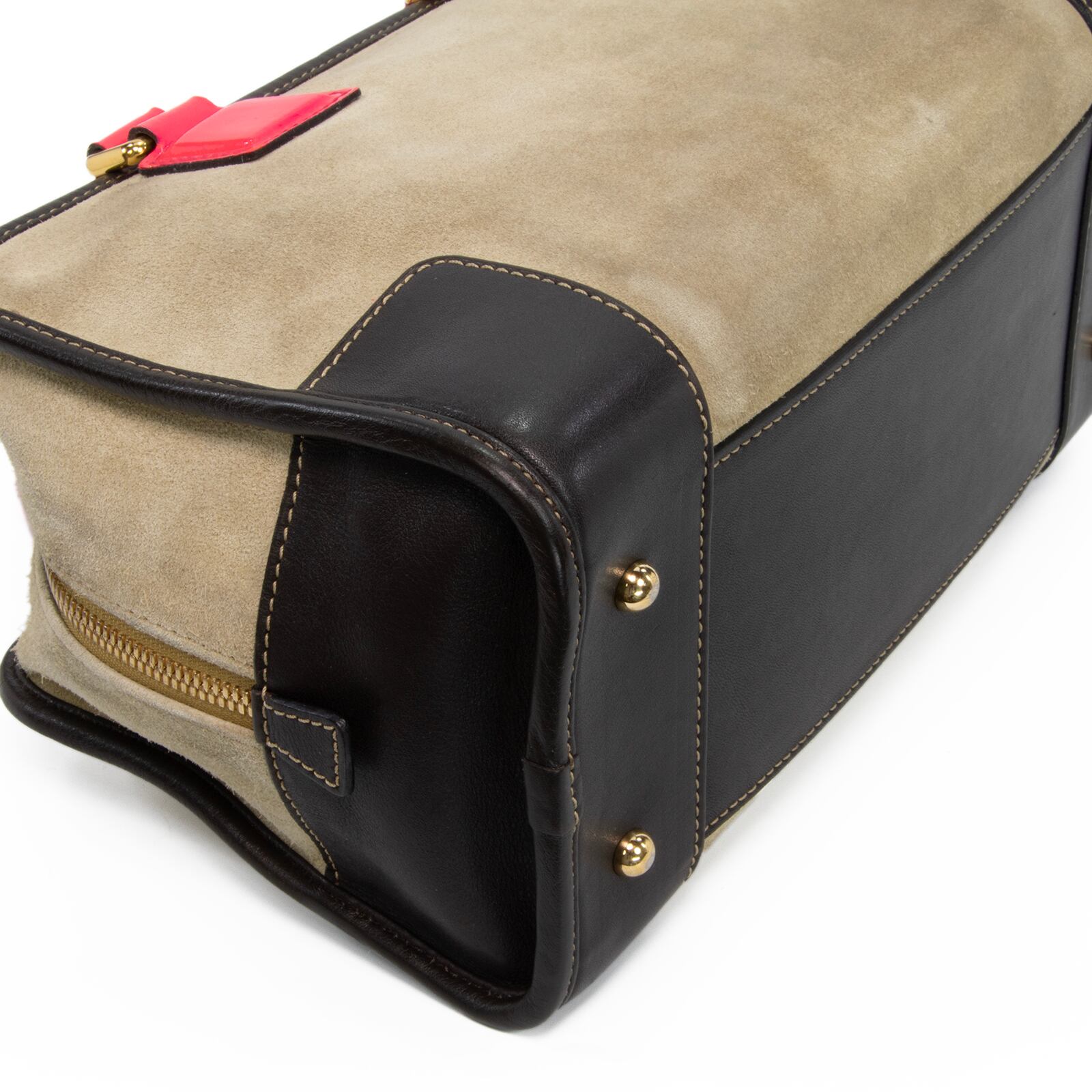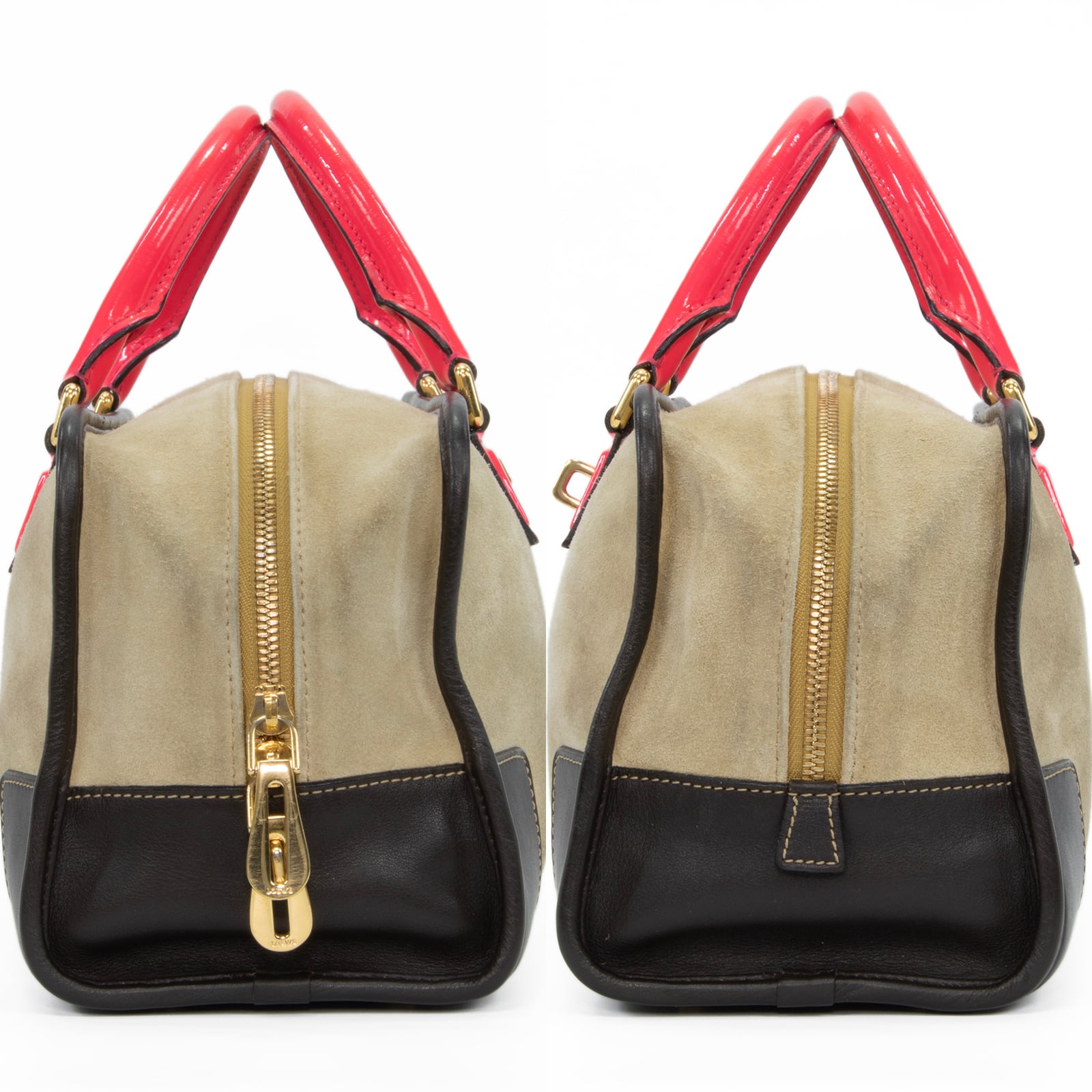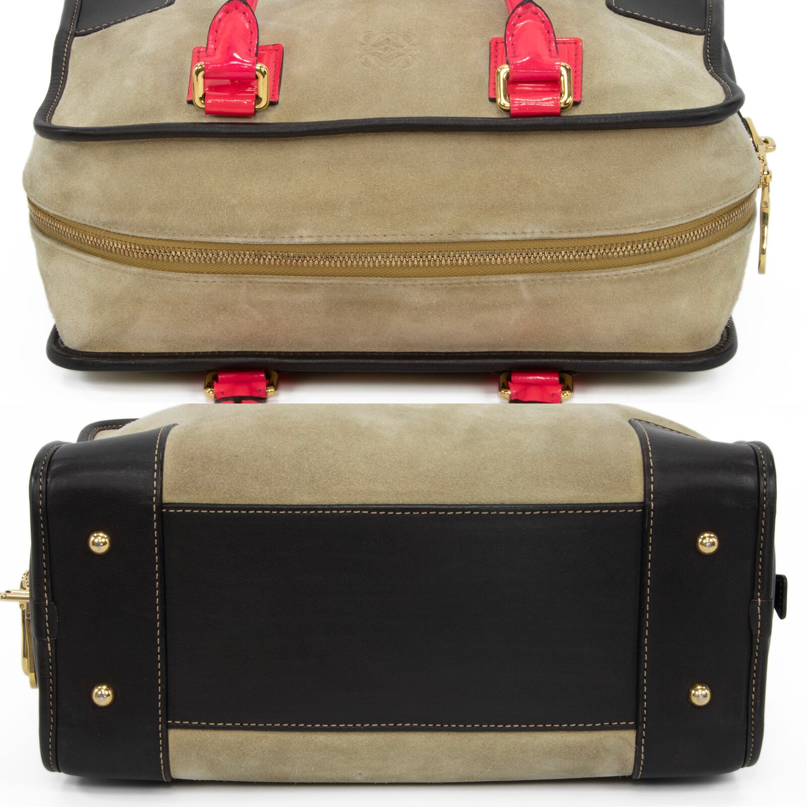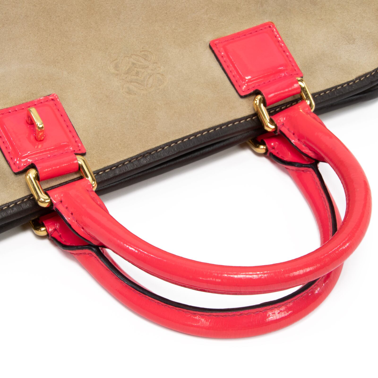 本物 送料無料 ロエベ ハンドバッグ レディース 2012年限定モデル アマソナ28 オロ ベージュ 蛍光ピンク 珍しい マーク 革 鞄 バック L222