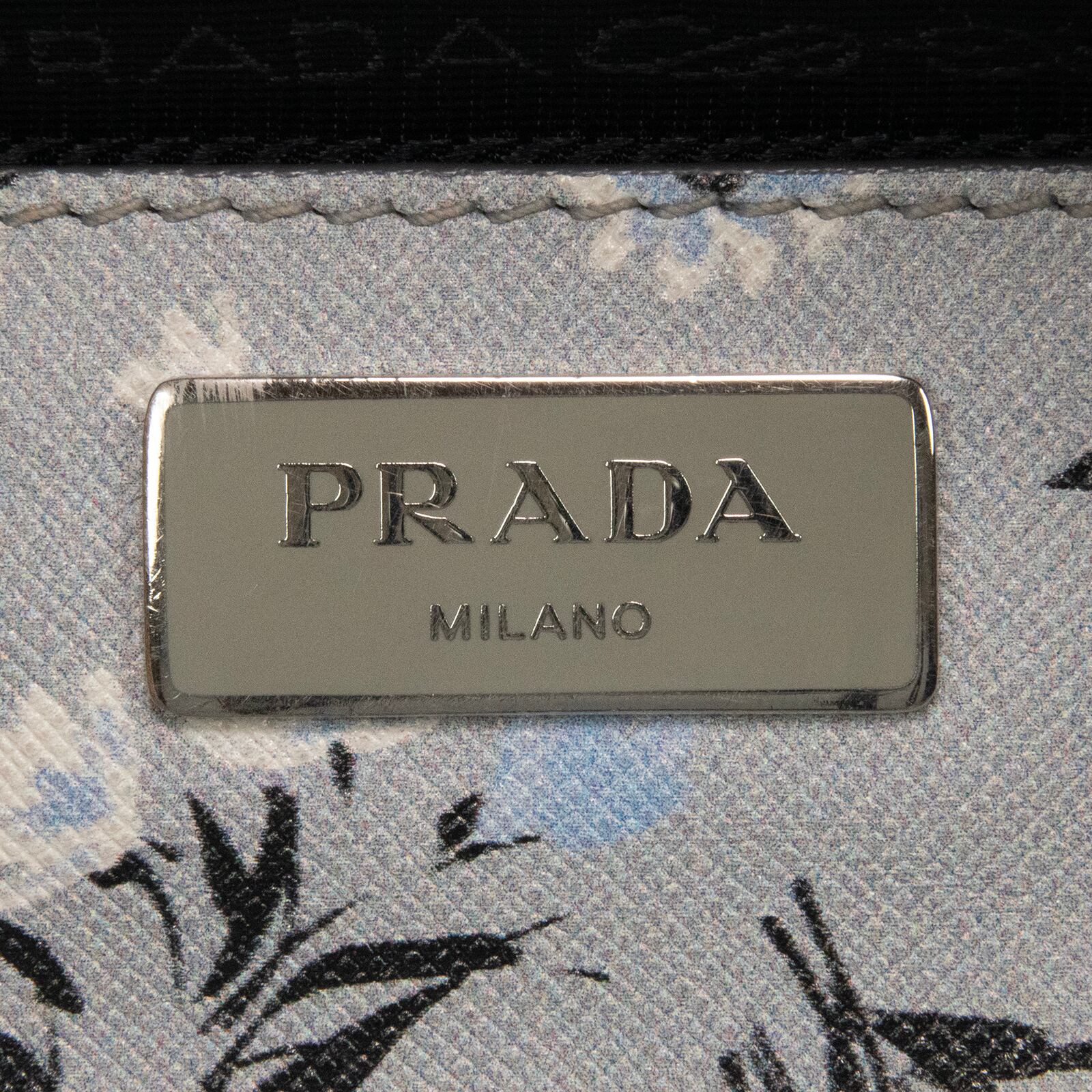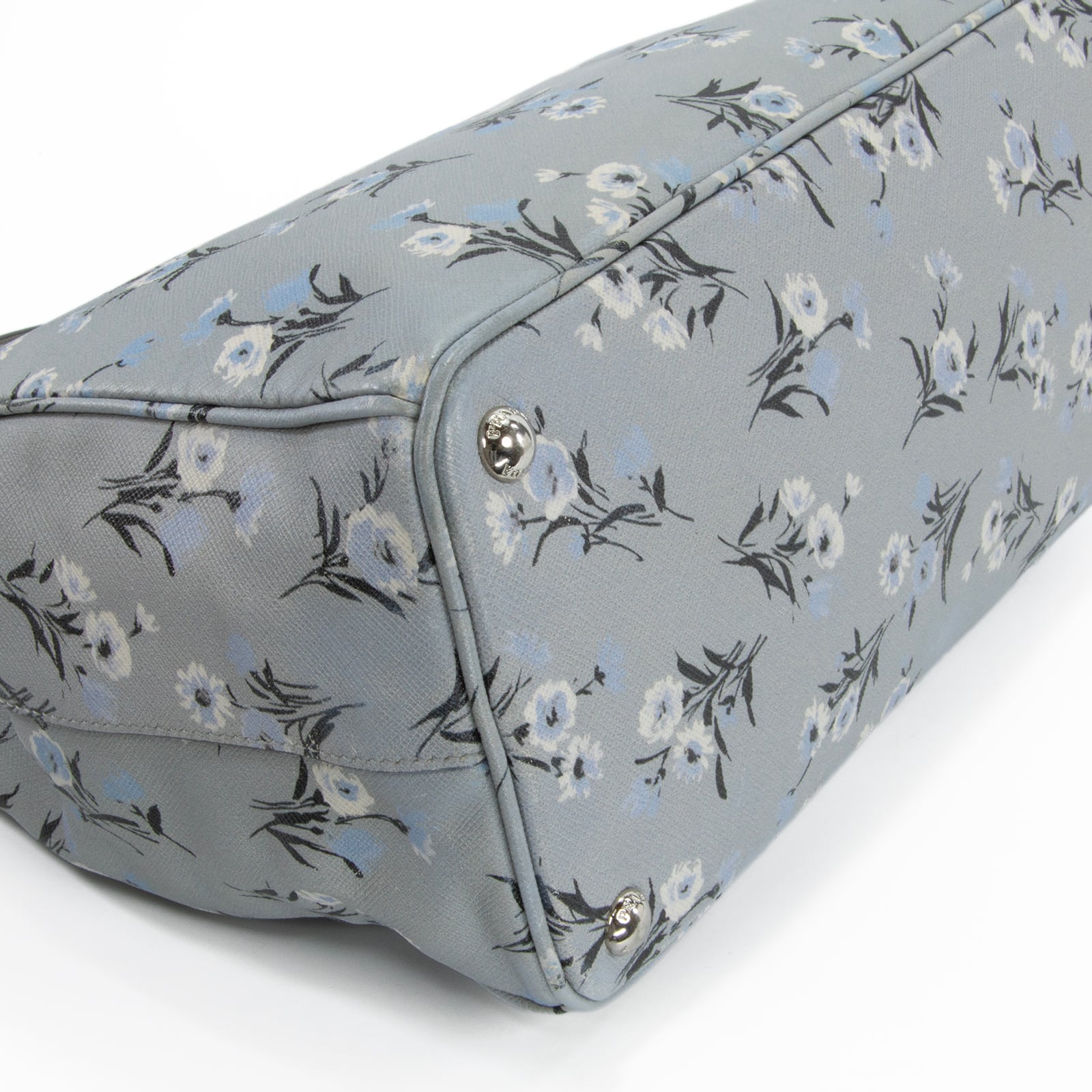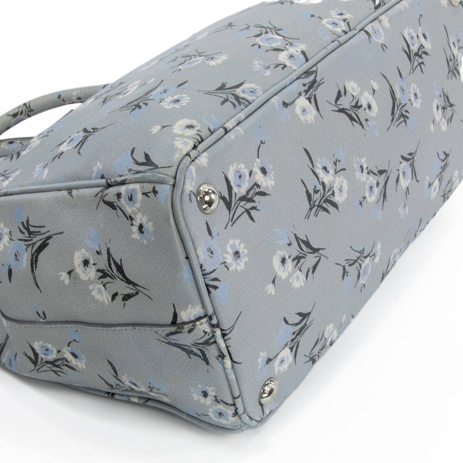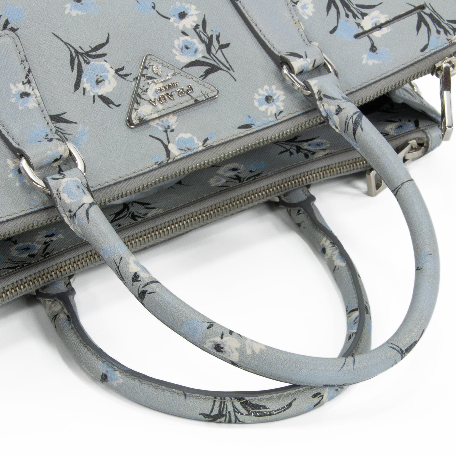 本物 送料無料 プラダ 2WAYショルダーバッグ レディース ガレリア グレー 青 白 珍しい 肩掛け 斜め掛け 花 ロゴ 革 レザー 鞄 バック E455