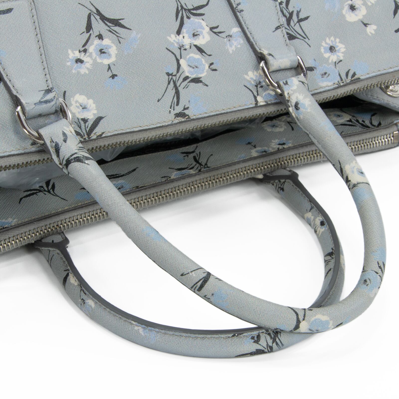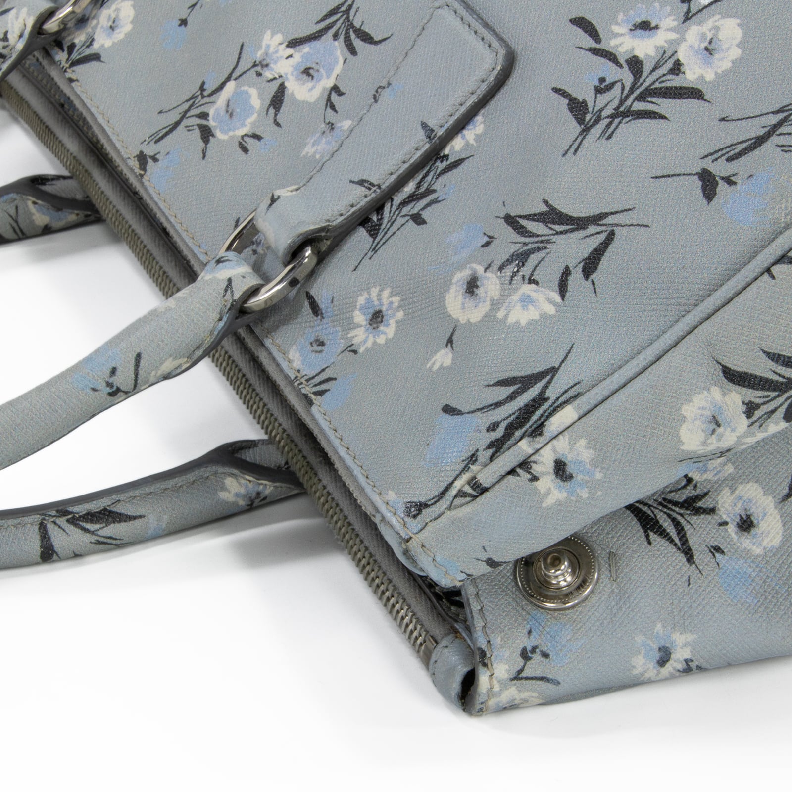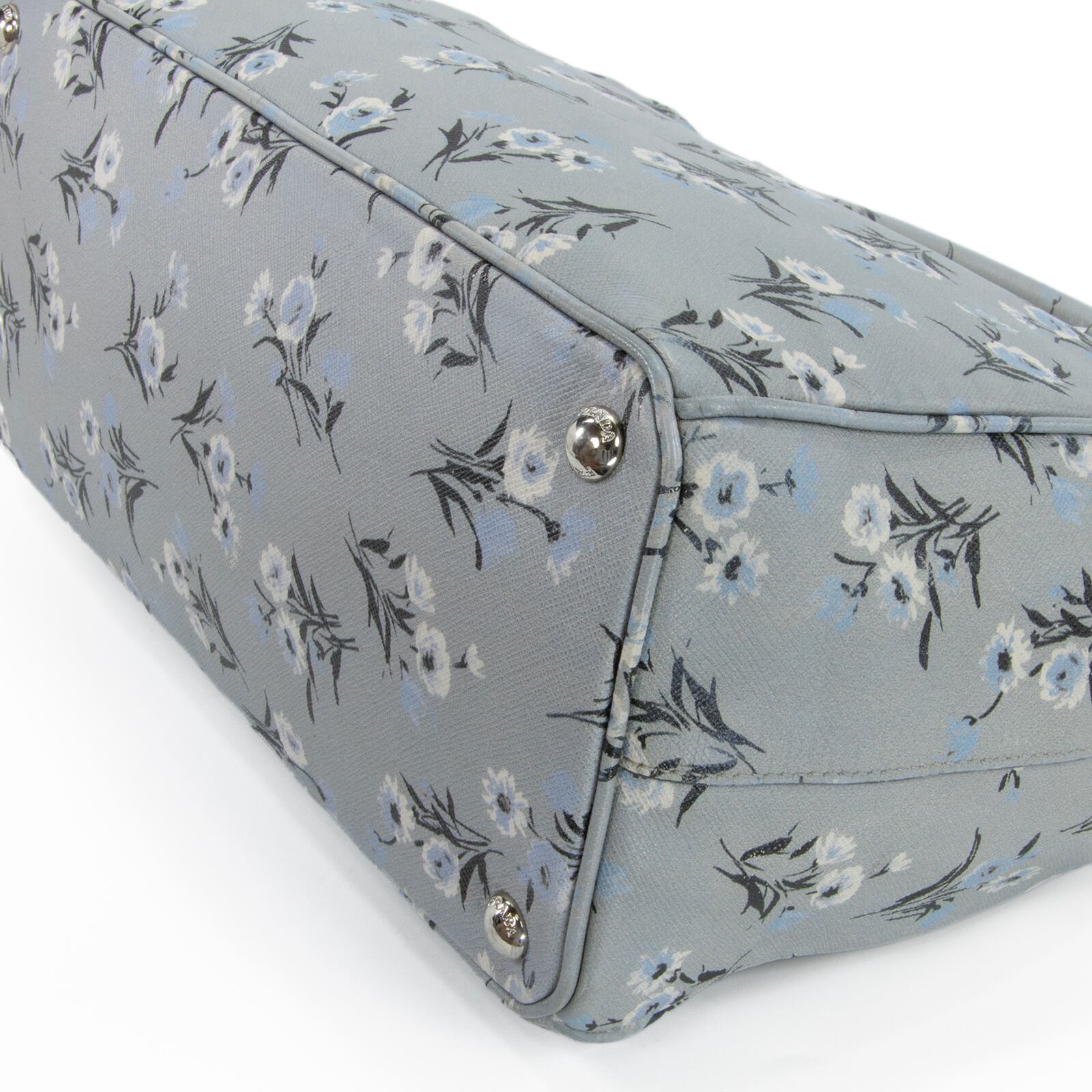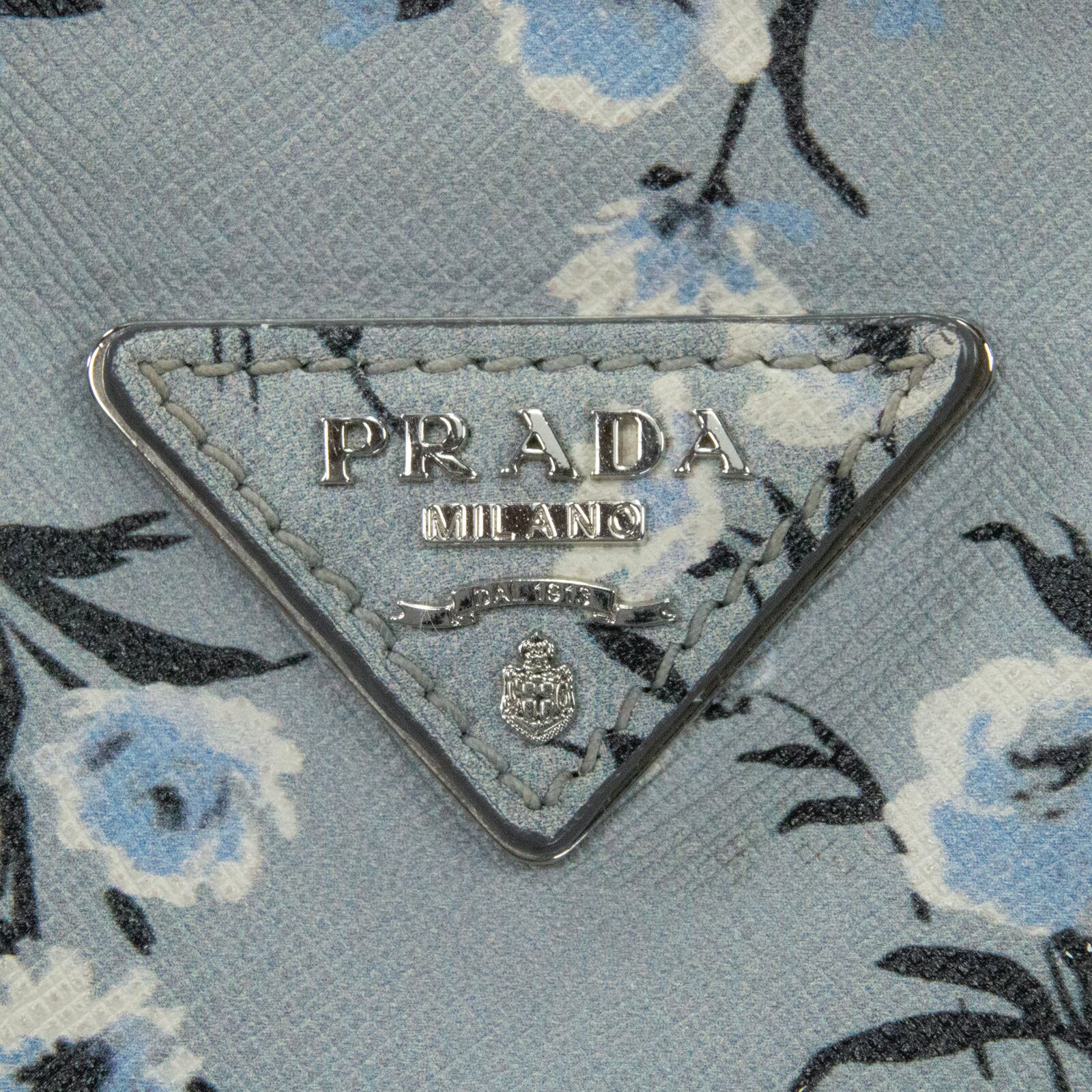本物 送料無料 プラダ 2WAYショルダーバッグ レディース ガレリア グレー 青 白 珍しい 肩掛け 斜め掛け 花 ロゴ 革 レザー 鞄 バック E455