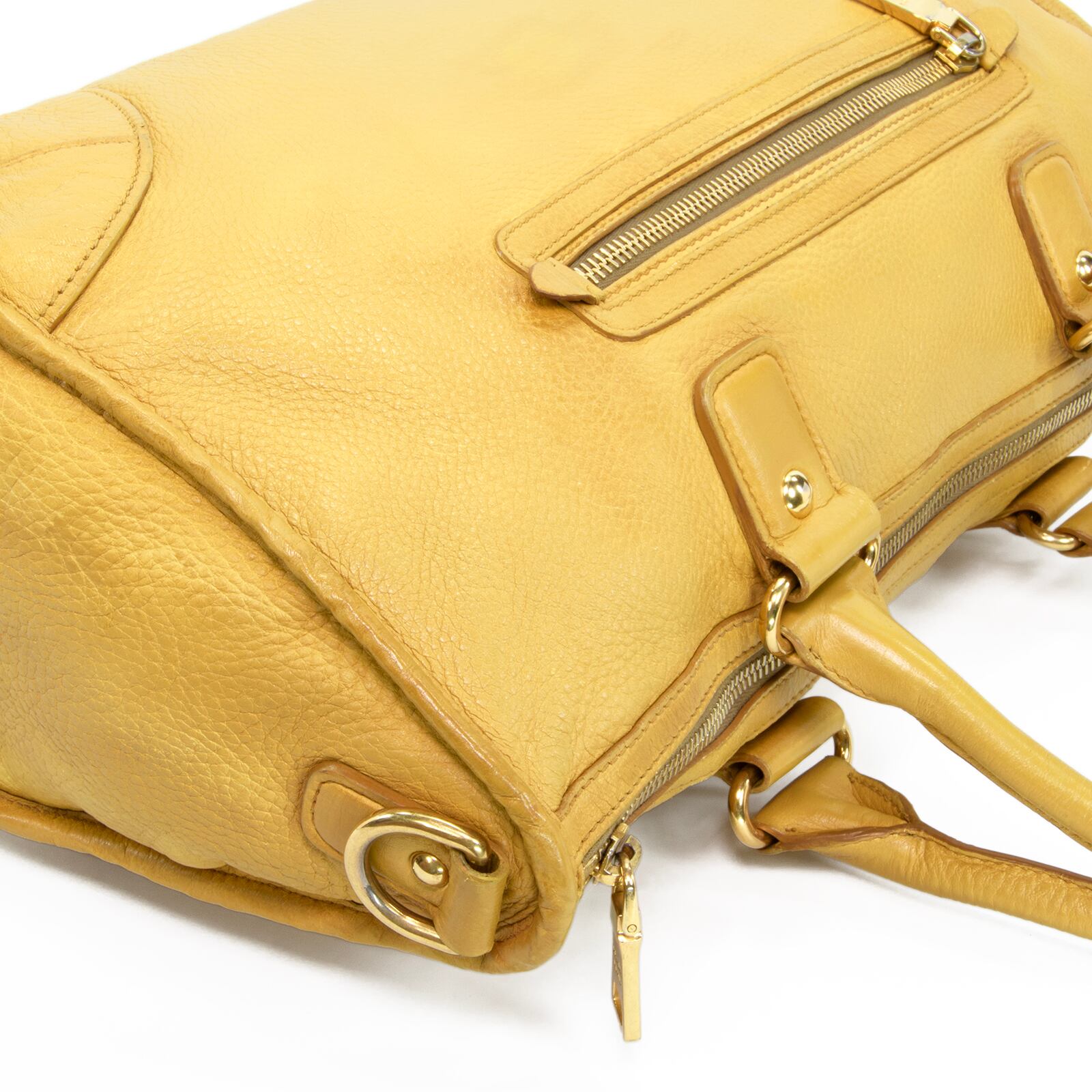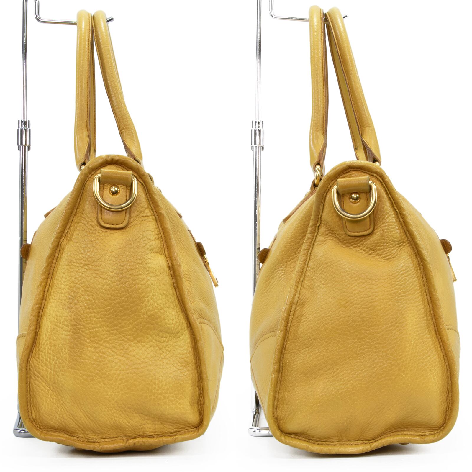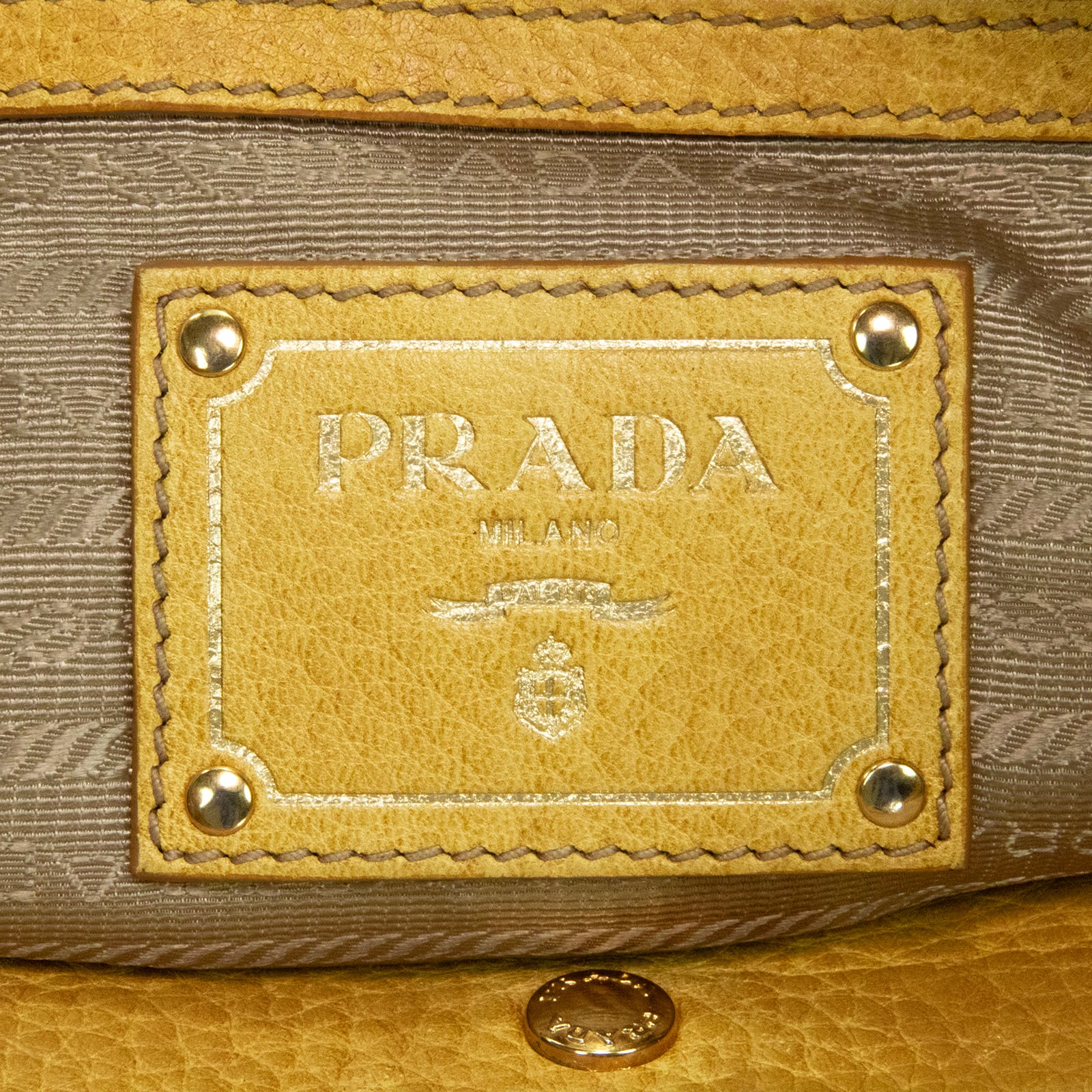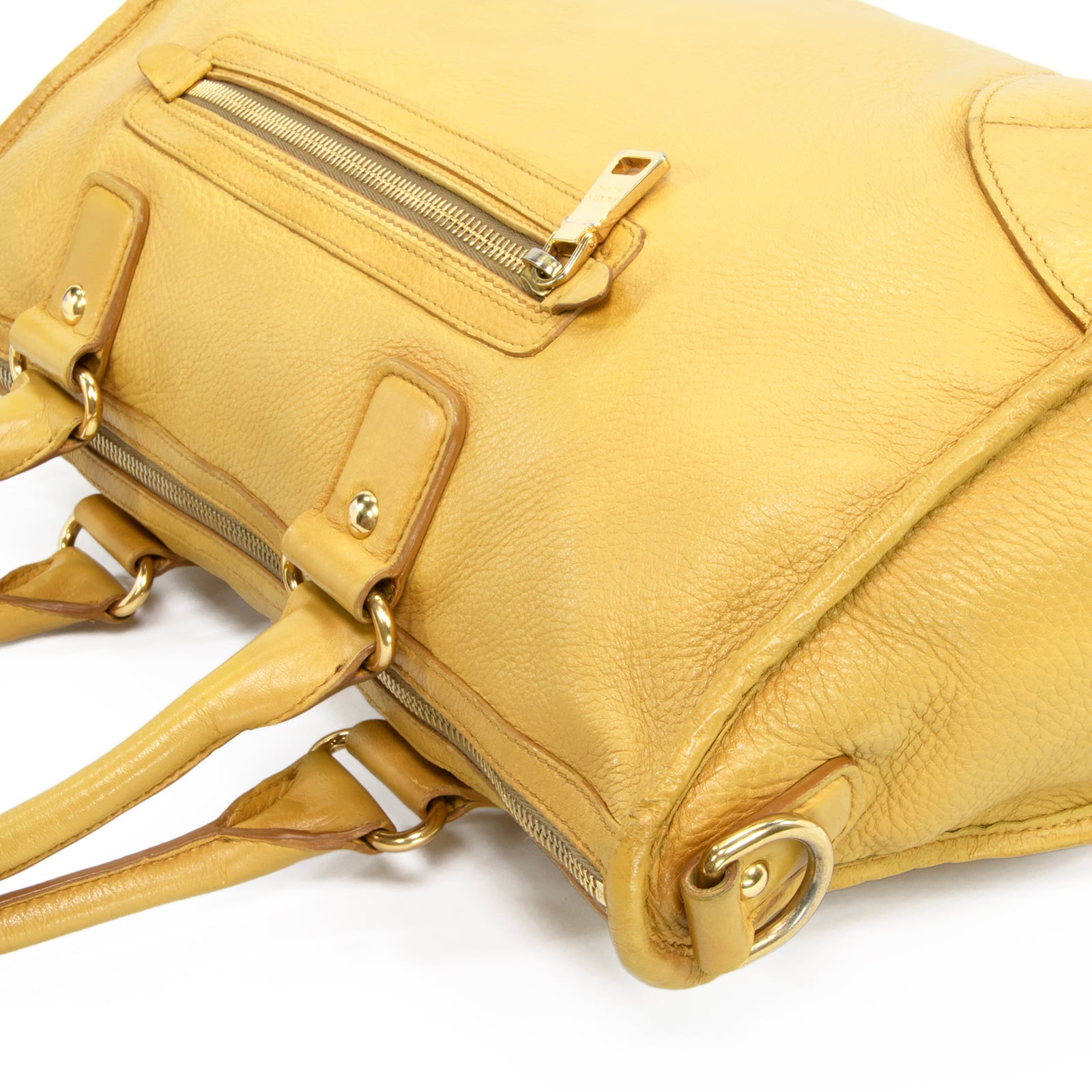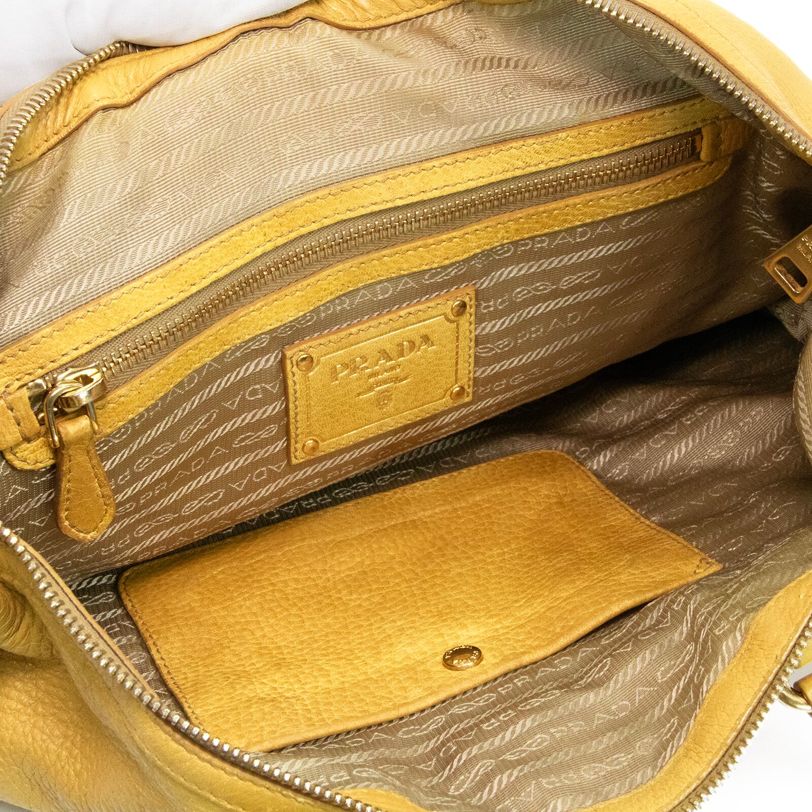 本物 送料無料 プラダ 2WAYショルダーバッグ ハンドバッグ メンズ レディース 黄色 珍しい 肩掛け ロゴ 本革 レザー 綺麗 鞄 バック E458