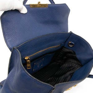本物 送料無料 プラダ 2WAYショルダーバッグ ハンドバッグ レディース 青 ブルー 珍しい 斜め掛け ロゴ マーク 本革 レザー 鞄 バック E461