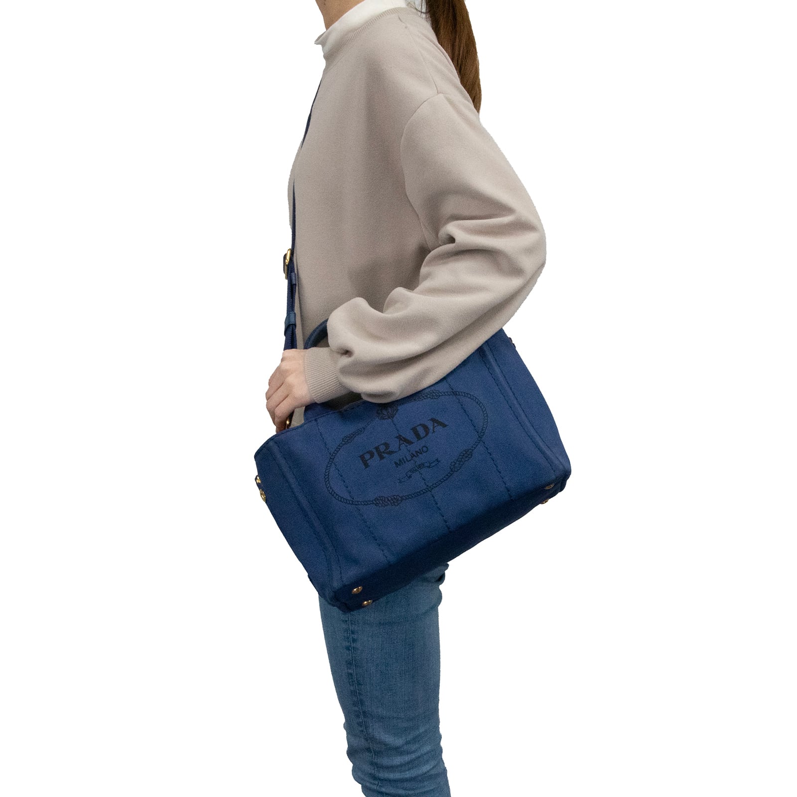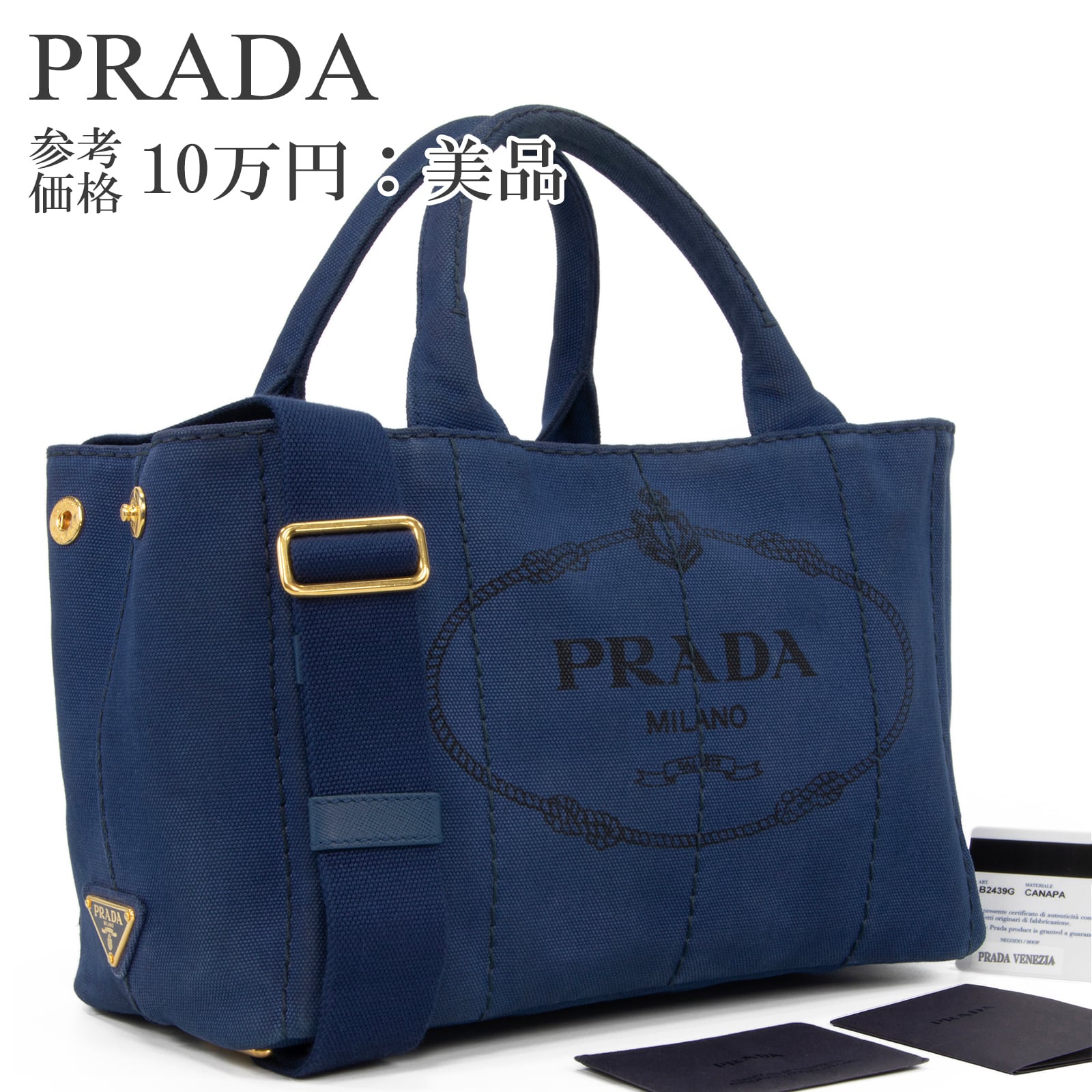 本物 送料無料 プラダ 2WAYショルダーバッグ ハンドバッグ メンズ レディース カナパ SS ネイビーブルー 斜め掛け ロゴ 鞄 バック E462