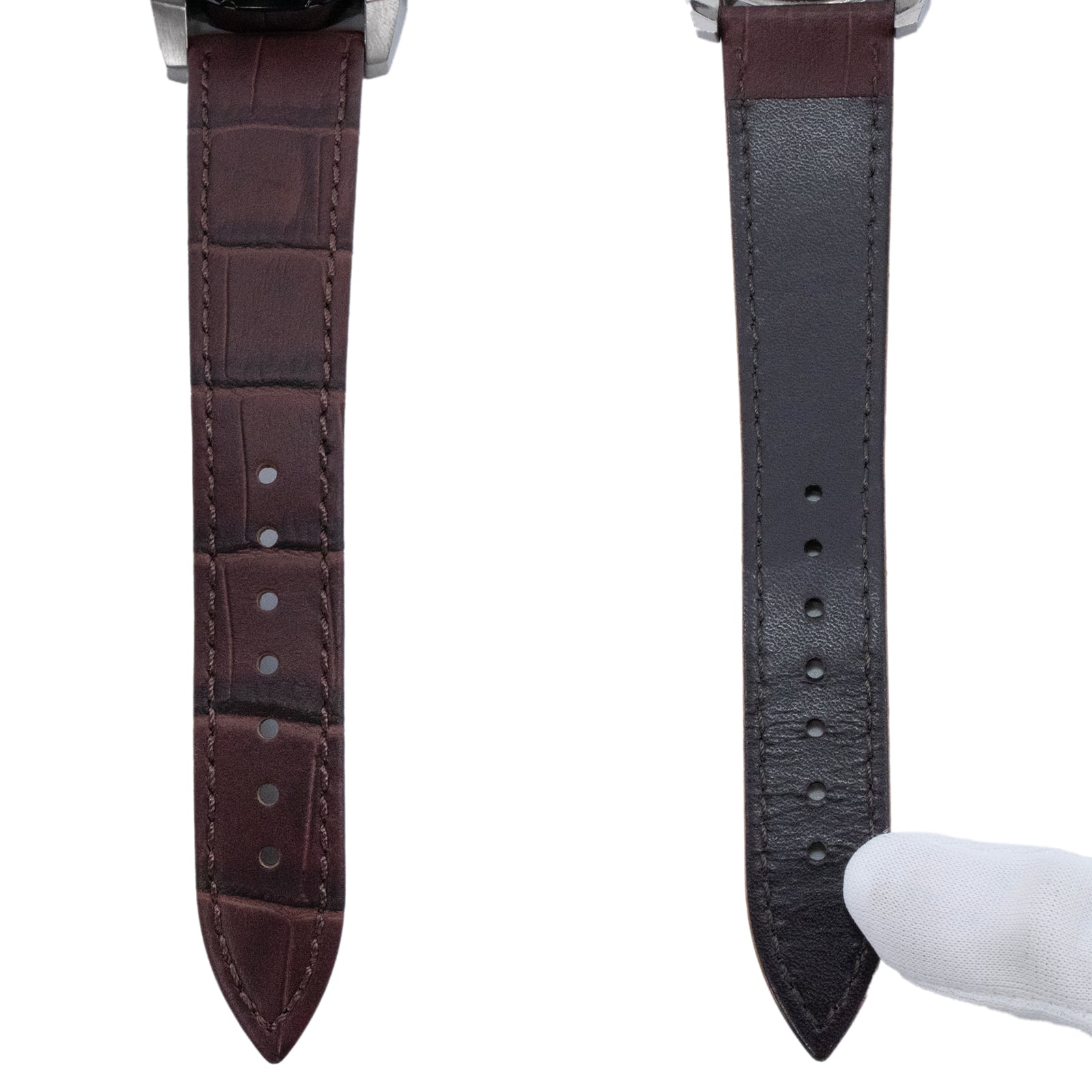 新品のレザーベルトが腕に優しく馴染み、長時間の着用でもストレスを感じさせない快適な着け心地です。