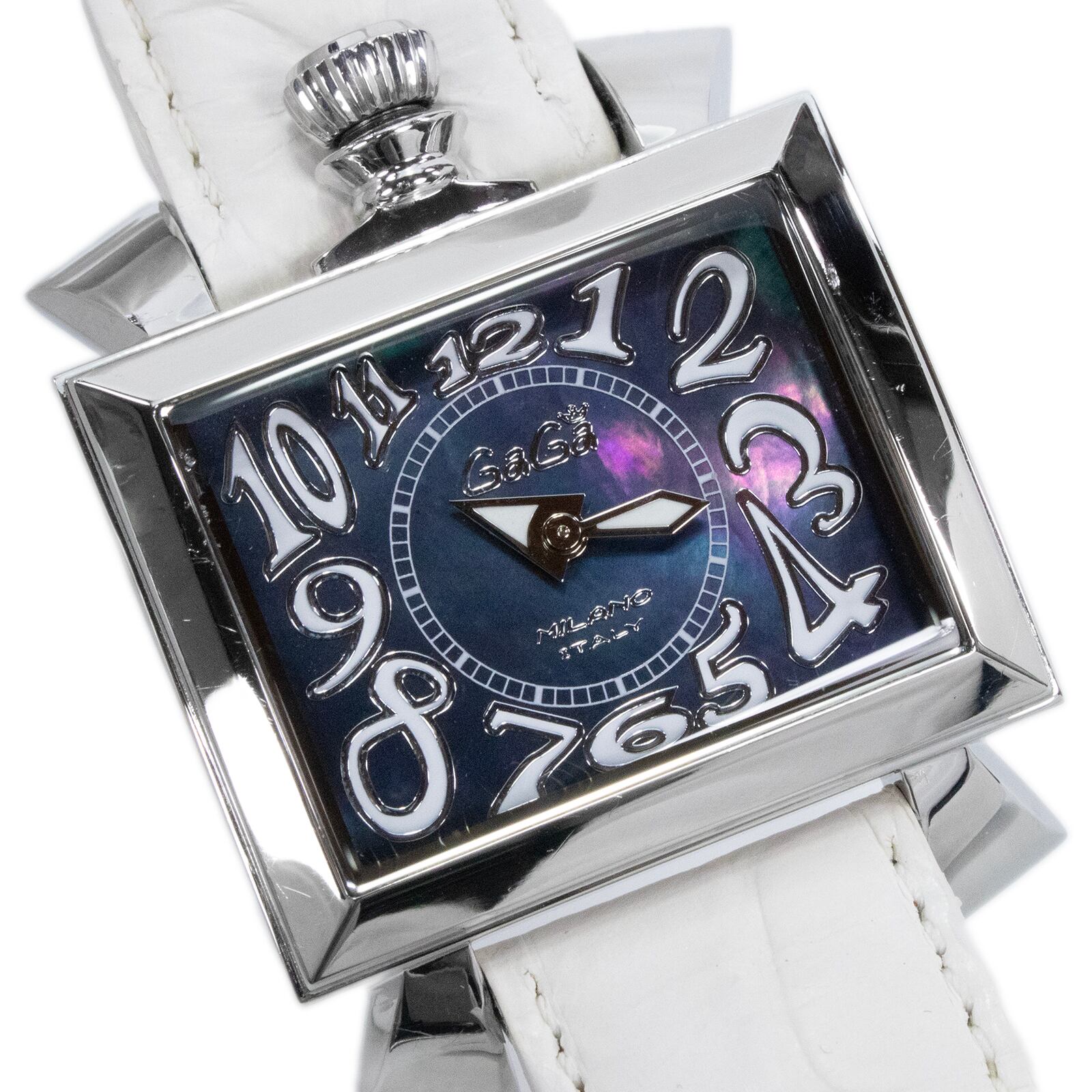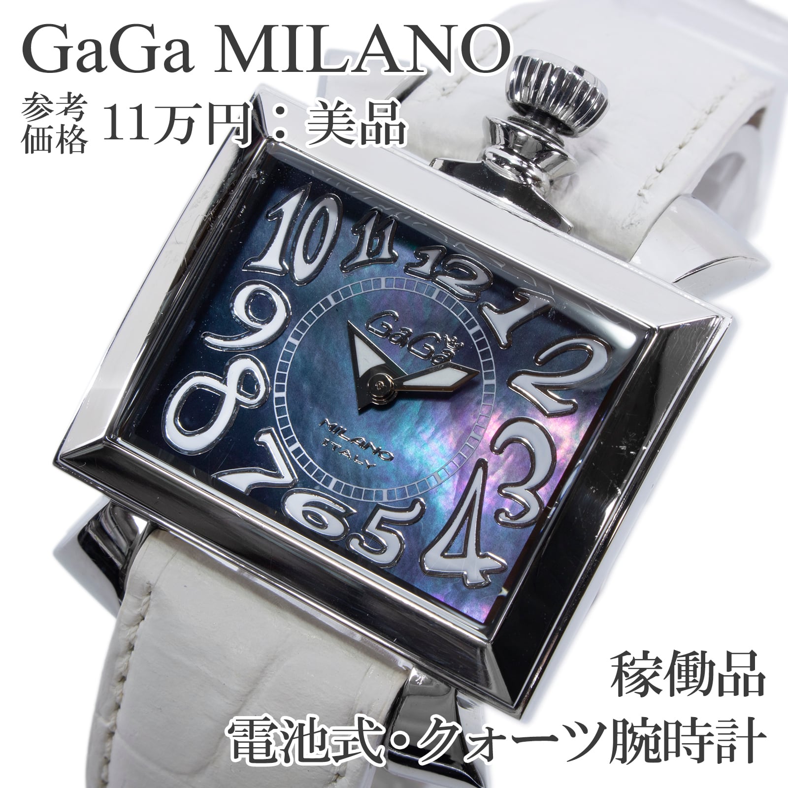 稼働品 送料無料 ガガミラノ 腕時計 クォーツ 2針 レディース ナポレオーネ レディー 6030.4 黒 シェル盤 黒蝶貝 スクエア型 Y2K ロゴ X471