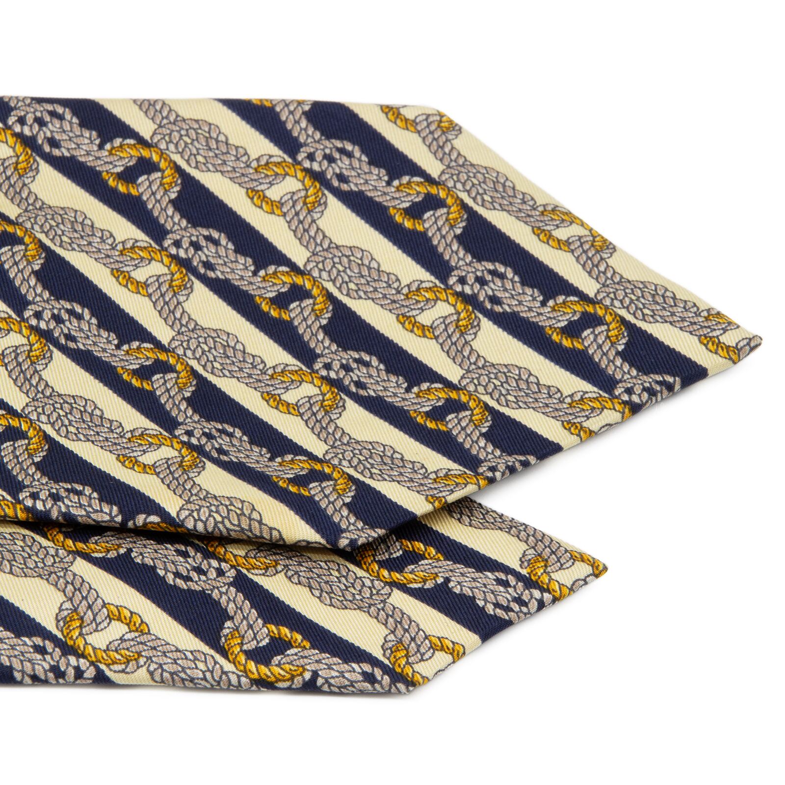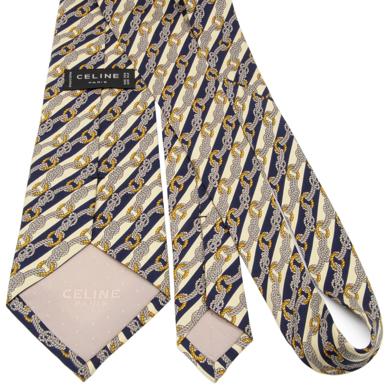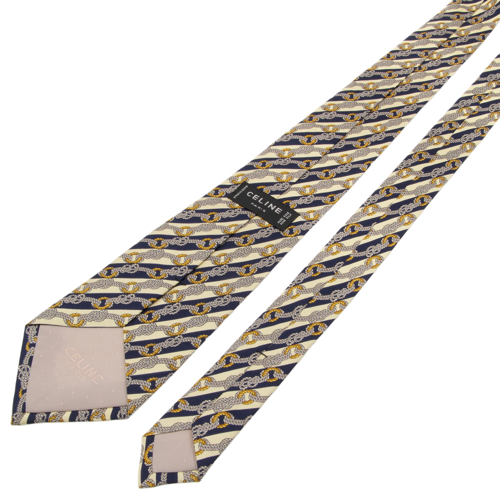 送料無料 セリーヌ ネクタイ シルク ネイビーブルー アイボリー グレー 黄色 ストライプ Y2K 縄 ロープ ハイブランド スペイン製 綺麗 P285