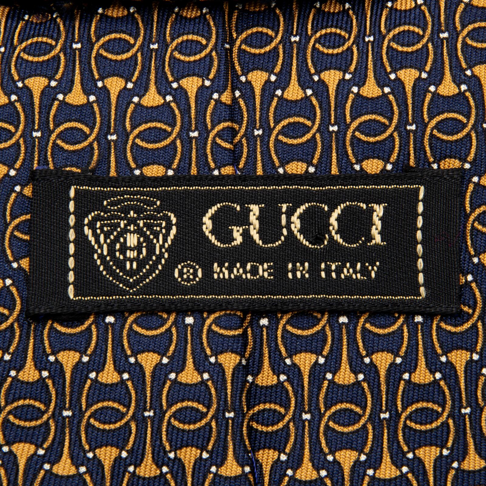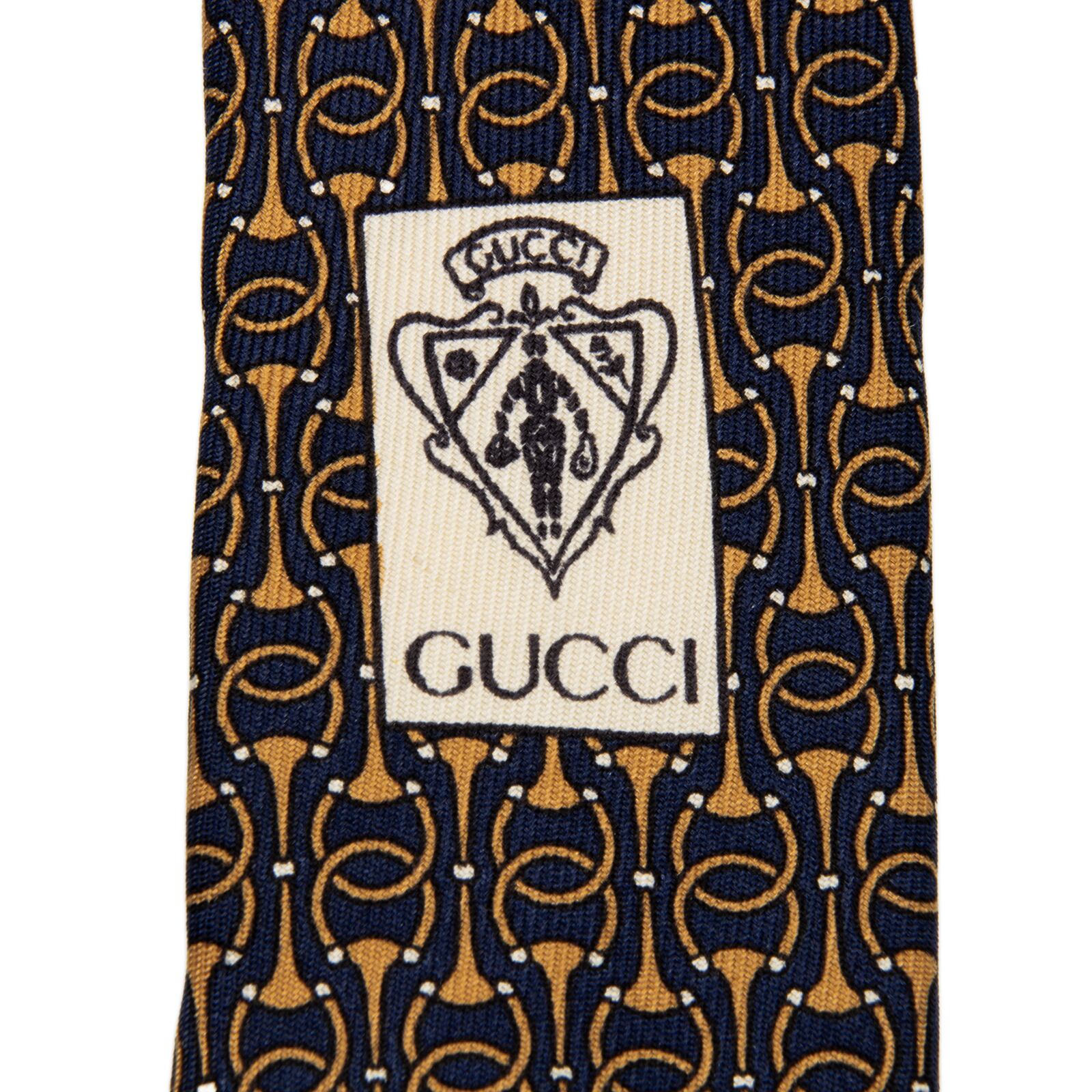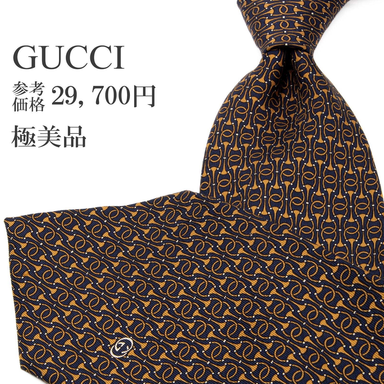 送料無料 グッチ ネクタイ シルク ネイビーブルー 茶色 ホースビット インターロッキングG GGロゴ マーク ハイブランド イタリア 綺麗 P312