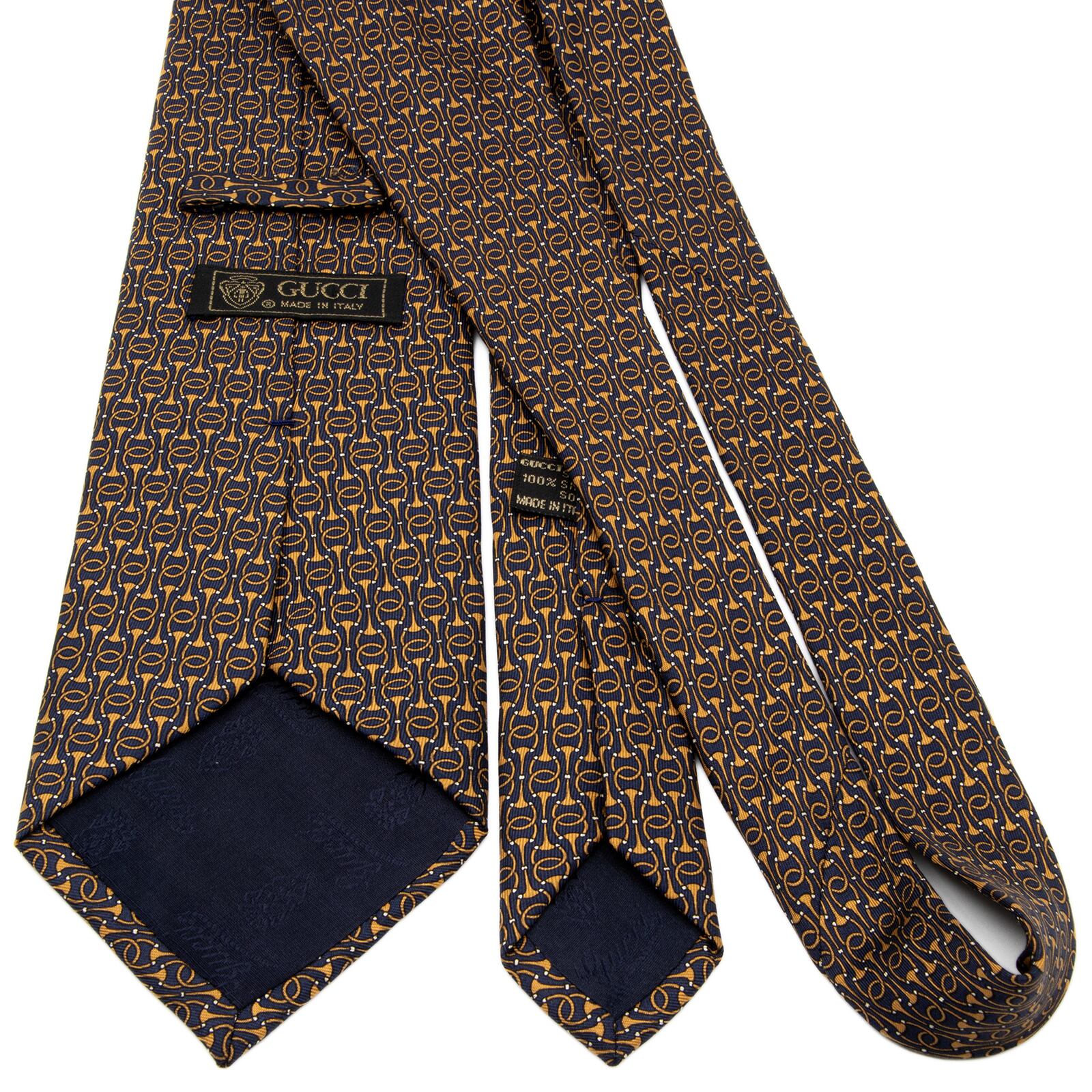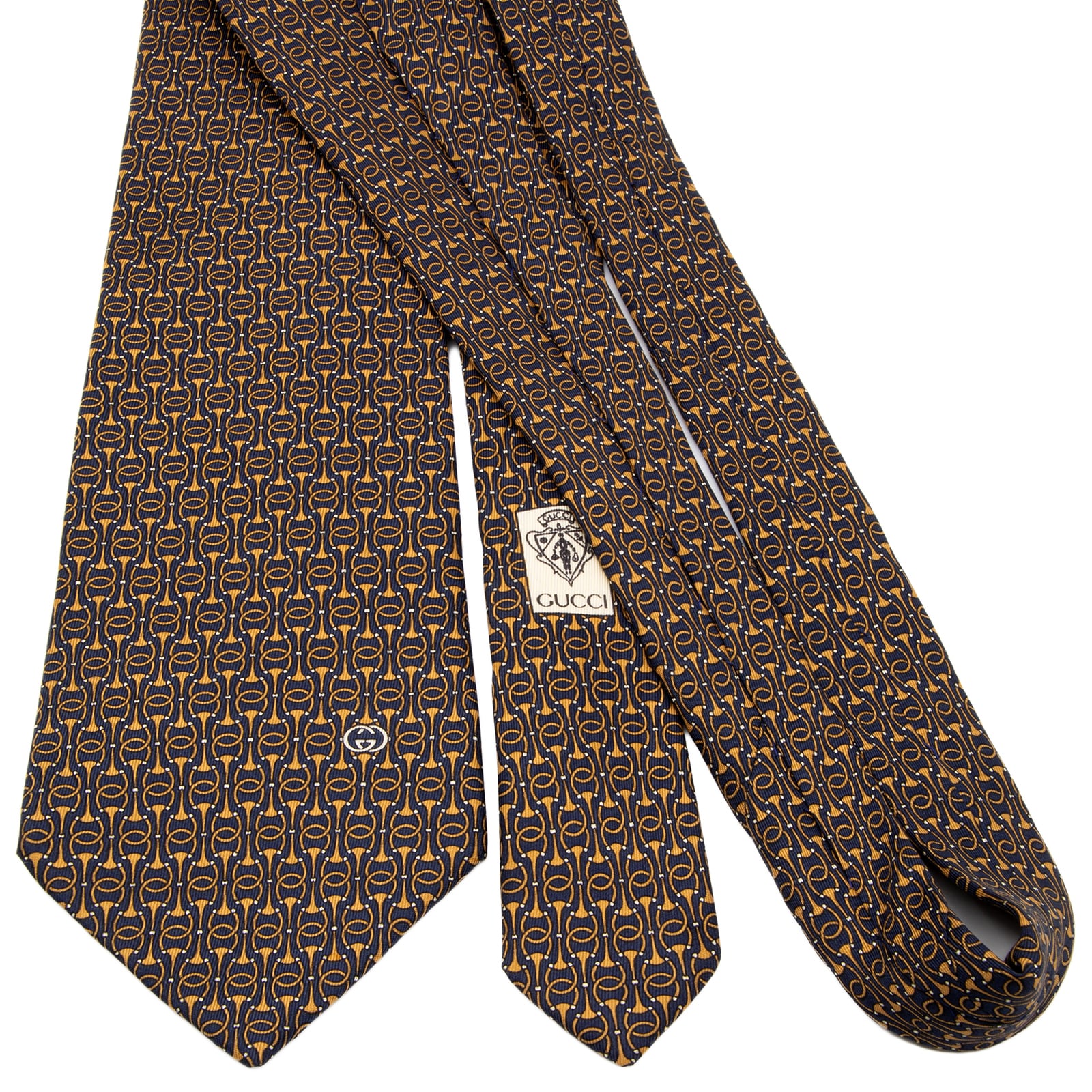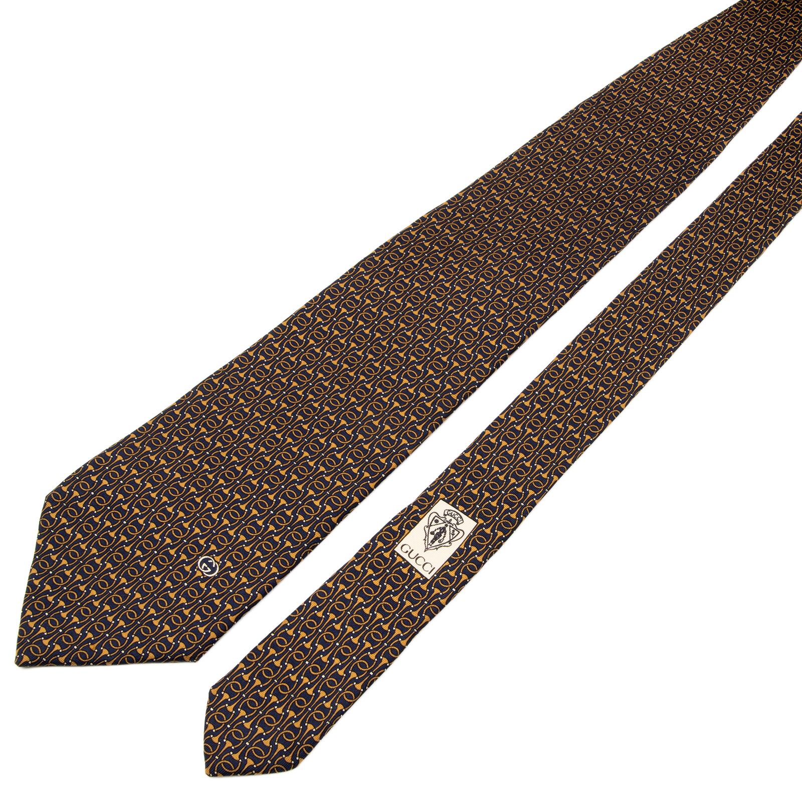 送料無料 グッチ ネクタイ シルク ネイビーブルー 茶色 ホースビット インターロッキングG GGロゴ マーク ハイブランド イタリア 綺麗 P312