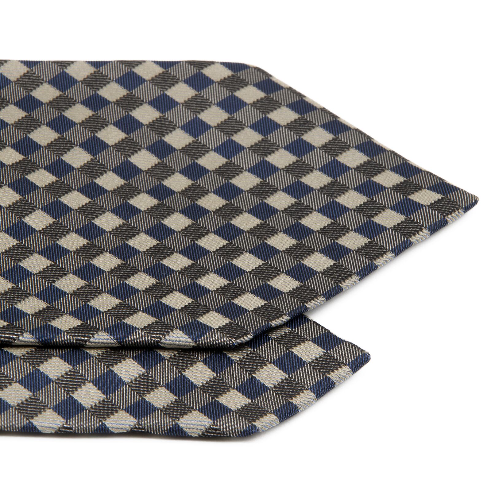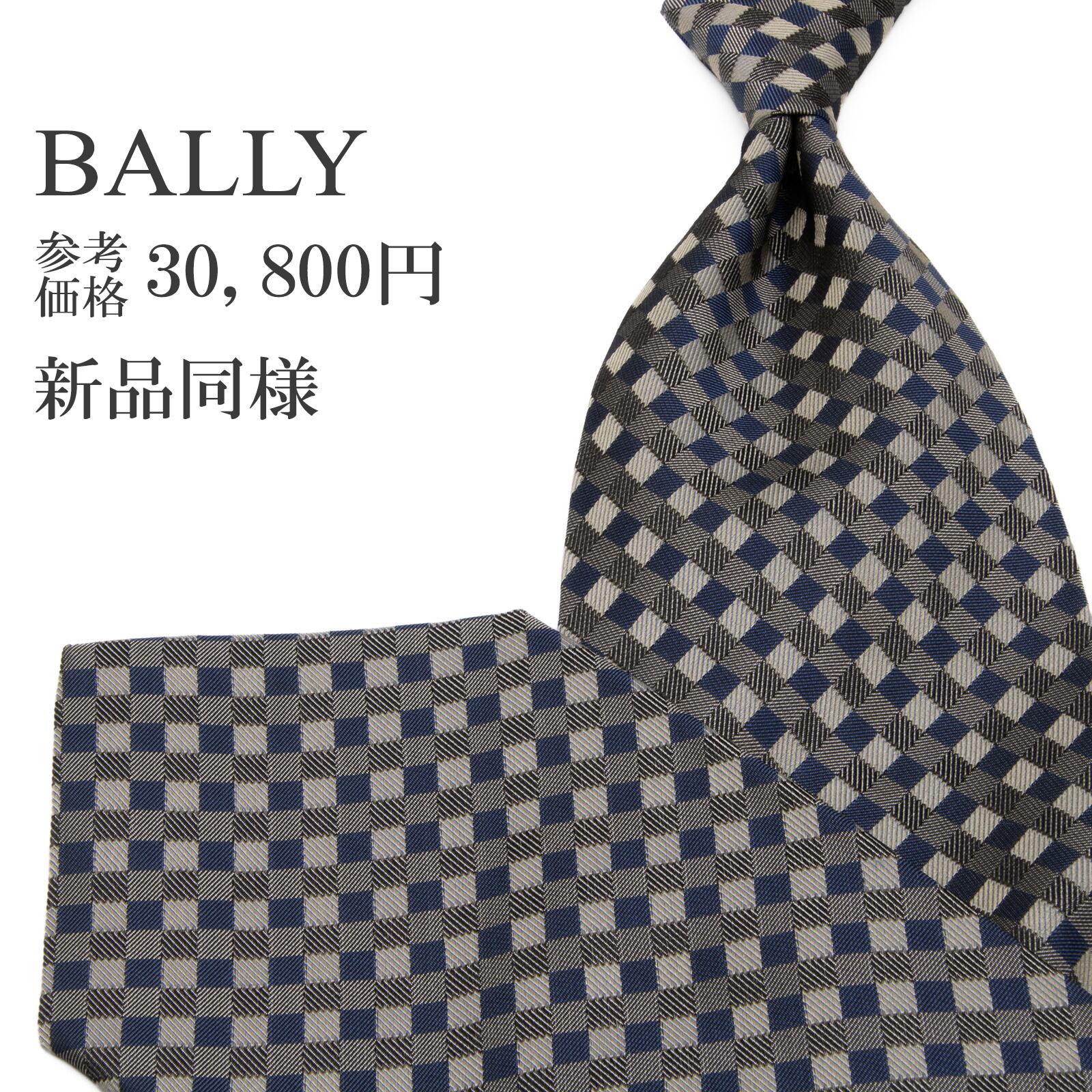 新品同様 送料無料 バリー ネクタイ ジャガード シルク シルバー グレー ネイビーブルー 格子 チェック 光沢 ハイブランド イタリア製 P369