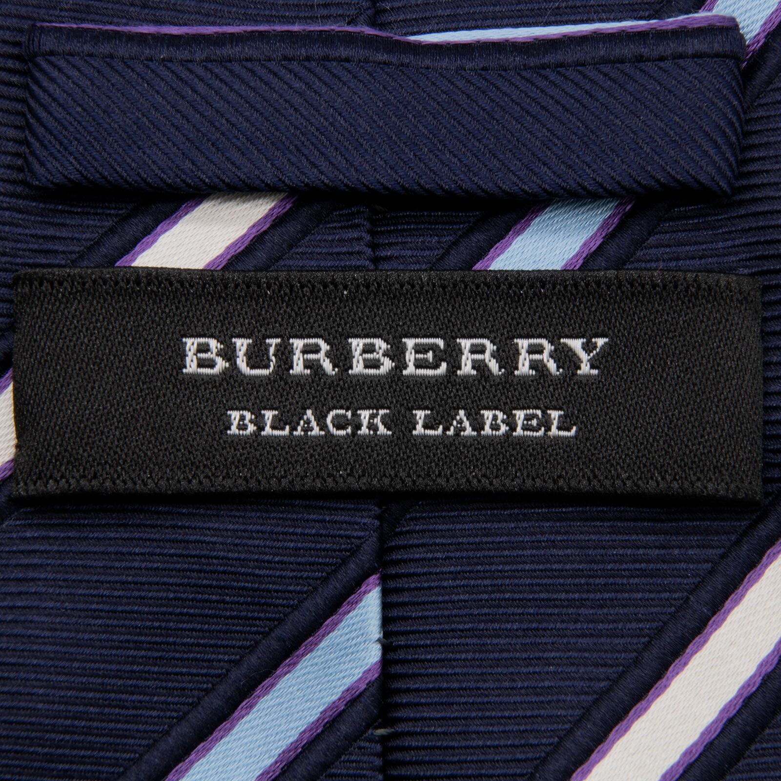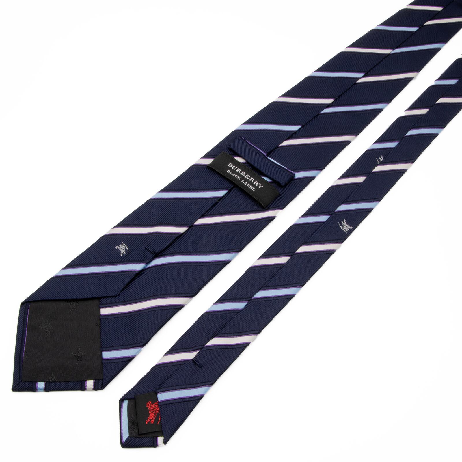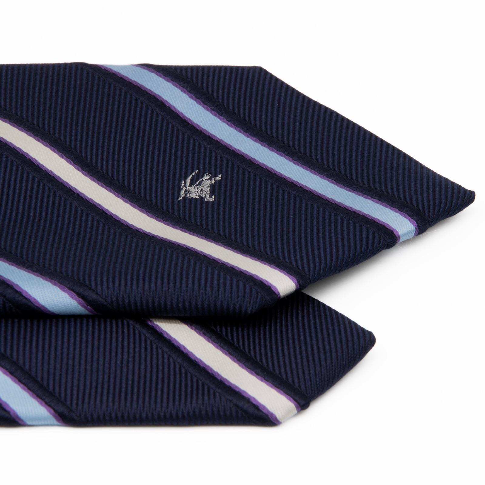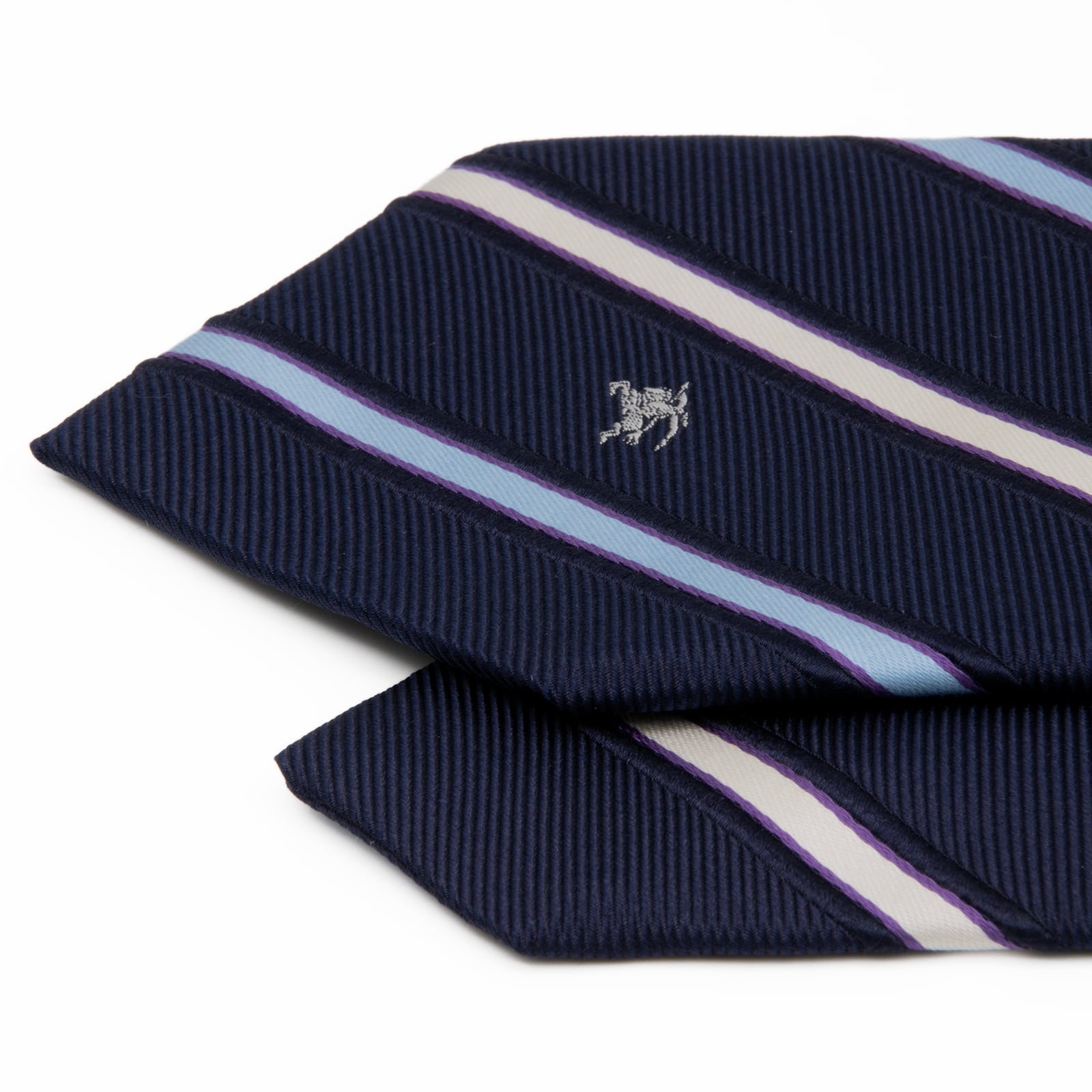 新品同様 送料無料 バーバリー ネクタイ レギュラータイ ジャガード ネイビーブルー 水色 白 紫 ストライプ 肉厚 馬 ホースロゴ 綺麗 P534