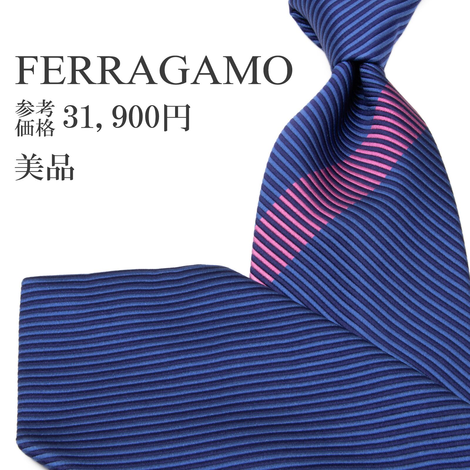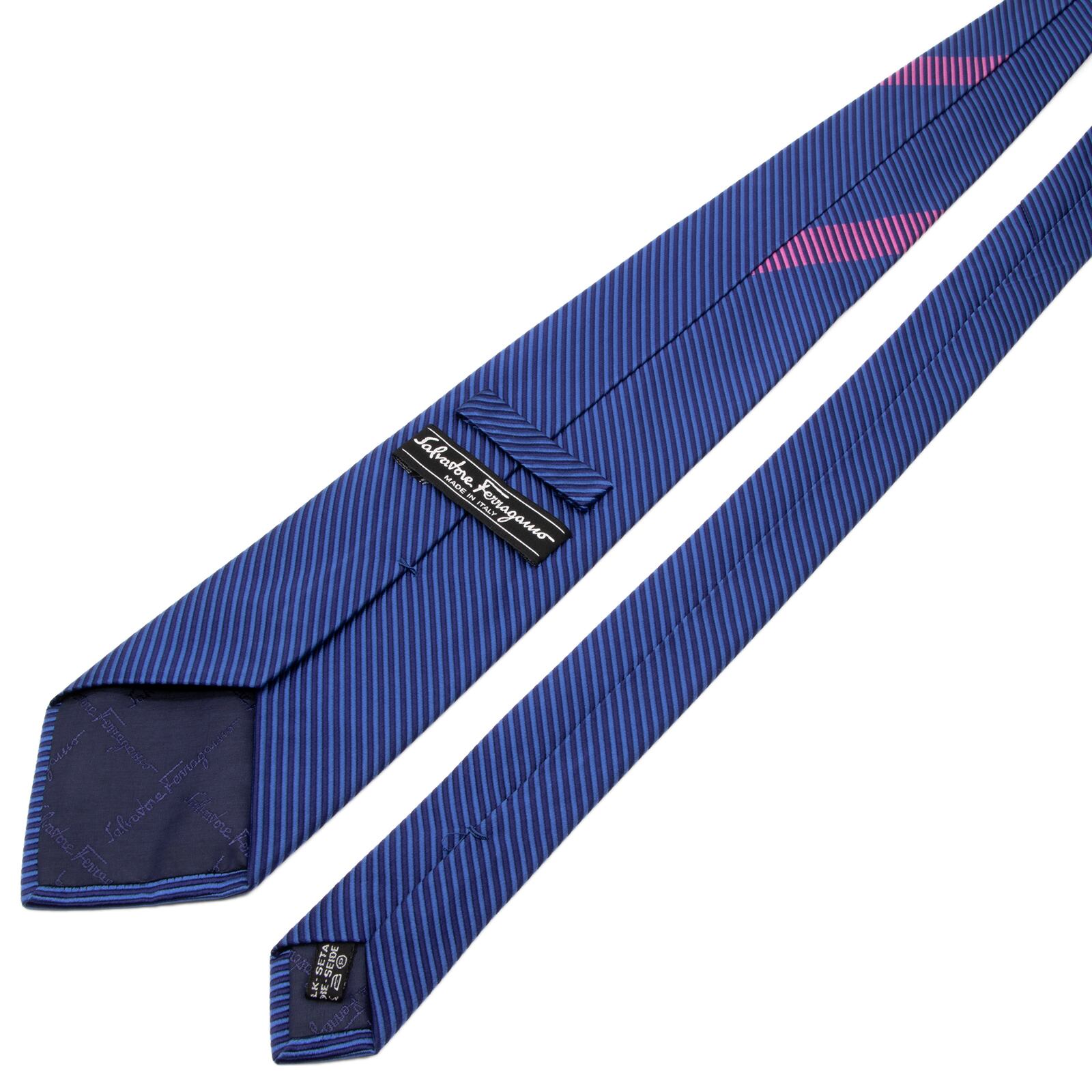 送料無料 フェラガモ ネクタイ レギュラータイ ジャガード 青 ネイビーブルー ピンク ストライプ 光沢 ハイブランド イタリア 綺麗 P661