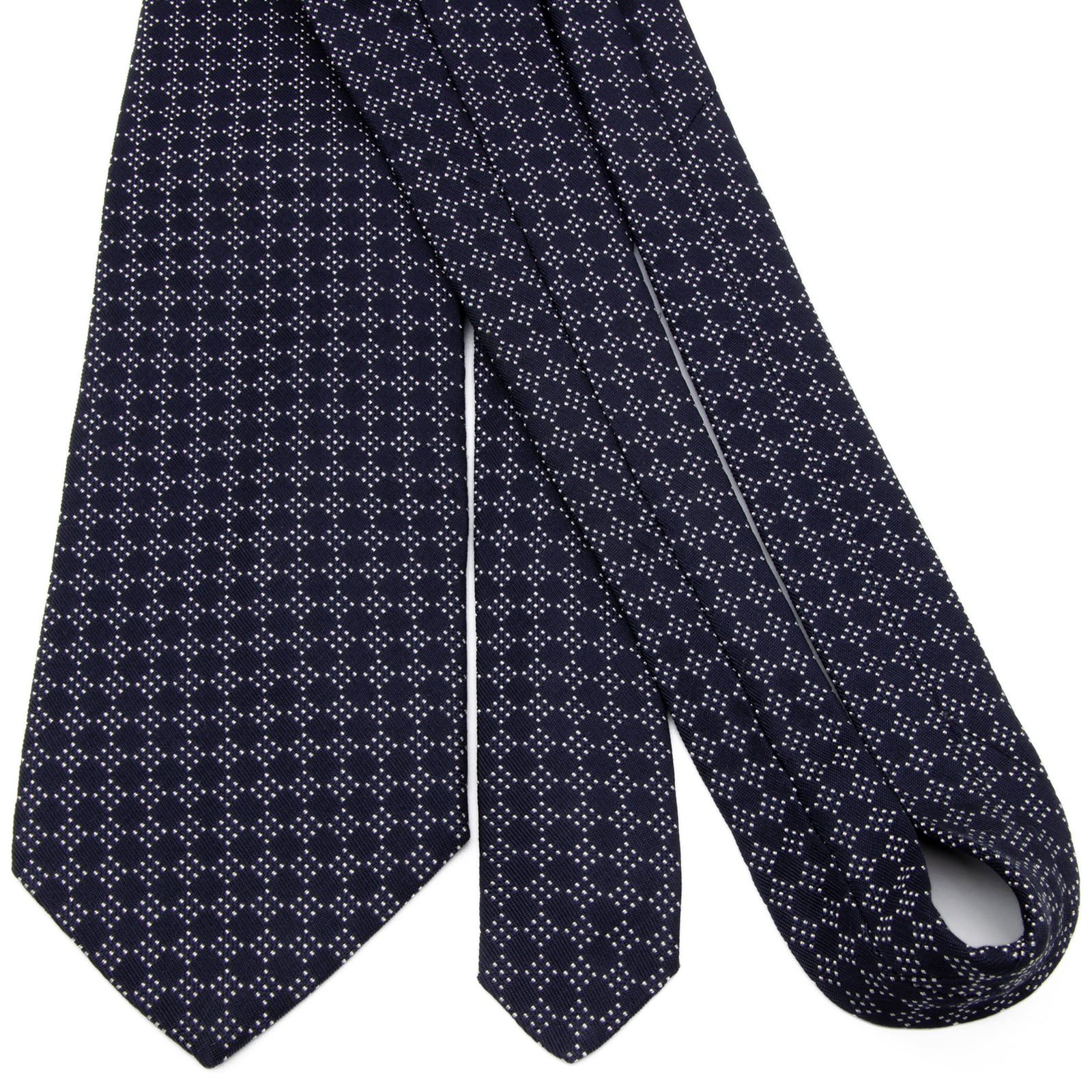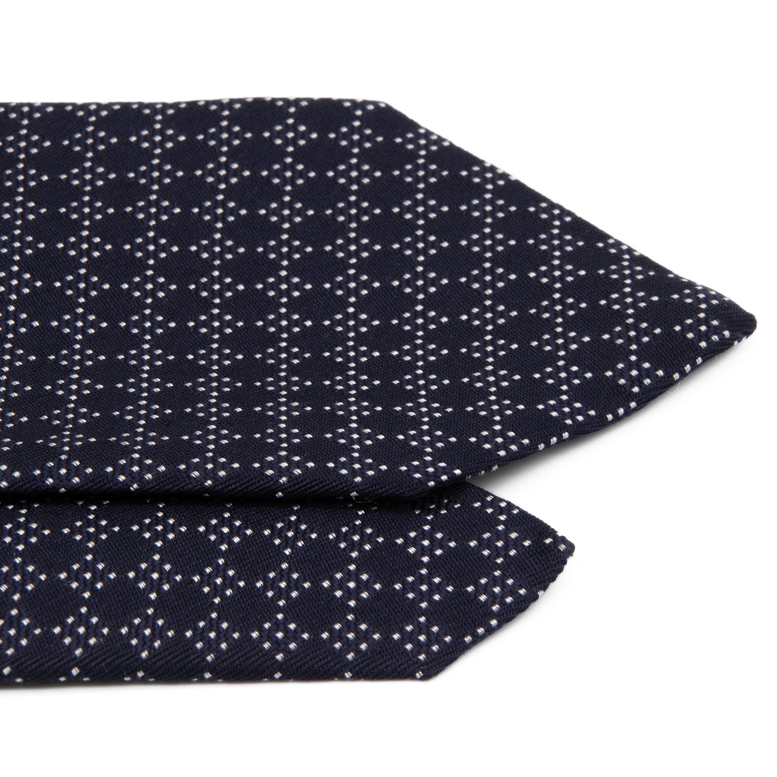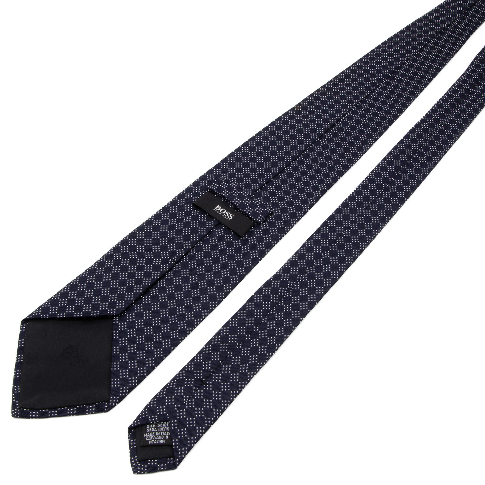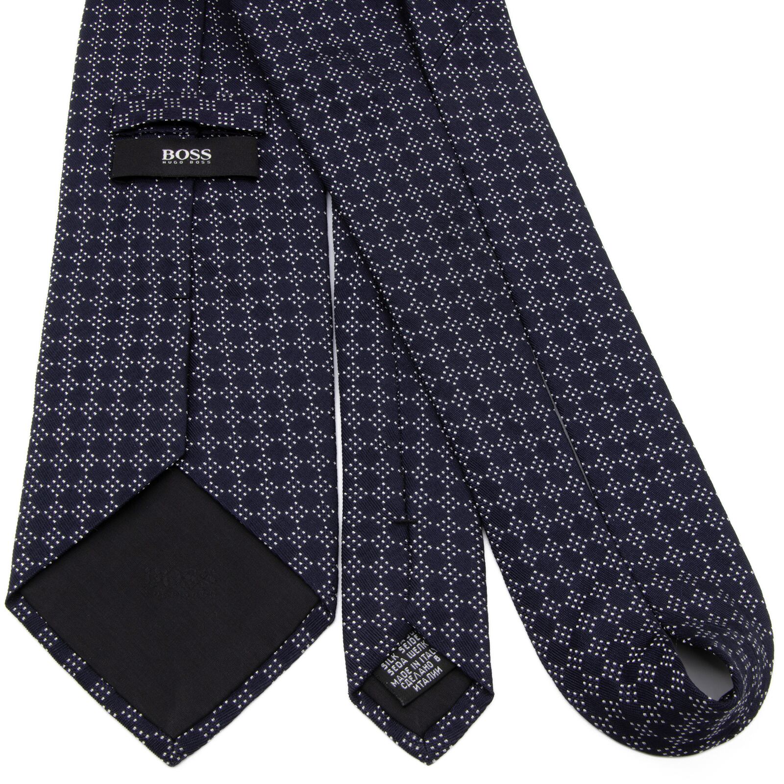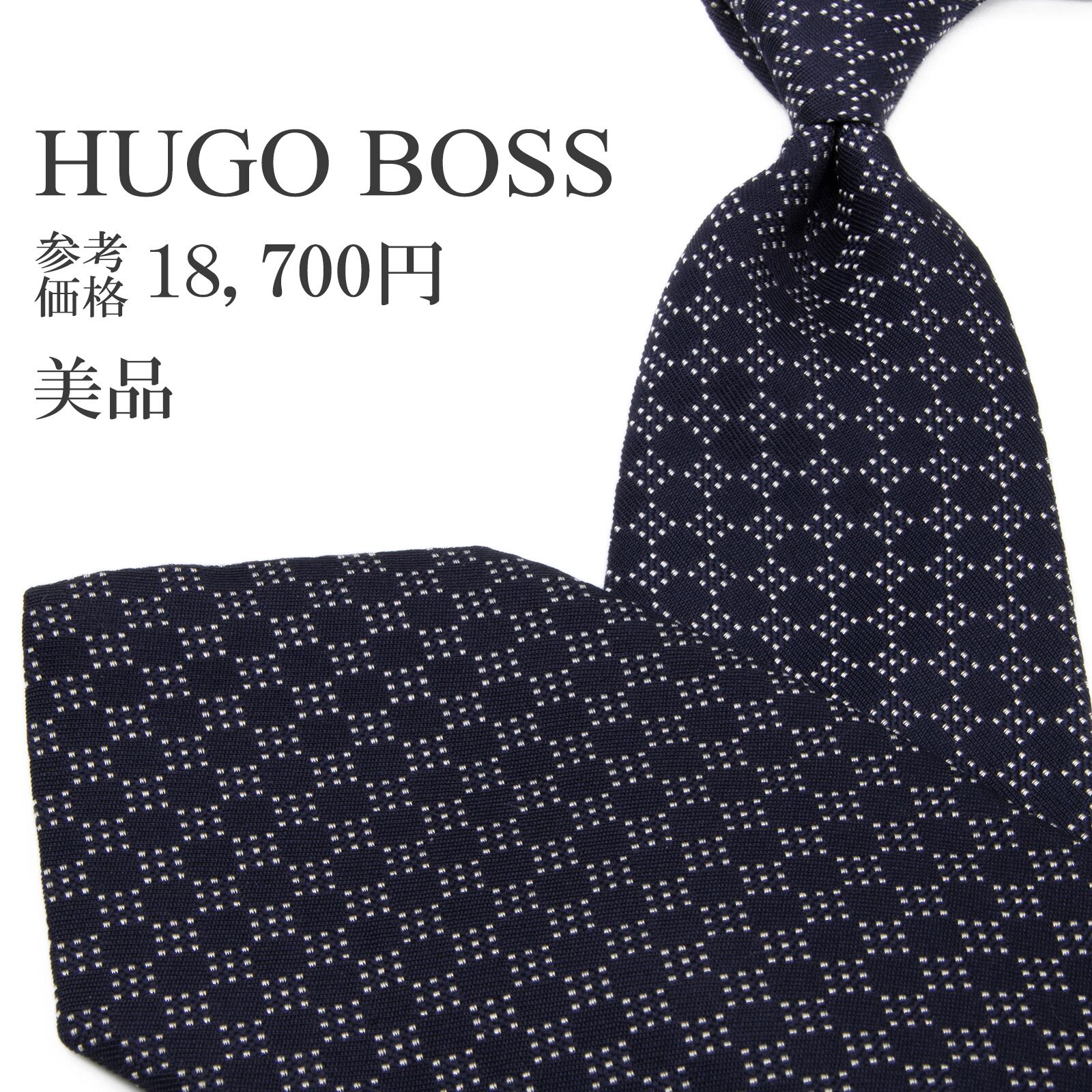 送料無料 ヒューゴボス ネクタイ レギュラータイ ジャガード シルク ネイビーブルー シルバー ドット 四角 ハイブランド イタリア製 P727