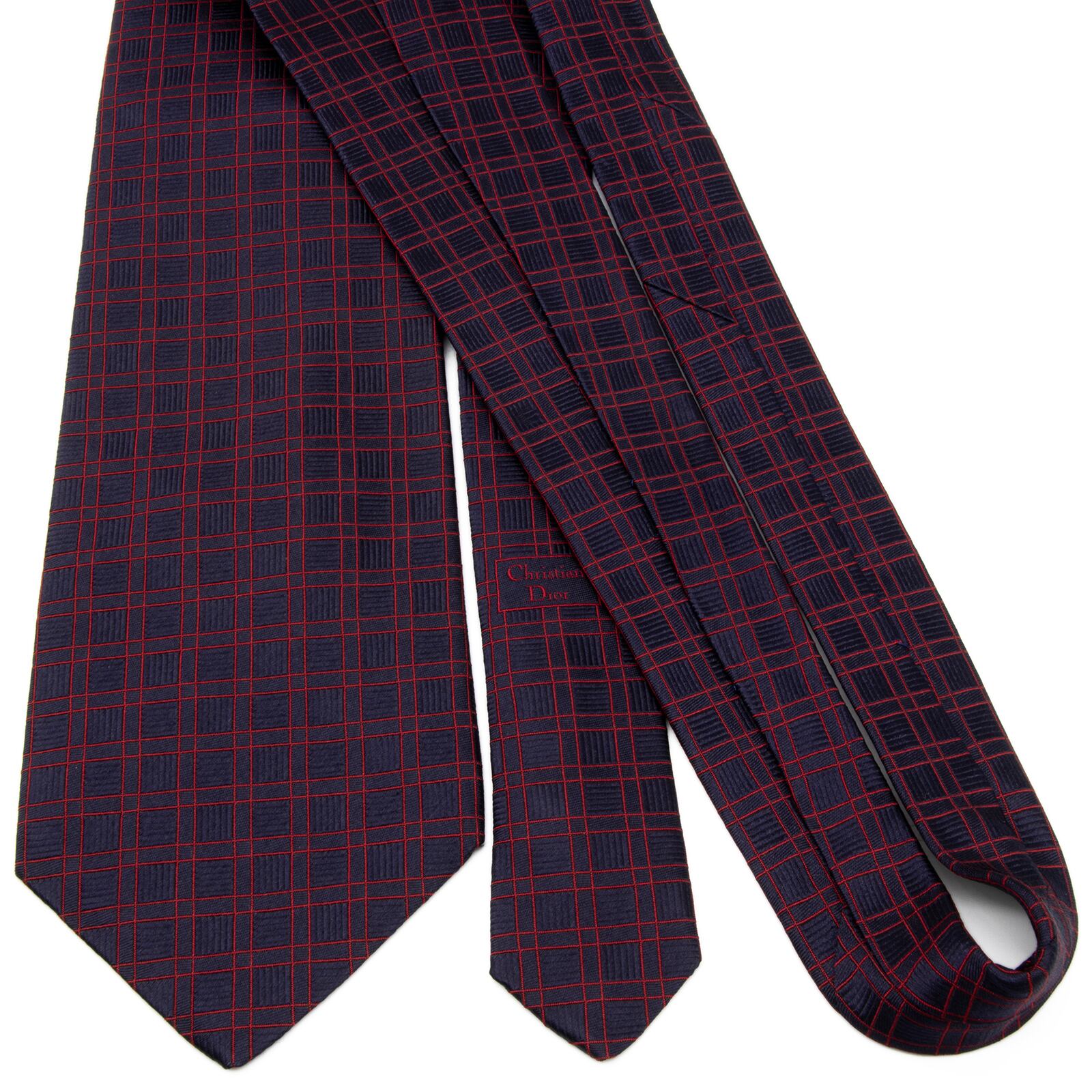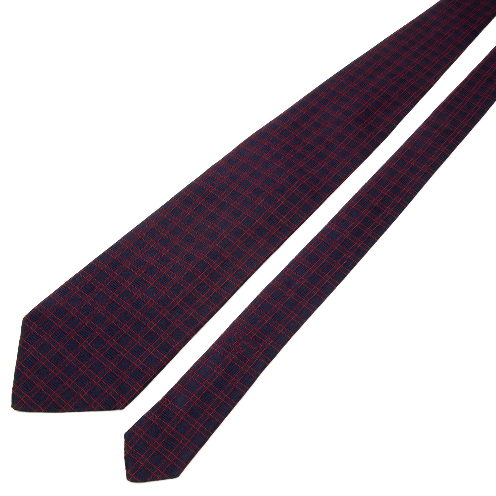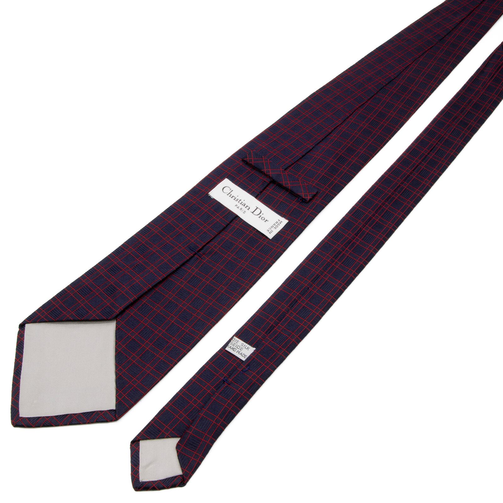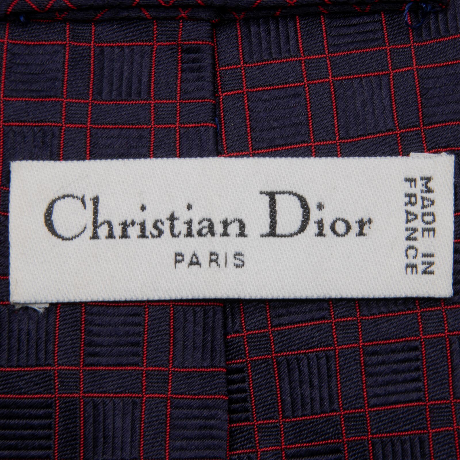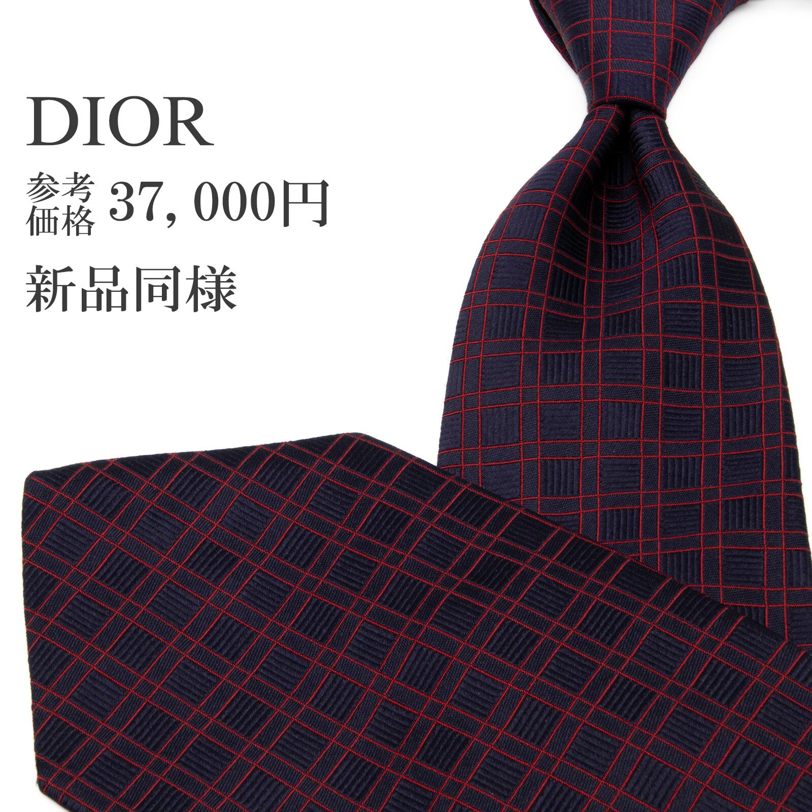 新品同様 送料無料 ディオール ネクタイ ジャガード シルク ネイビーブルー 赤 レッド チェック 光沢 ハイブランド フランス製 綺麗 P790