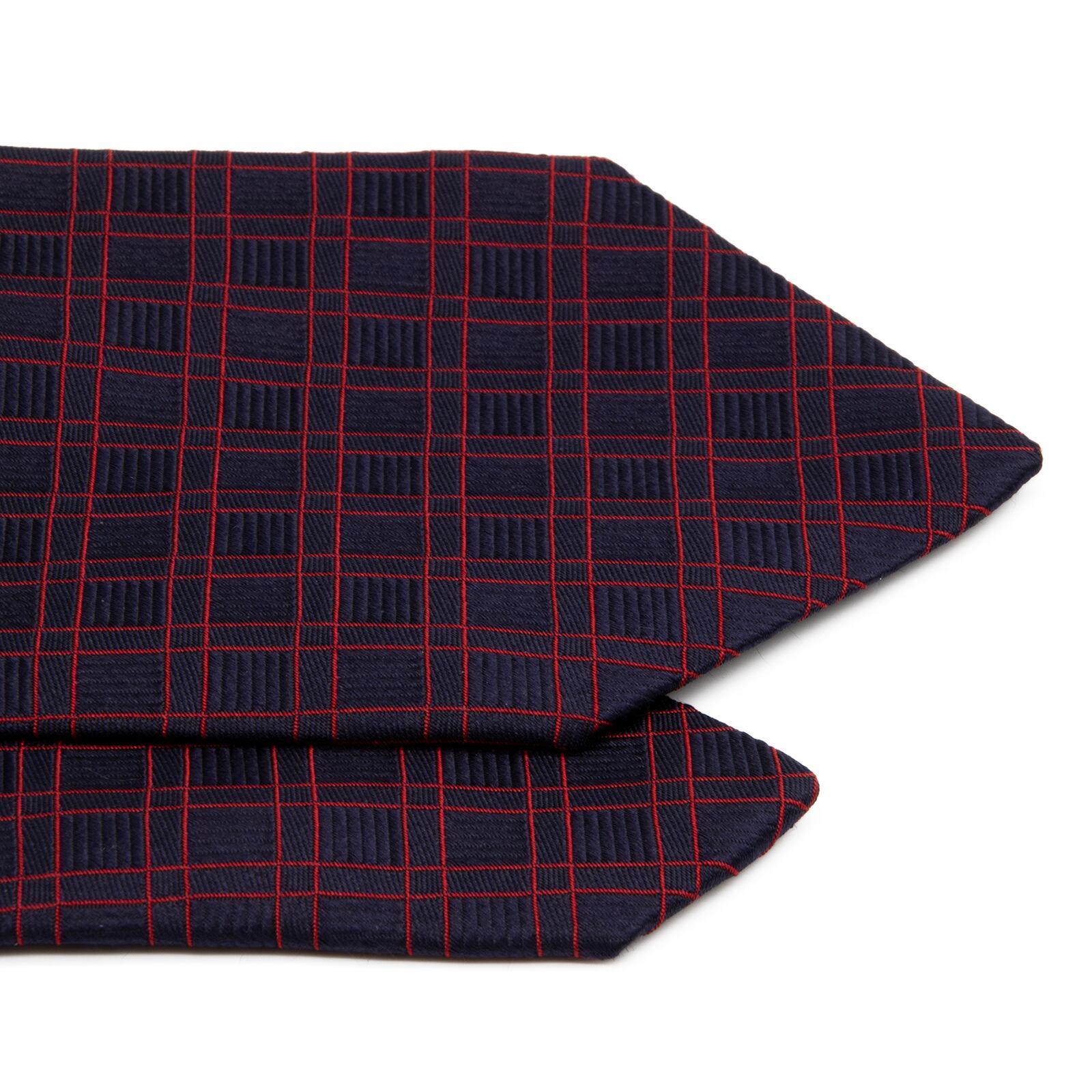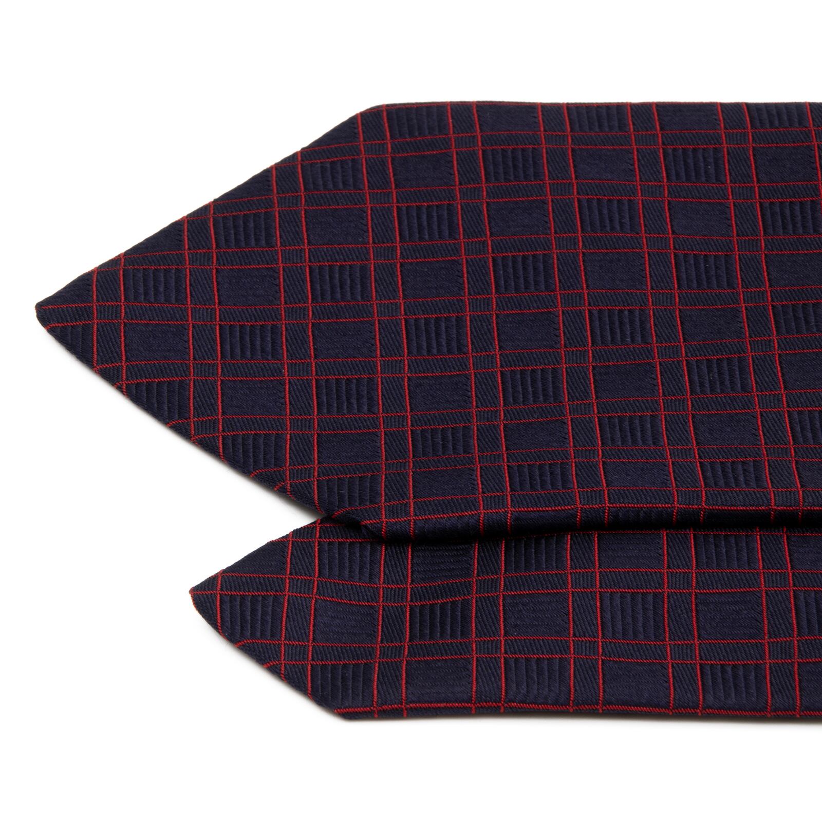 深みのあるネイビーに情熱的な赤のラインが交差するチェック柄は、Vゾーンに知性と程よい華やかさを同時に演出いたします。