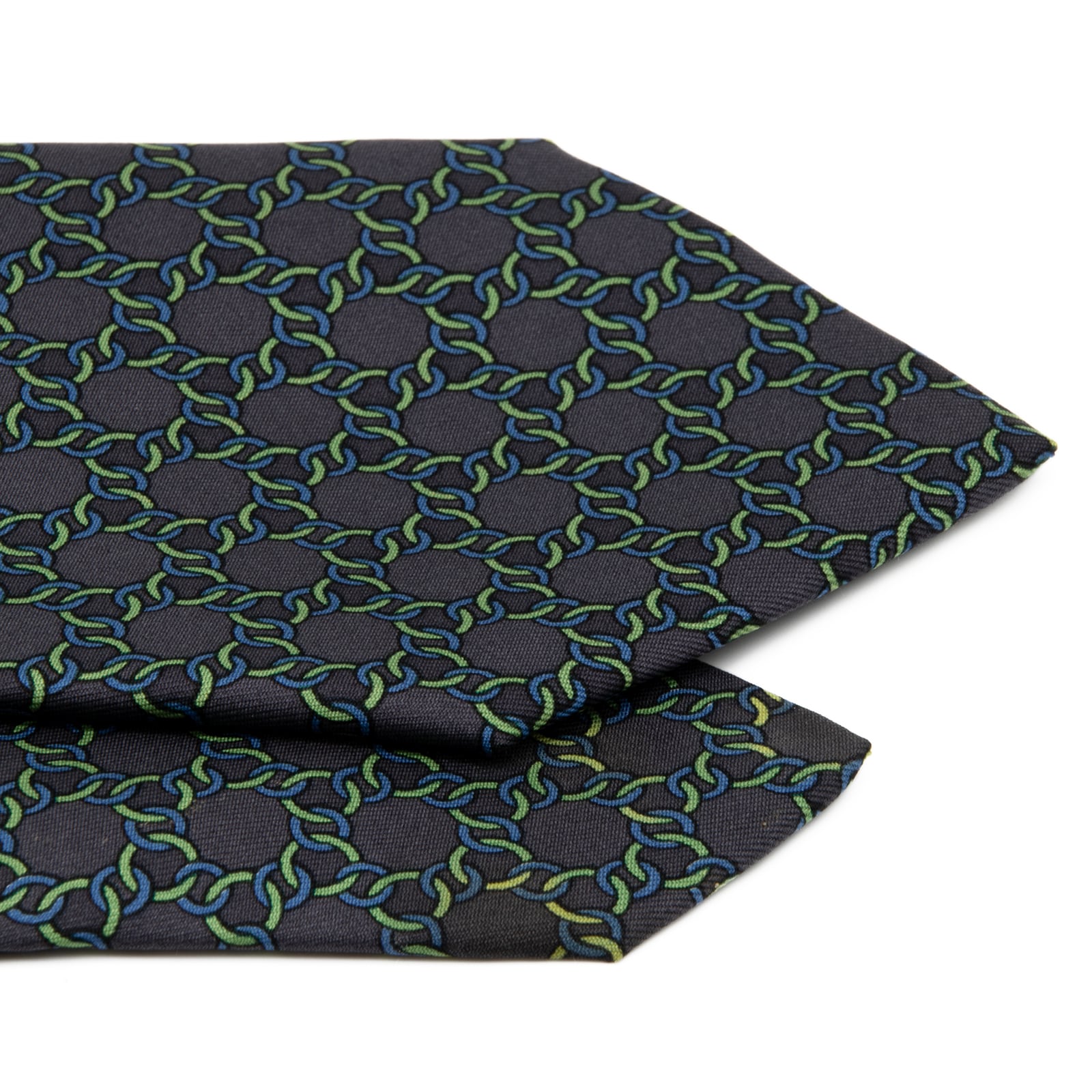 こちらは、複雑に絡み合うチェーンデザインが目を惹く、エルメスのネクタイでございます。