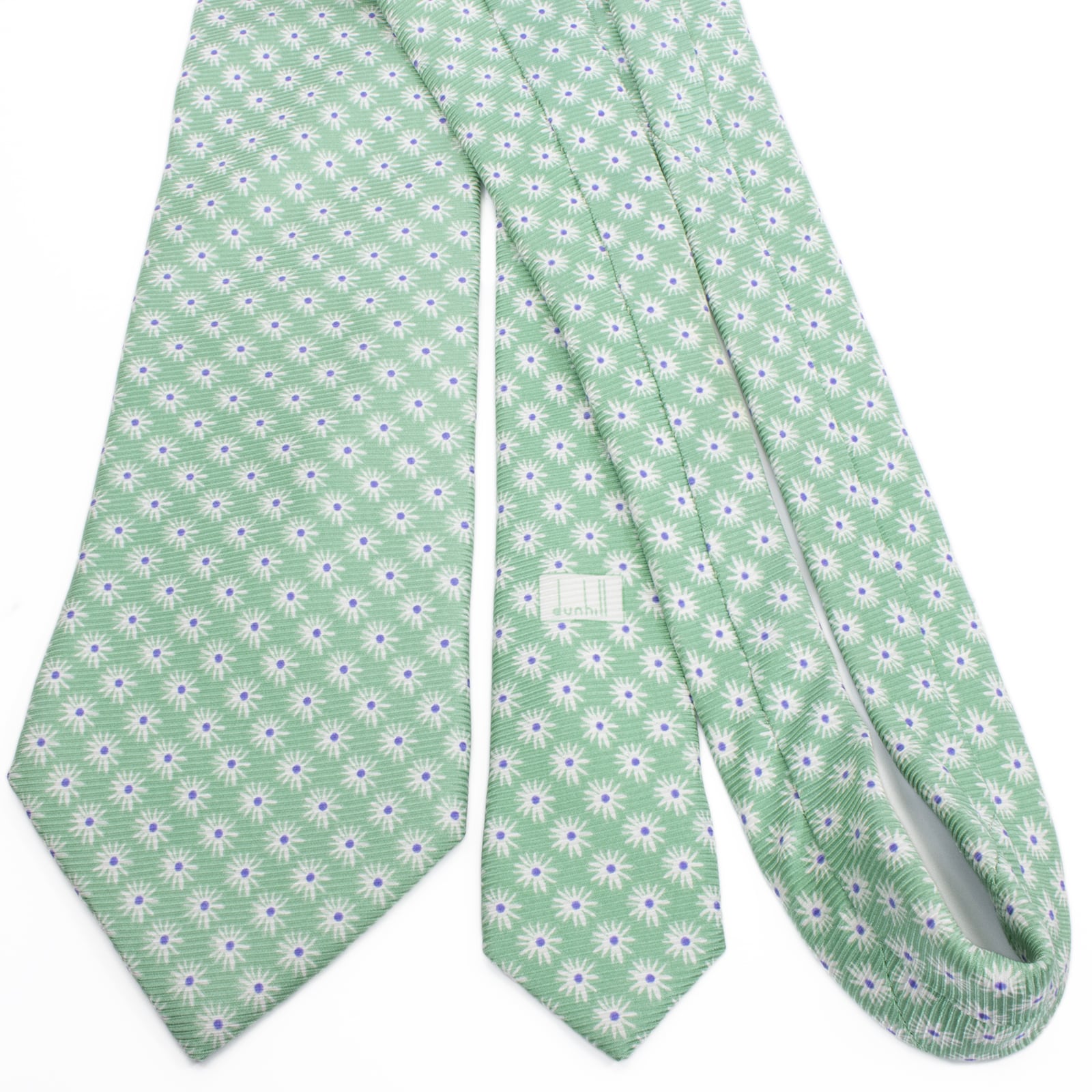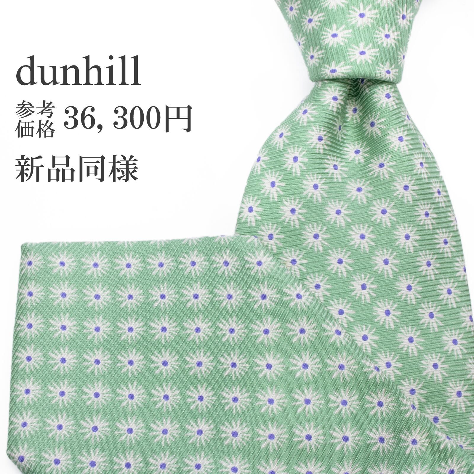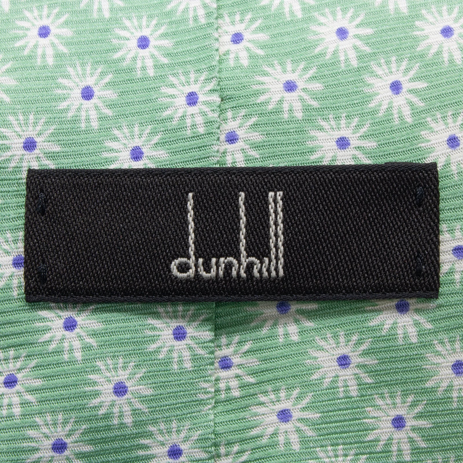 新品同様 送料無料 ダンヒル ネクタイ シルク 黄緑色 白 ホワイト 青 ブルー 総柄 花 フラワー ハイブランド 珍しい おしゃれ 綺麗 S587