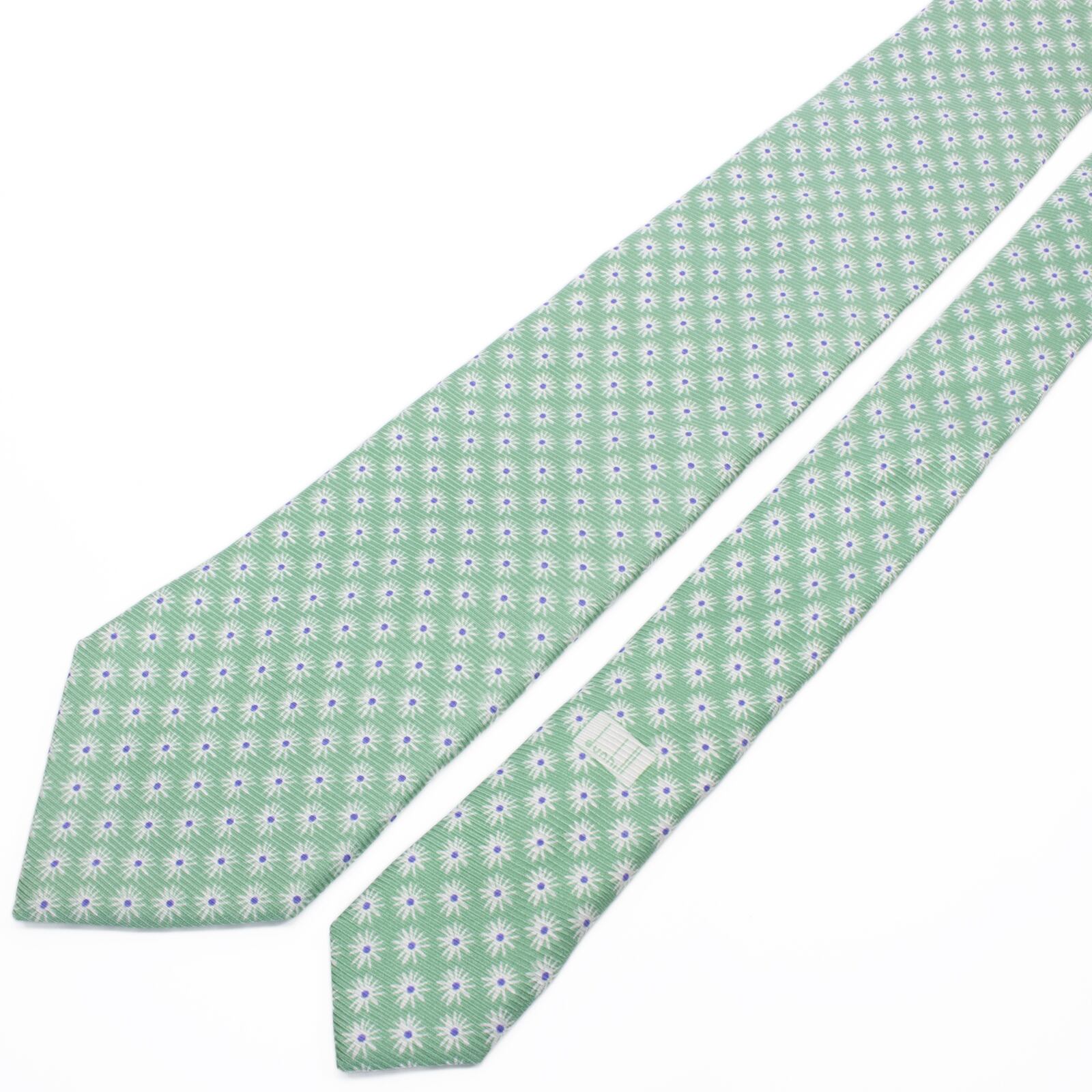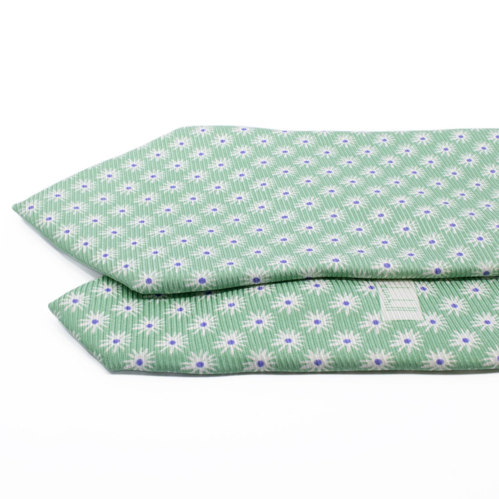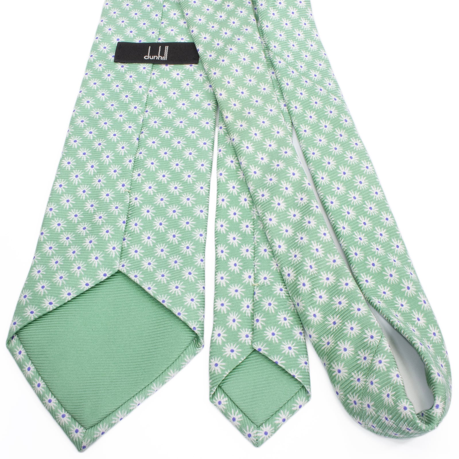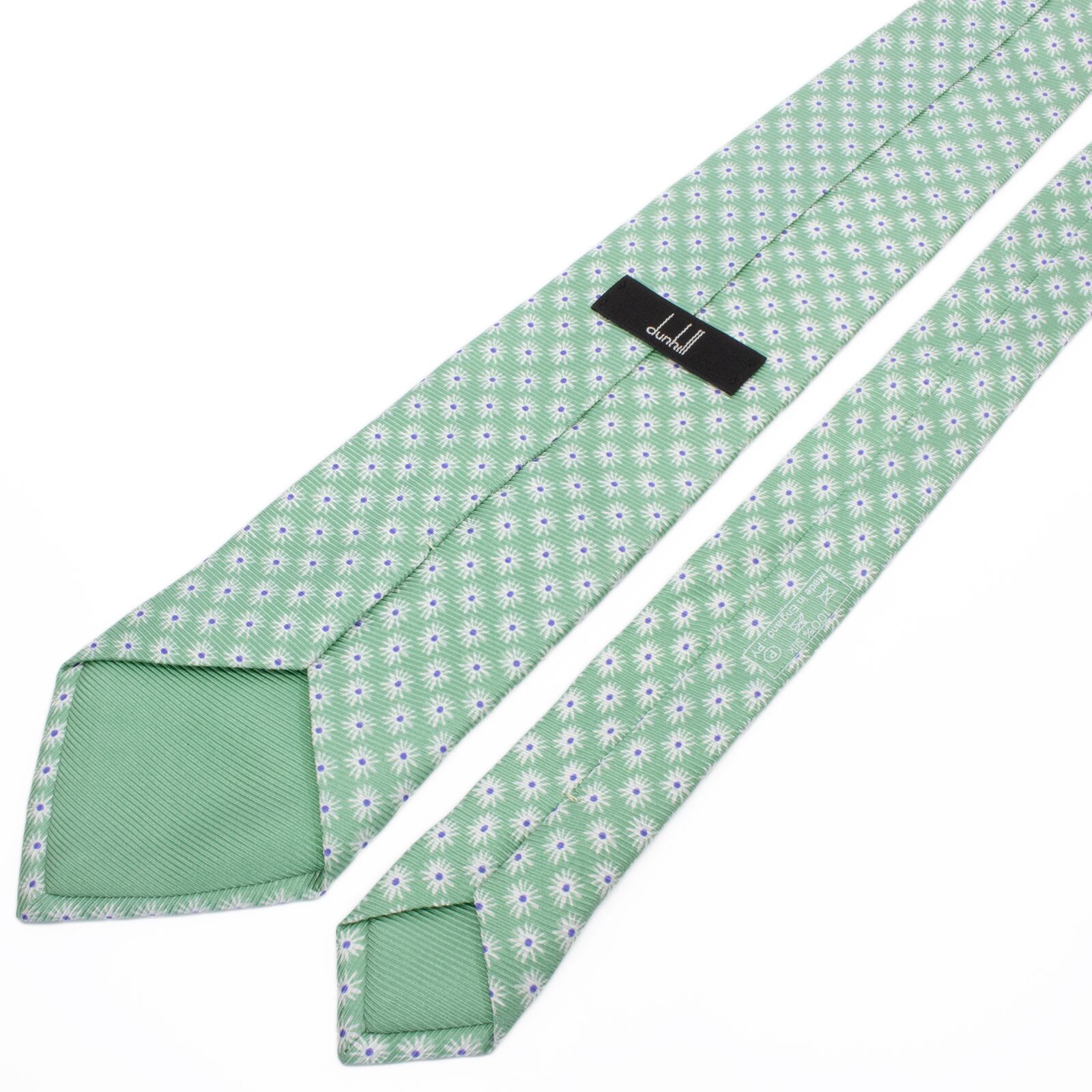 新品同様 送料無料 ダンヒル ネクタイ シルク 黄緑色 白 ホワイト 青 ブルー 総柄 花 フラワー ハイブランド 珍しい おしゃれ 綺麗 S587