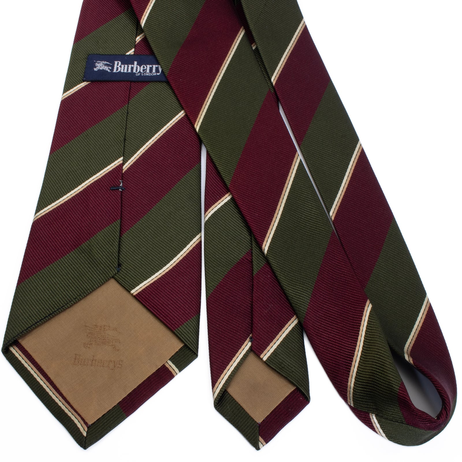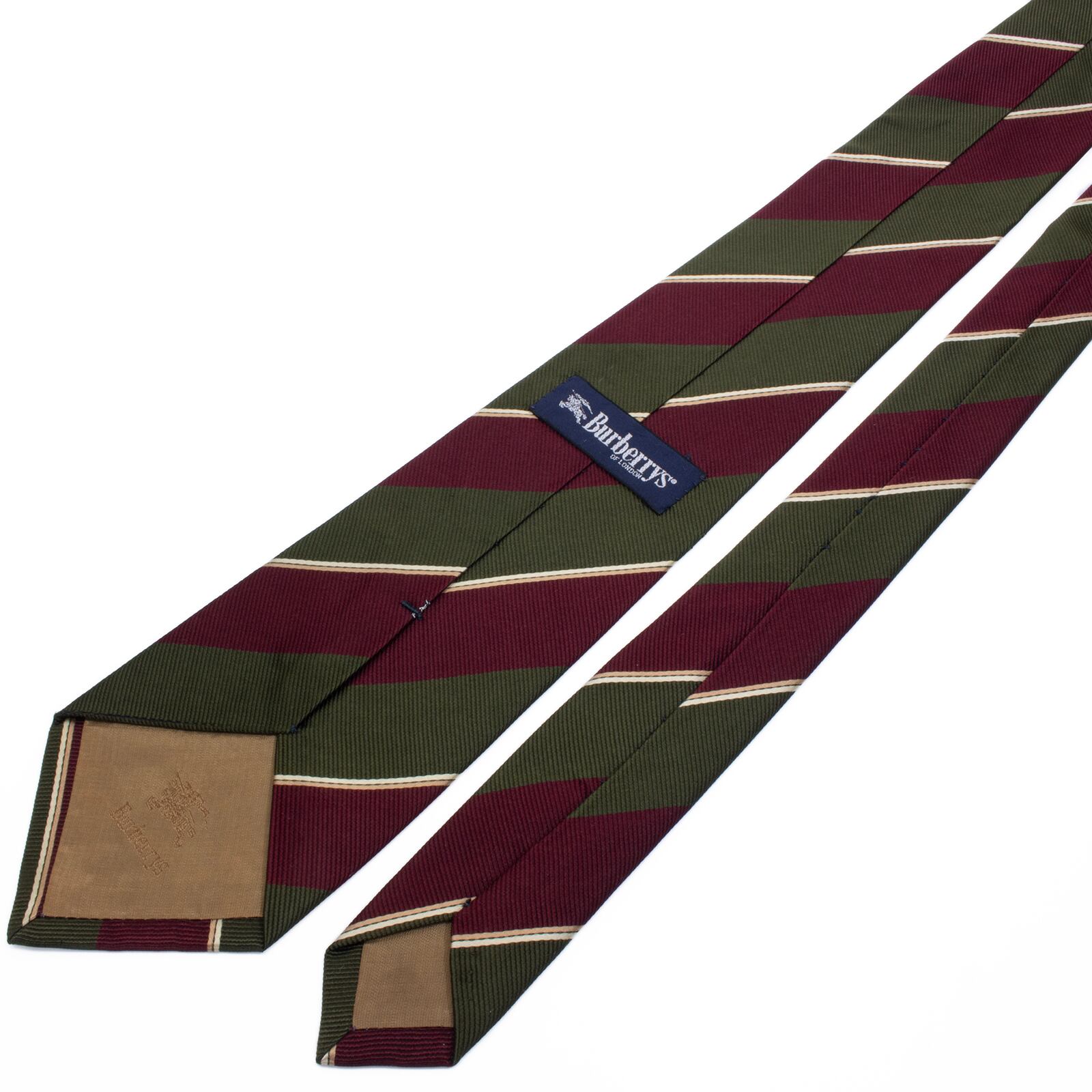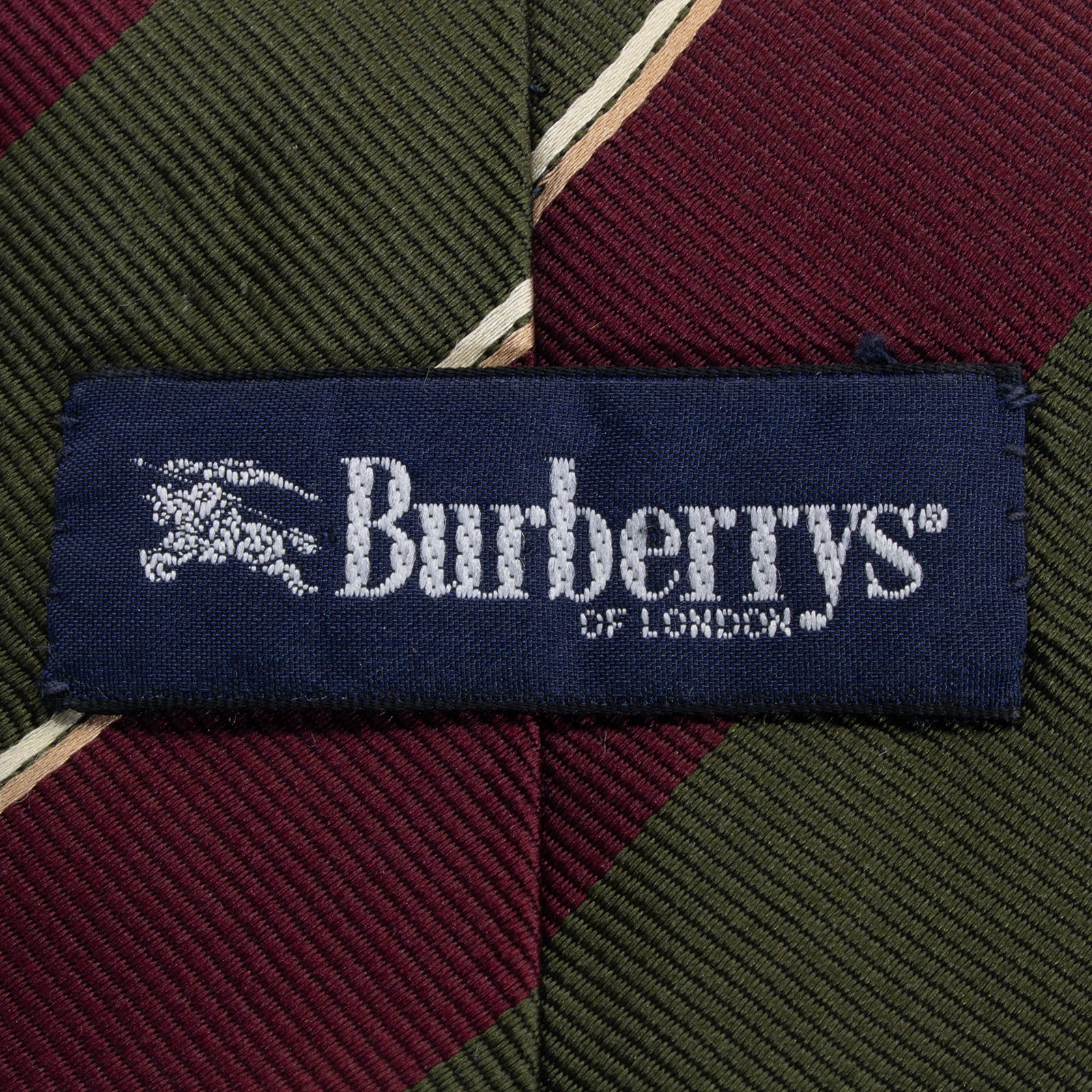 こちらは、深みのあるワインレッドとグリーンの配色が英国の伝統を感じさせる、バーバリーのネクタイでございます。