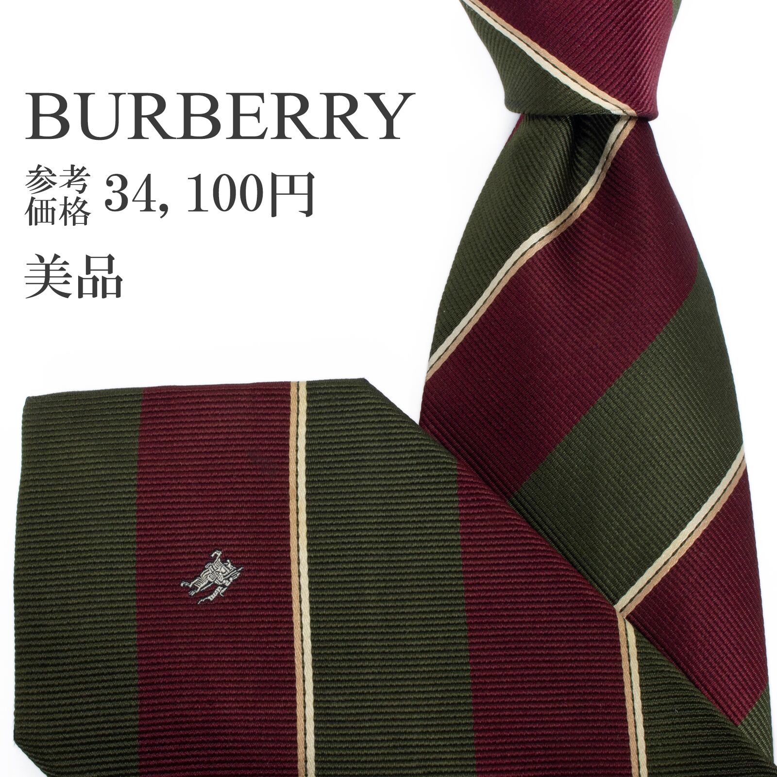送料無料 バーバリー ネクタイ レギュラータイ ジャガード 赤紫色 ボルドー 緑 ベージュ 白 ストライプ Y2K ホースロゴ ハイブランド S588