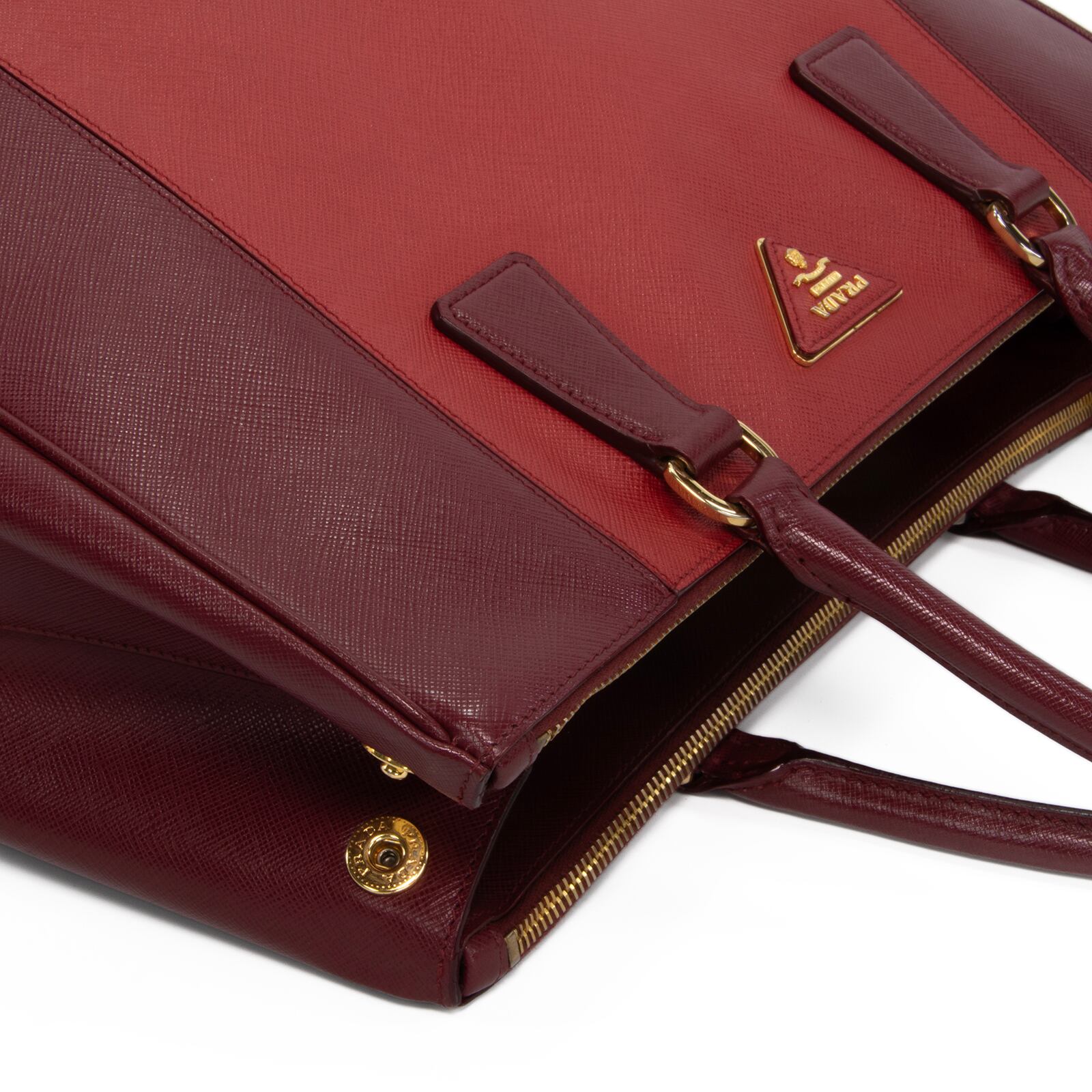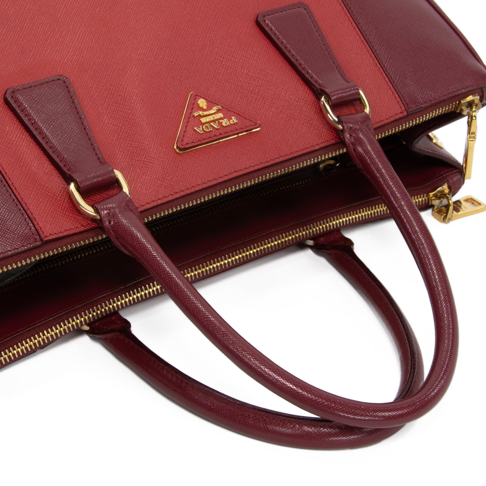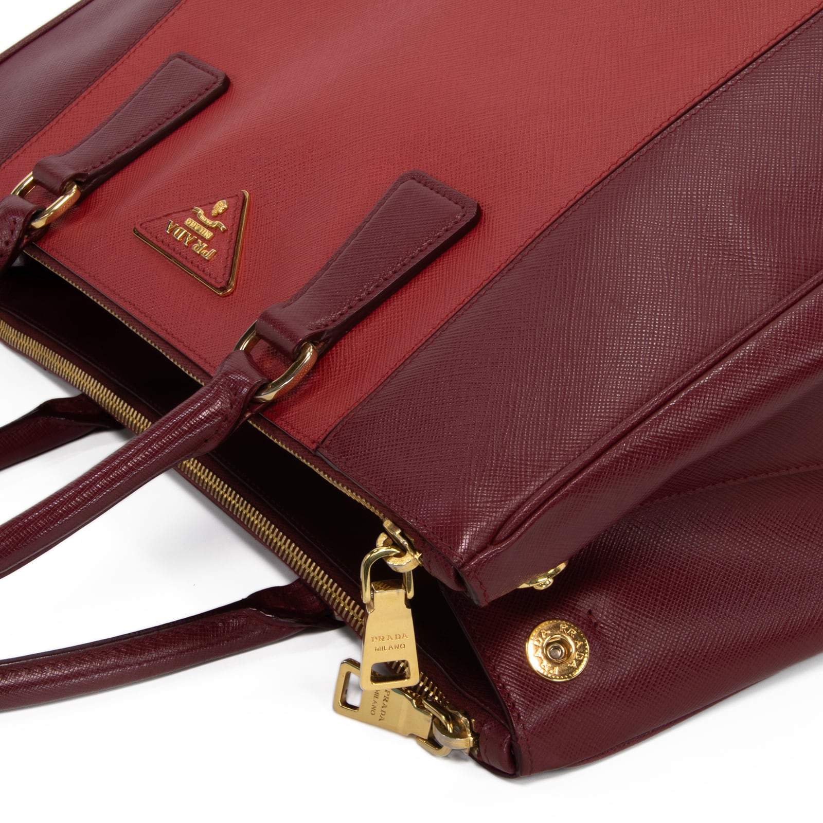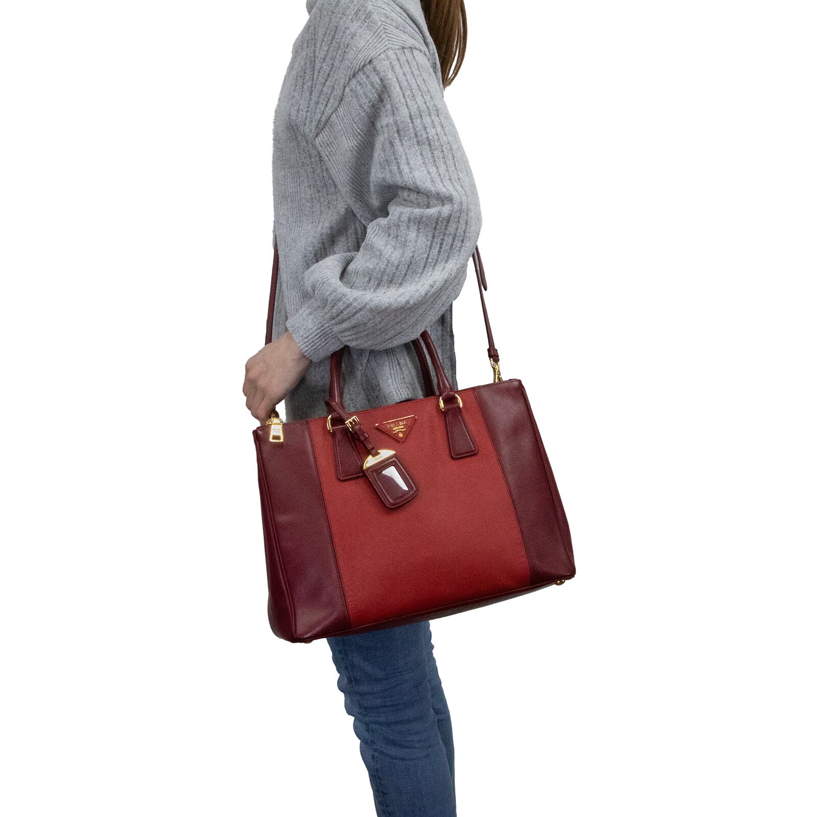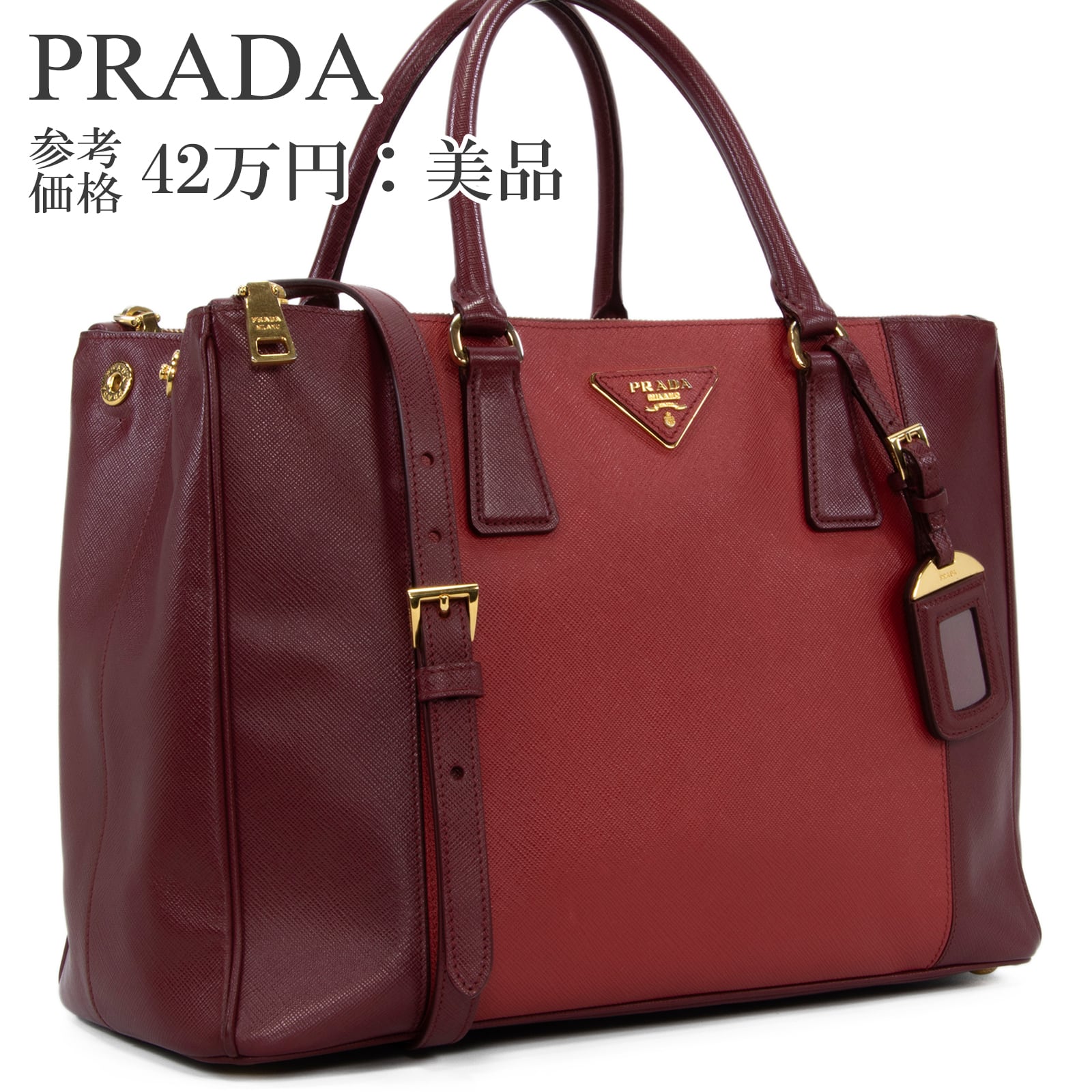 本物 送料無料 プラダ 2WAYショルダーバッグ レディース サフィアーノレザー ガレリア バイカラー 赤 斜め掛け ロゴ 革 鞄 バック L230